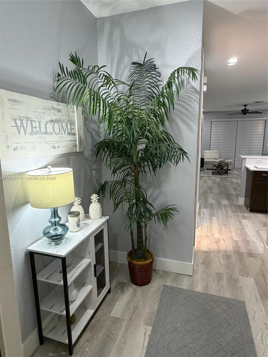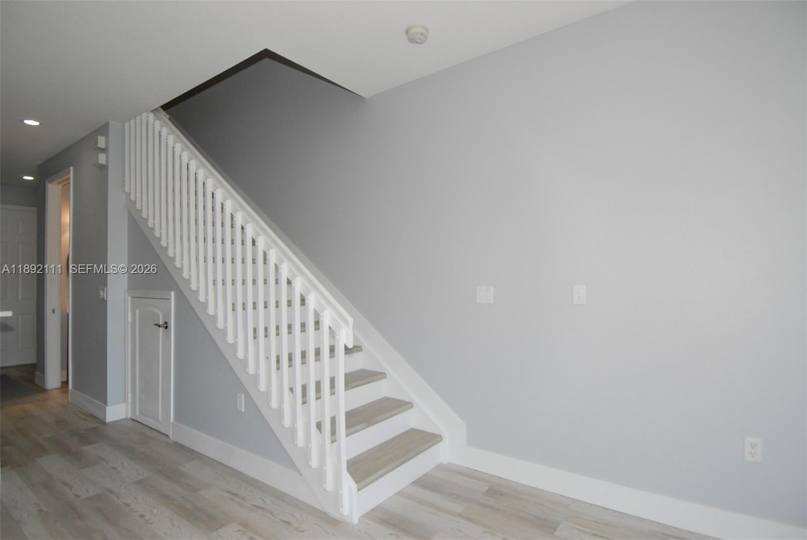 Substantially Remolded and Ready to Move In! A hidden gem in the highly desirable SADDLE BRIDGE neighborhood. Beautiful lakeview with a walking path around the lake. HURRICANE IMPACT WINDOWS/DOORS! This home boasts new LVP flooring, freshly painted throughout including all doors, new baseboards (2023). New recessed lighting throughout. Fans in all bedrooms and living room. New bright white quartz countertops and backsplash. Large kitchen with deep cabinets provide plenty of storage. Completely upgraded 1/2 bath downstairs. Washer/Dryer (2024) on 2nd floor for convenience. Split floor plan upstairs with a spacious master bedroom with a walk-in closet. Master Bathroom has dual sinks and a separate toilet room. Equipped with an alarm system, and a Ring camera door bell. Electrical panel has been pre-wired for an electric vehicle.