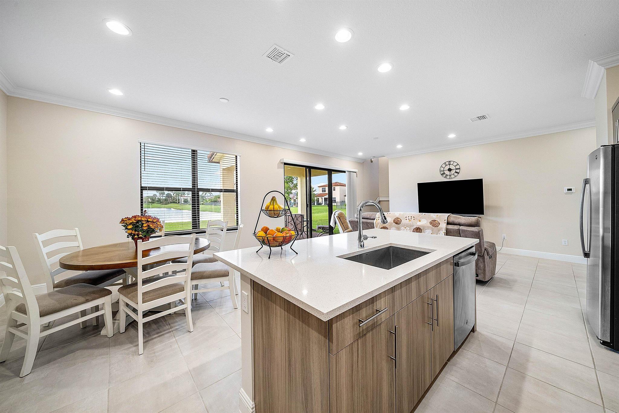 Experience elegant lakeside living in this upgraded home perfectly positioned on a premium lakefront lot in Westlake. Built in 2021, it offers 3 bedrooms plus loft and sitting room, impact windows, sealed tile grout, crown molding, granite counters, and stainless-steel appliances. The paint is a premium gloss finish, easy to clean and maintain. The garage features epoxy floors and storage racks. Enjoy stunning lake views and resort-style amenities including pools, splash pad, courts, and playgrounds.