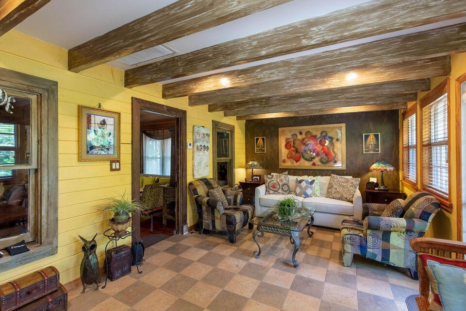 Vintage Home built in 1925, The wood paneling is unique, cherry wood floors, The family Room is the icing on the cake with its wood beams and views of the tropical garden. kitchen, Bathrooms have been remodeled, electric has been updated, Roofs were replaced within 10 years, including the Barrel tile roof over the Family room, Shingle roof in Garage. Natural gas stove and water heater! There is a one bedroom, one bath with its own entrance and sitting area! Ideal Roommate! You will be the Talk of your social Sphere!