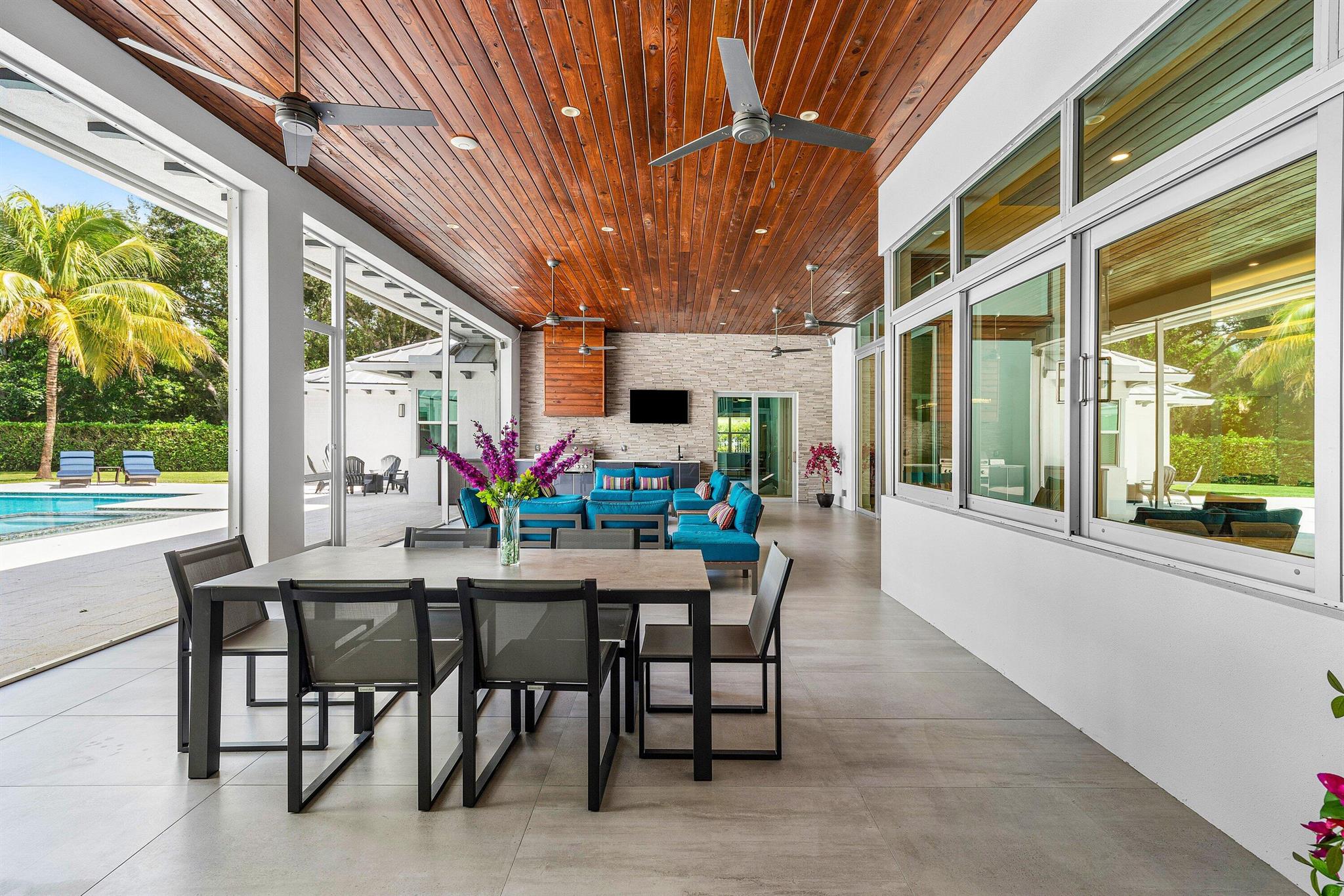 Tucked behind the gates of Fieldbrook Estates, one of Boca Raton's most exclusive communities of just 54 custom homes, this modern masterpiece sits quietly on a private one-acre lot. Completely reimagined and rebuilt in 2019, this single story residence offers 8,130 square feet under air of exceptional design and craftsmanship.The home features 7 bedrooms, 6 full and 2 half baths, along with thoughtfully curated lifestyle spaces including an office, game room with a custom bar, private theater, and a gym with a sauna. One guest suite enjoys its own living area and private entrance -- ideal for extended family or long-term guests.The interiors are bright, open, and effortlessly sophisticated -- a seamless blend of clean lines, warm textures, and natural light. The chef's kitchen is both