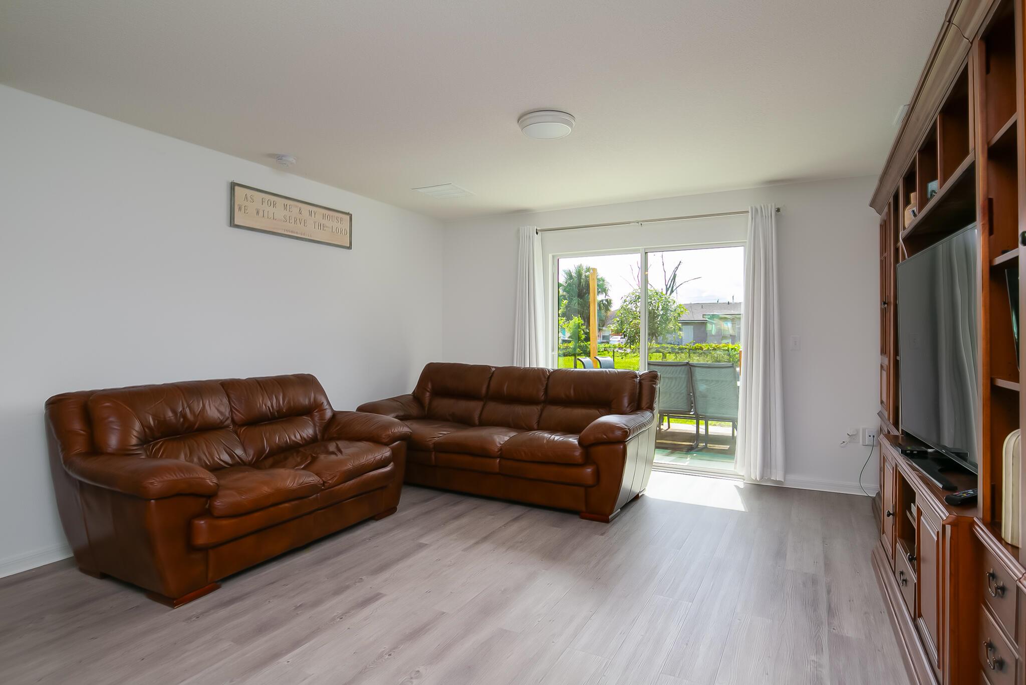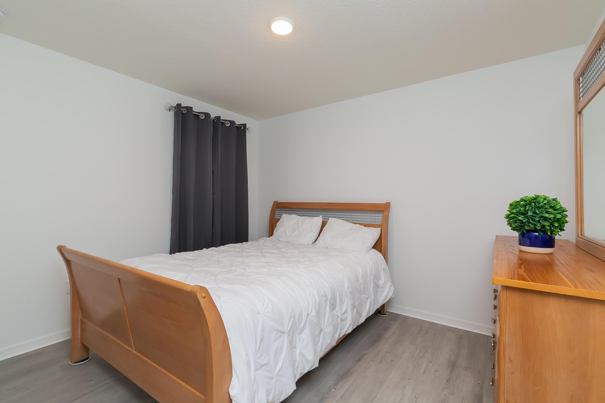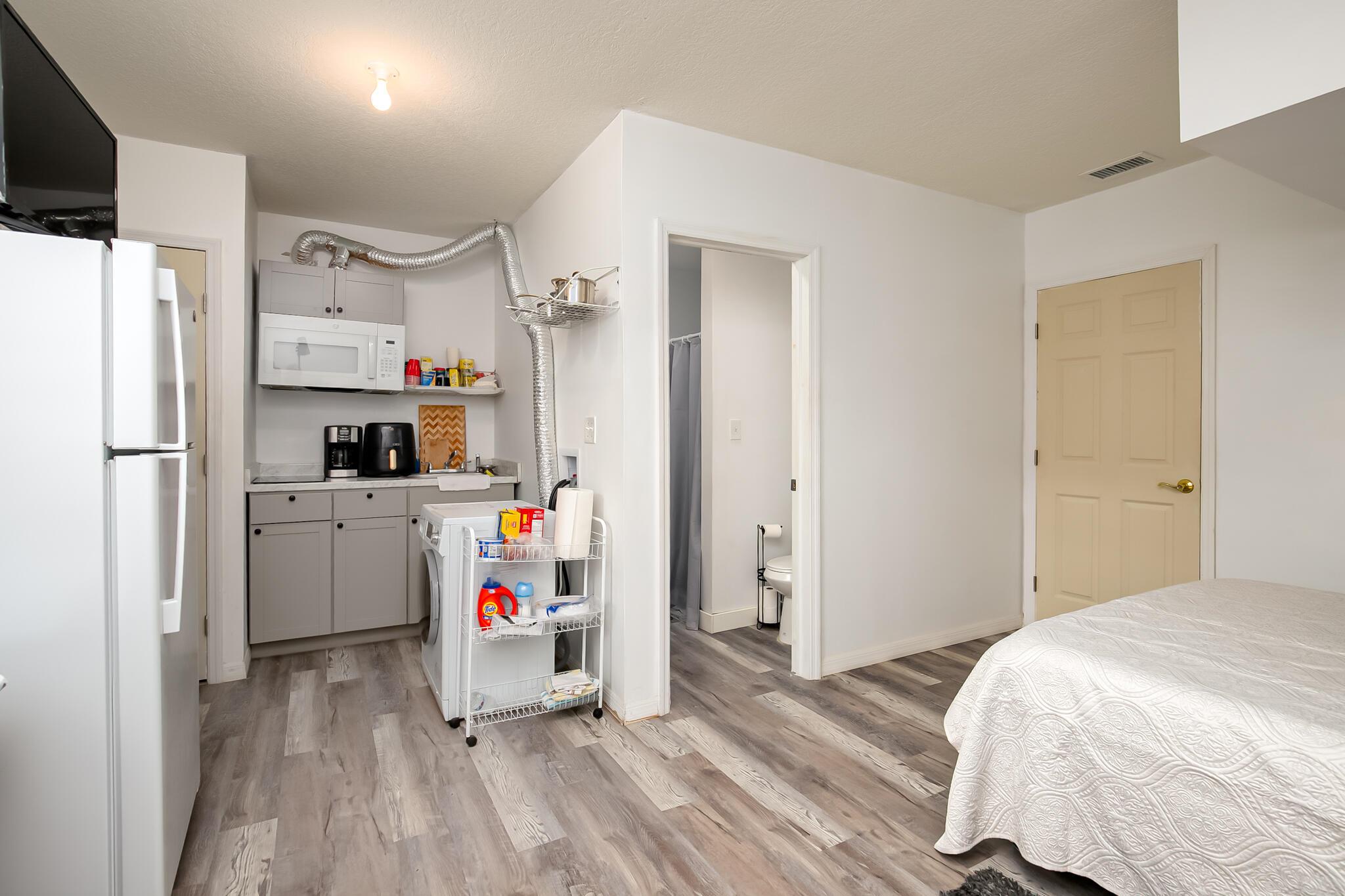 This 2022 home features three bedrooms, two bathrooms, a designated dining room, a den/family room, and an unpermitted studio apartment occupying two-thirds of the three car garage. The kitchen features stainless steel appliances and quartz countertops that overlook the lving room. The primary bedroom is complemented by an ensuite bathroom and a walk-in closet. A Samsung washer and dryer furnish the laundry room, which leads directly to the garage. The studio features a kitchenette and has its own private entrance. In the backyard, you'll find a concrete 12X36 patio and various fruit trees - some of which are already bearing fruit! This home is conveniently located near shopping, schools, and restaurants.Please note that the washer/dryer and refrigerator in the studio aren't included.