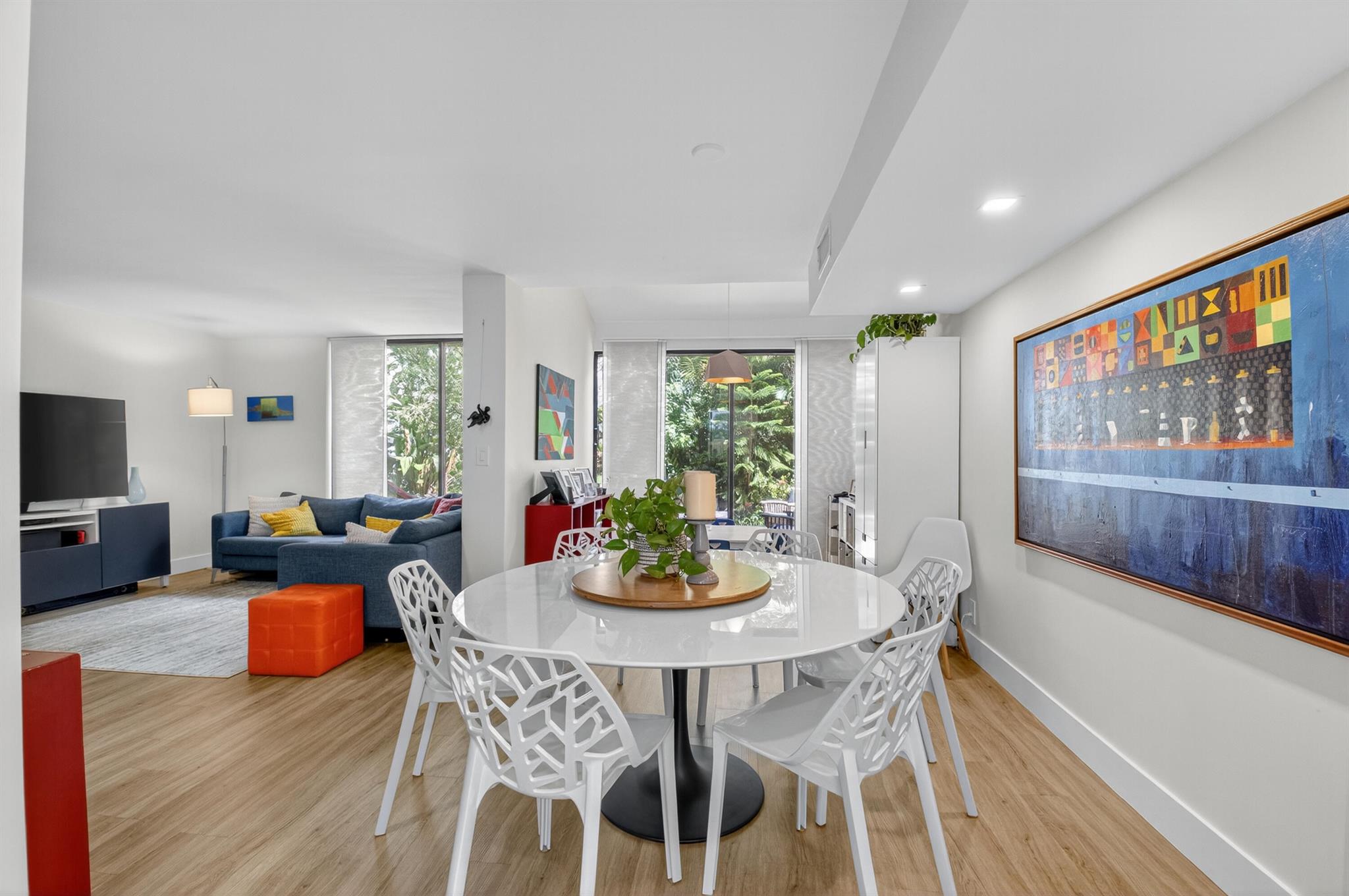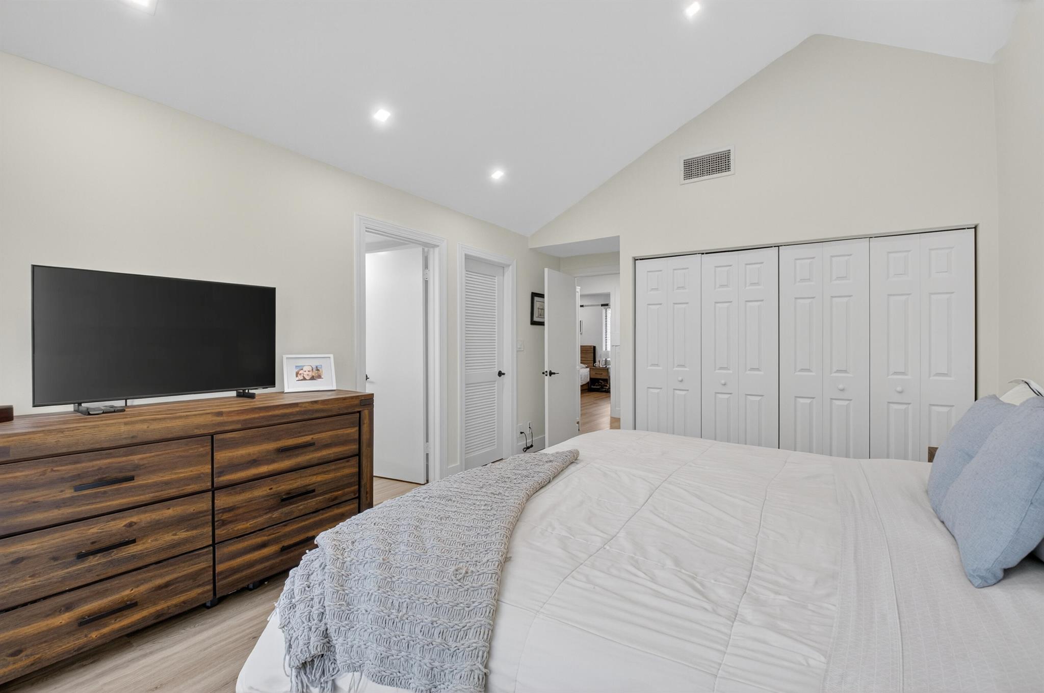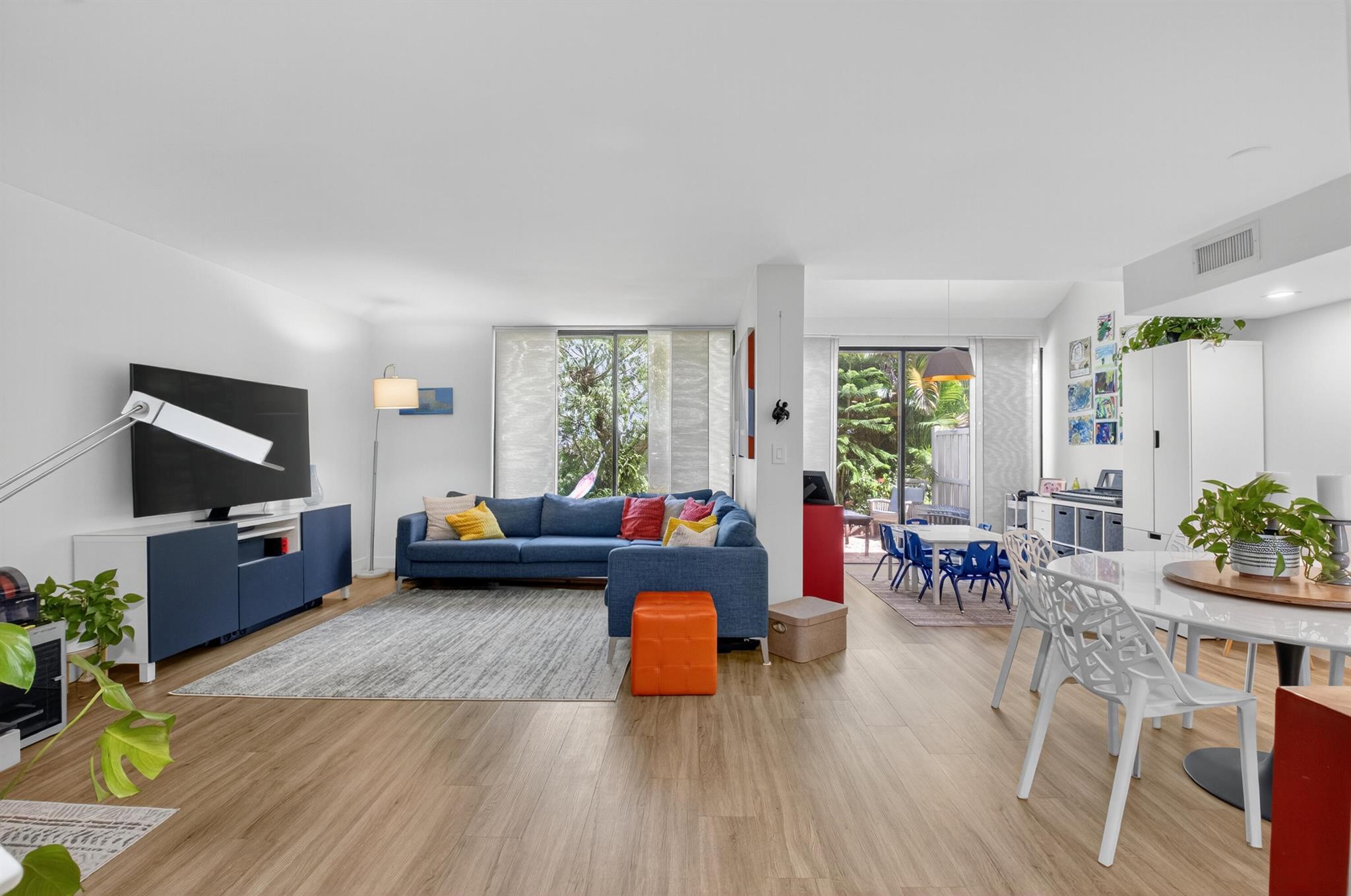 Bridgewood 3 bedroom, 2.5 bath town house. Corner lot with lushly landscaped exterior patio area with partial lake view. Expanded interior area with porch glassed in and opened to the living area. Renovated interior with engineered wood floors throughout. Updated kitchen with granite counters, stainless appliances and kitchen drawers with lights. Oversized washer & dryer. LED Lights in all the rooms. All the bathrooms have been updated with new vanities, toilets and flooring. Tankless water heater. Water filter. No popcorn. Fitted Closets. Private barbecue and sitting area off the kitchen which could be a golf cart area. Comes with a covered parking space. A/C replaced in 2021. New Electrical panel. Club req'd at $150,000. + dues & $10,000 Capital Cont. to the B.W. Master Assoc.