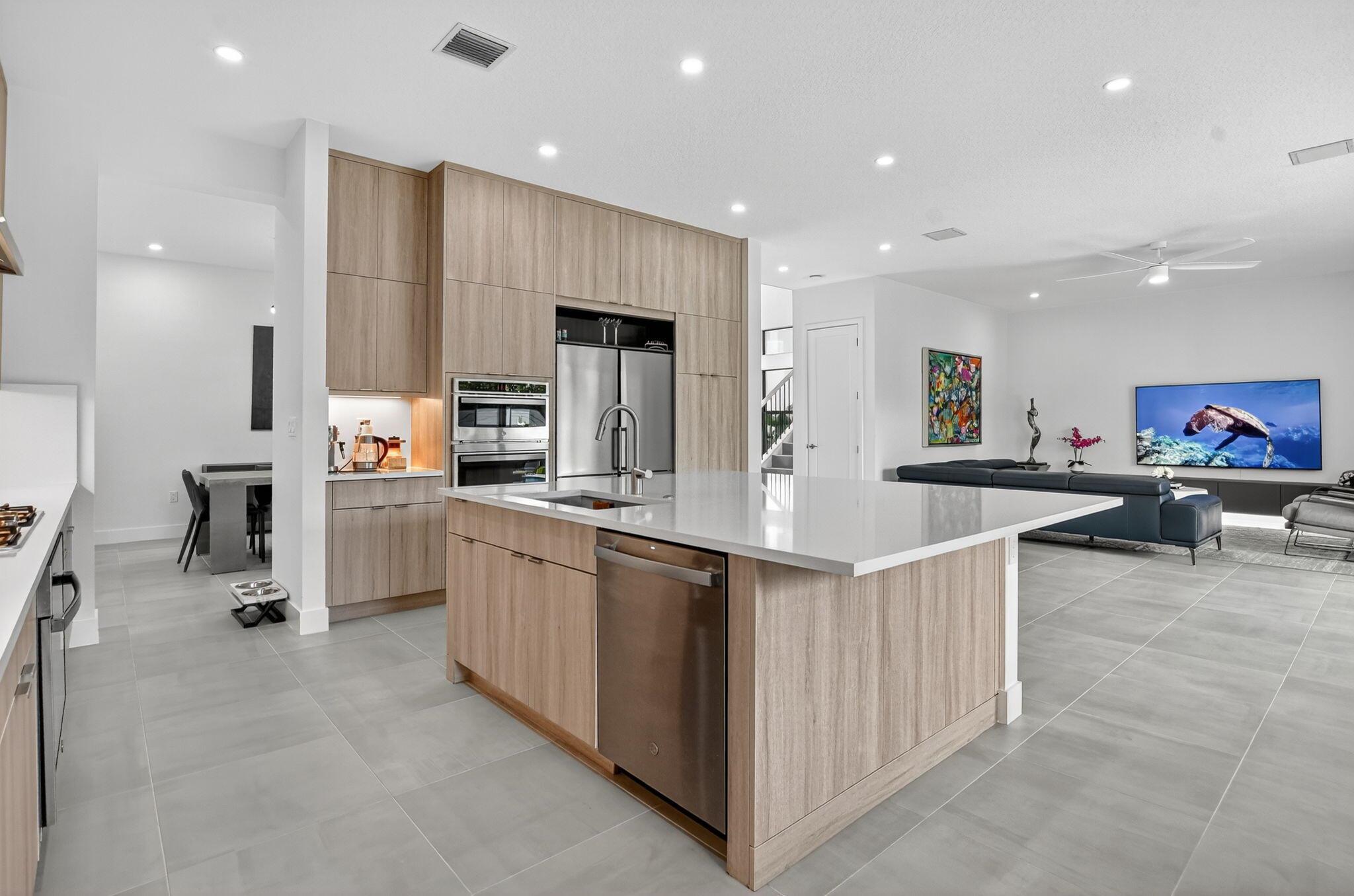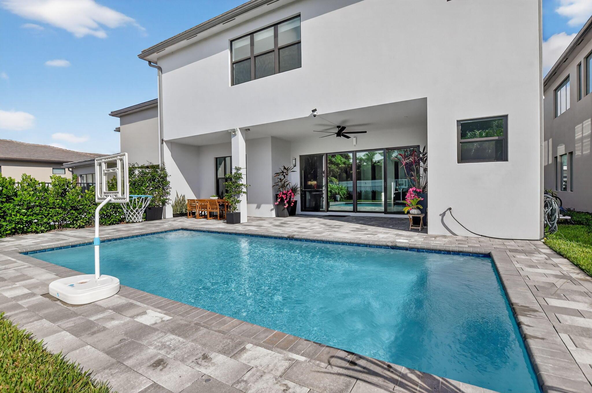 Step into tropical serenity the moment you walk through the door to your own private saltwater pool and your view is a secluded backyard surrounded by lush greenery. This Polynesian blends modern minimalism with calm, airy sophistication. Upstairs showcases upgraded engineered hardwood and sleek mini high-hat lighting. The primary suite features dual bathrooms and two closets, including an oversized walk-in worthy of a dream wardrobe. A stub-out awaits your future summer kitchen. Entertain downstairs and relax upstairs, this home defines balance. Lotus Palm offers resort-style living with pickleball, tennis, fitness center, restaurant, outdoor bar, splash zone, and year-round events. Living in Lotus Palm is like living in a resort year round, get ready to live the lifestyle.