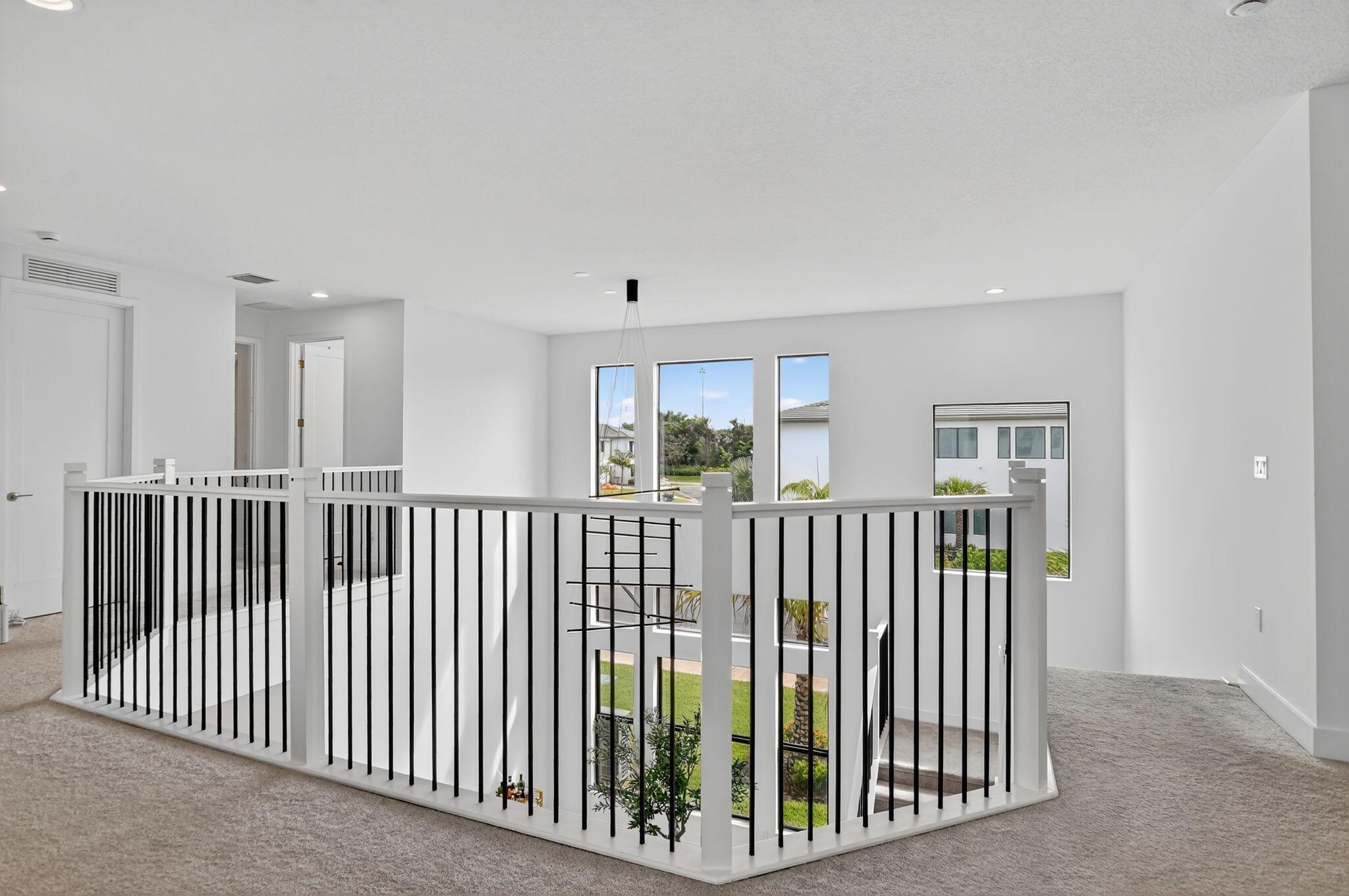 Discover this stunning Polynesia model on a rare oversized corner lot with southern exposure, filling the home with natural light from sunrise to sunset. Enjoy soaring corner windows extending to the second-floor loft, creating an airy, modern ambiance and architectural appeal. This 5-bedroom, 7-bath home features upgraded concrete-look porcelain tile, recessed lighting, and an epoxy-finished garage floor. Relax with serene corner lake views and envision your future pool basking in all-day sun. Located in Boca Raton's premier Lotus Palm community with resort-style amenities and top-rated schools.