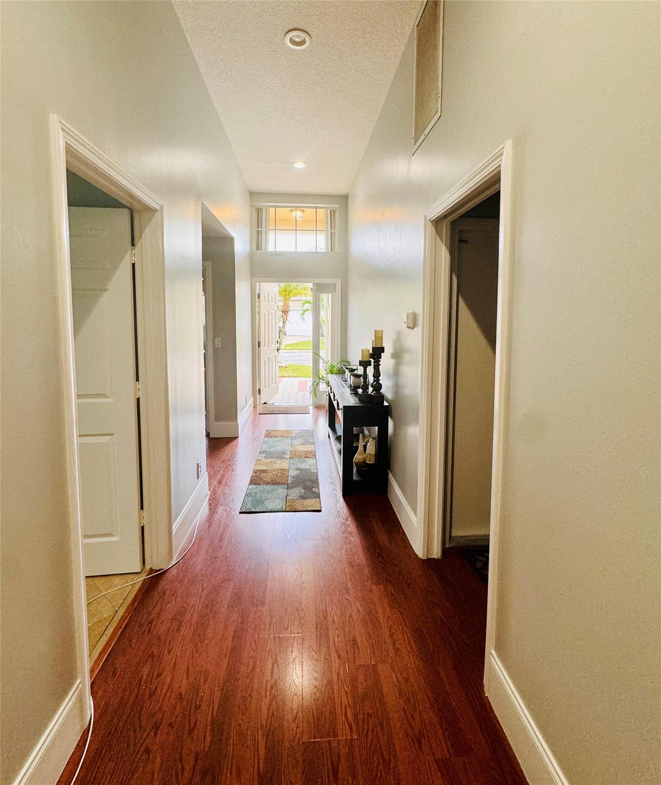 Price updated!! LOW HOA! Excellent home!! Guard gated neighborhood. 2017 Roof. 2019 AC. Open Design floor plan with vaulted ceilings. Foyer entry hallway that opens to kitchen and family room. Large master suite with beautiful master bath with travertine floor. Guest bath with travertine floor. Large screened and tiled back patio with a manicured back yard with peaceful lakeview and room for a pool. Tiled 2 car garage. Sprinkler system supplied from the lake. Permitted Accordion Shutters. Pet and kid friendly neighborhood. Near shops and schools.