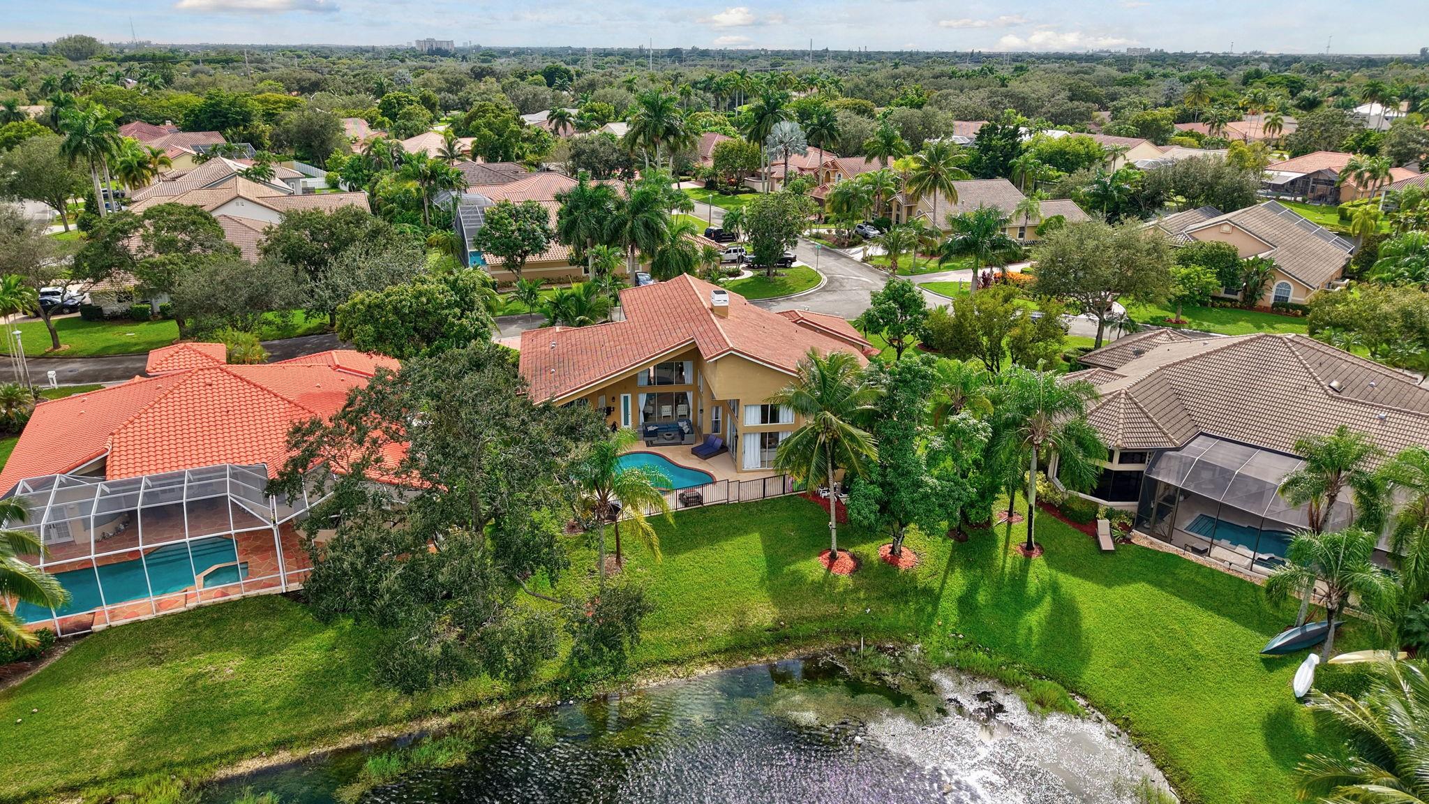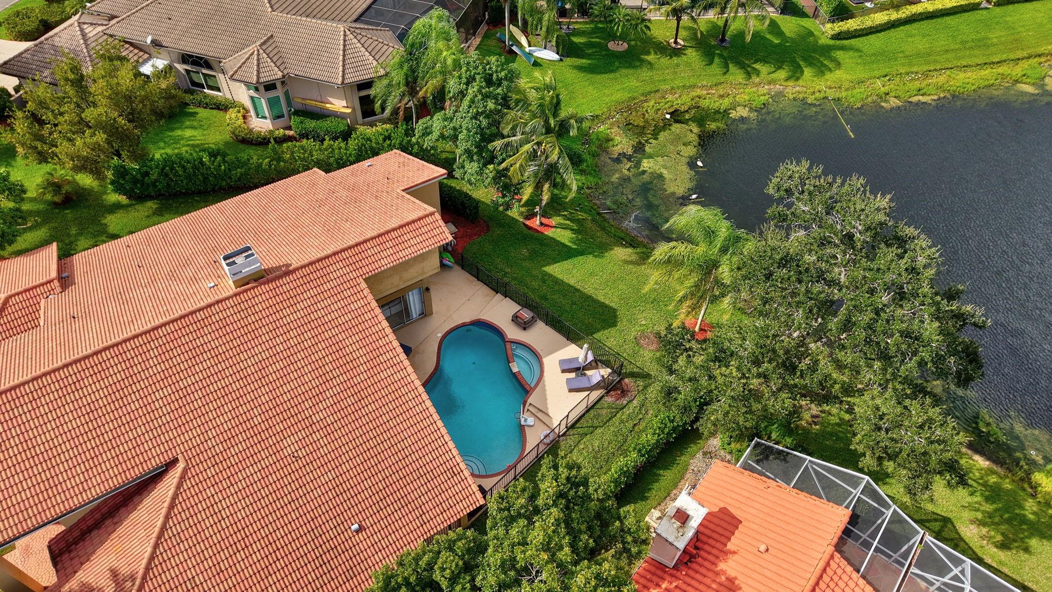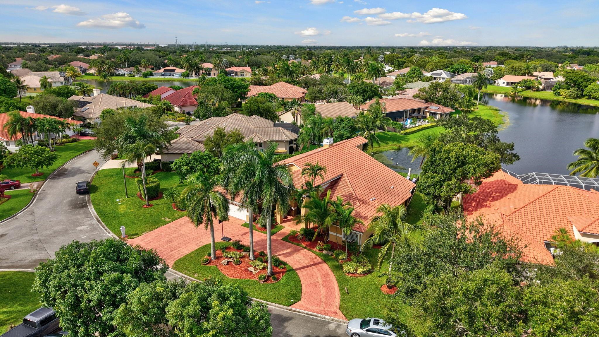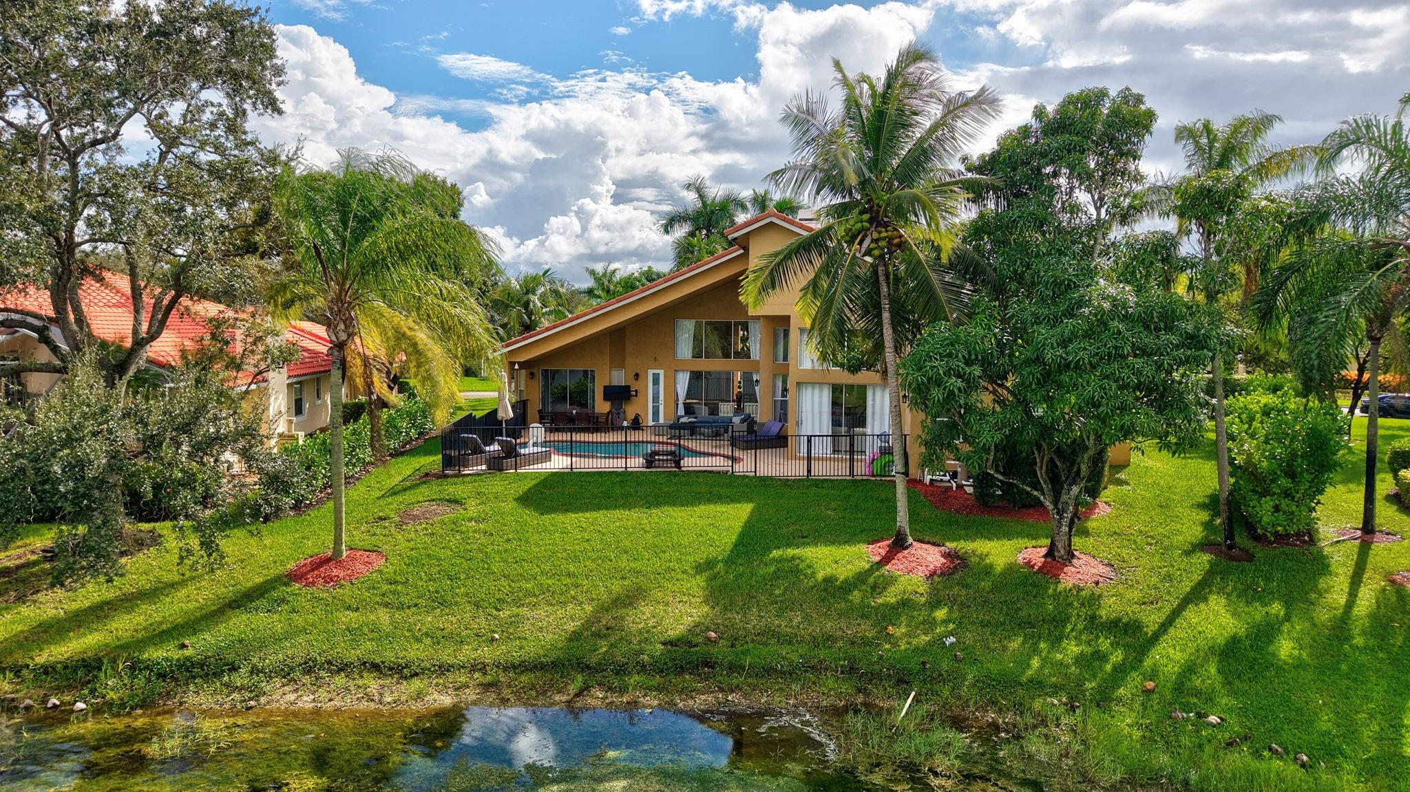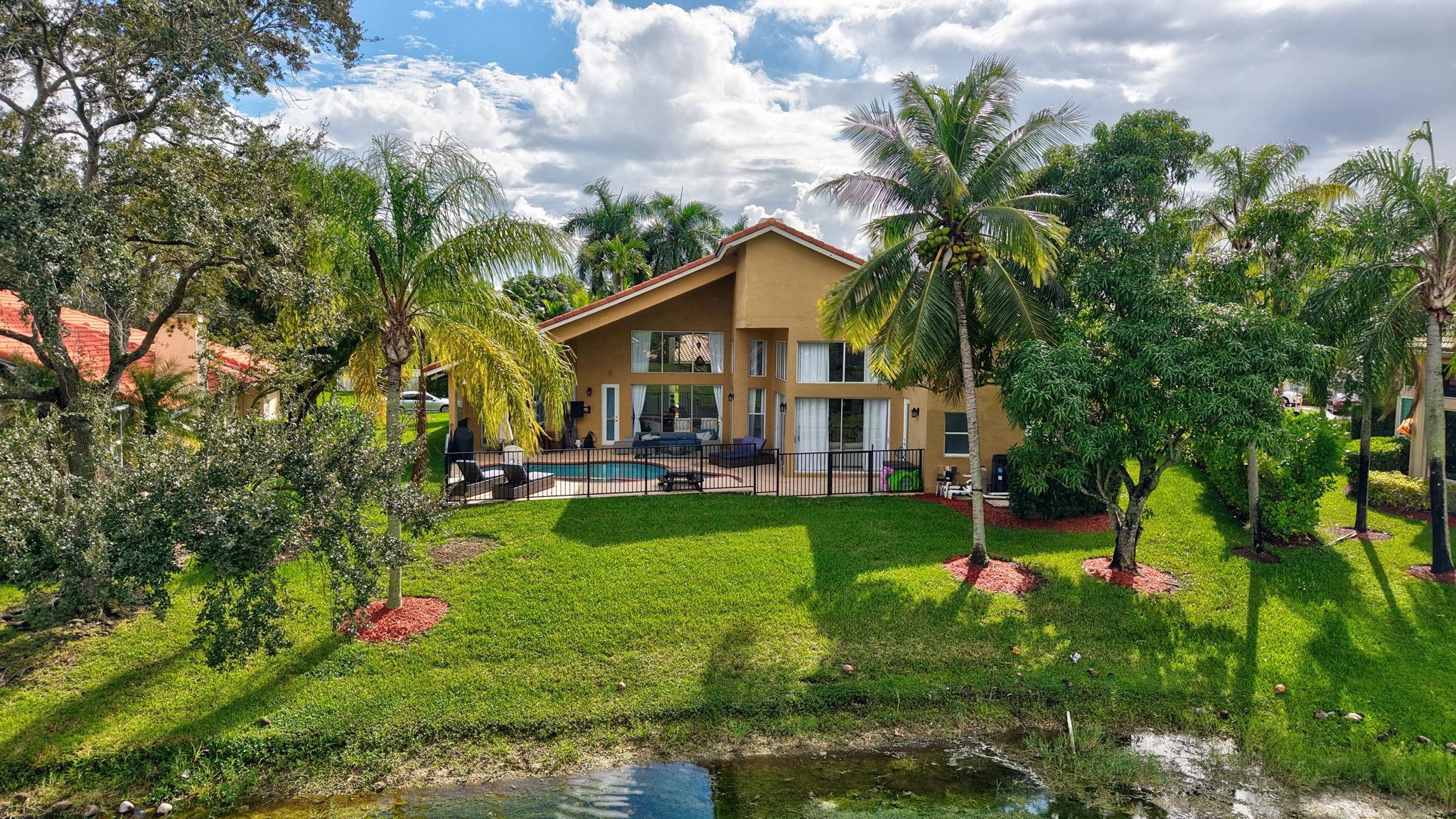 Beautifully maintained one-story home in the sought-after Brookside Grove community. Enjoy stunning lakefront views and a spacious layout ideal for modern living. Upgrades: New floating floors in all bedrooms, renovated bathrooms, built-out closets, and new curtains and blinds. Newer washer, dryer, fridge, new pool heater, and updated sprinkler systems. Master Suite: Features a separate tub, glass-enclosed shower, dual sinks, and a walk-in closet. Living Space: Expansive living area flows into a separate dining room, with a well-appointed kitchen showcasing a large island, snack bar, and ample cabinetry with granite countertops. Set on a 1/3-acre lot with mango and coconut trees, private hedges, and picturesque lake views.