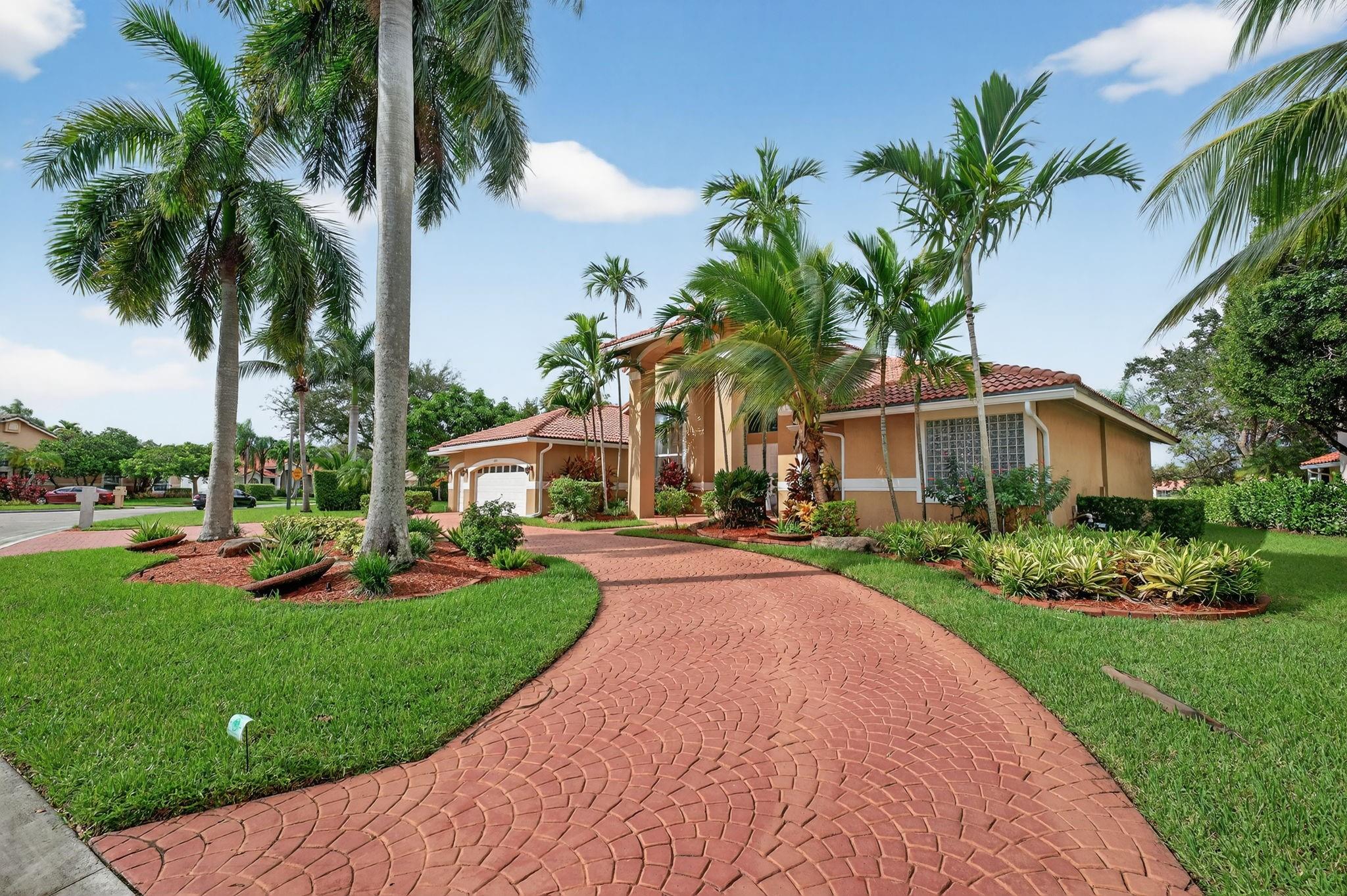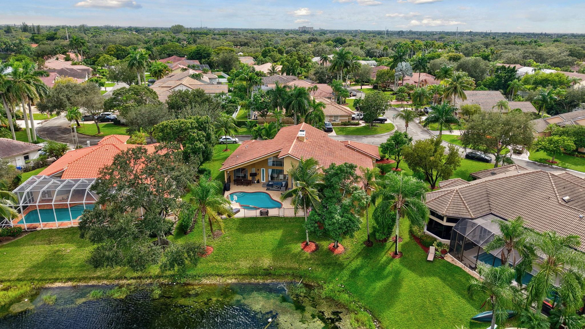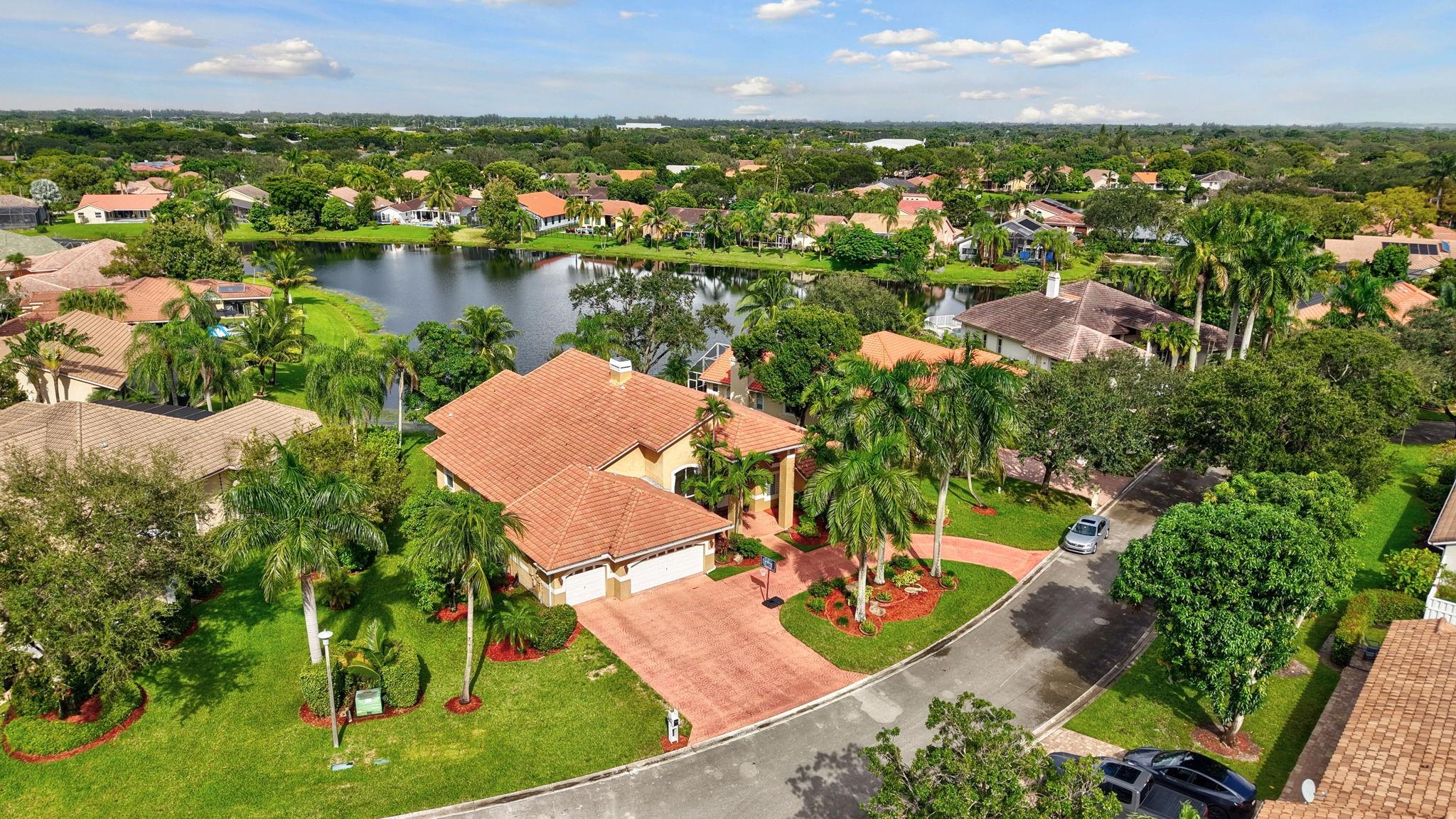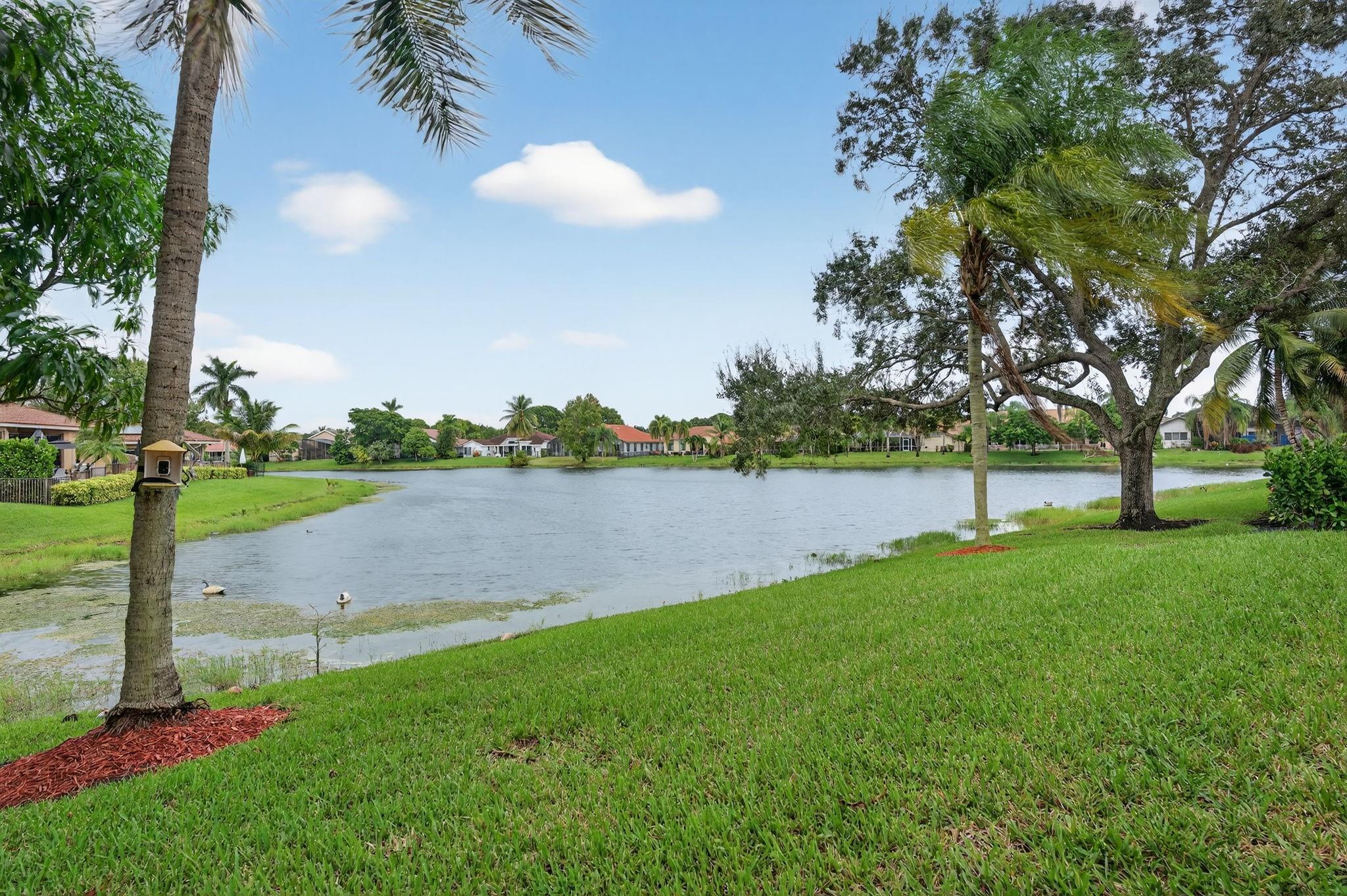 Beautifully maintained one-story home in the sought-after Brookside Grove community. Enjoy stunning lakefront views and a spacious layout ideal for modern living. Upgrades: New floating floors in all bedrooms, renovated bathrooms, built-out closets, and new curtains and blinds. Newer washer, dryer, fridge, new pool heater, and updated sprinkler systems. Master Suite: Features a separate tub, glass-enclosed shower, dual sinks, and a walk-in closet. Living Space: Expansive living area flows into a separate dining room, with a well-appointed kitchen showcasing a large island, snack bar, and ample cabinetry with granite countertops. Set on a 1/3-acre lot with mango and coconut trees, private hedges, and picturesque lake views.