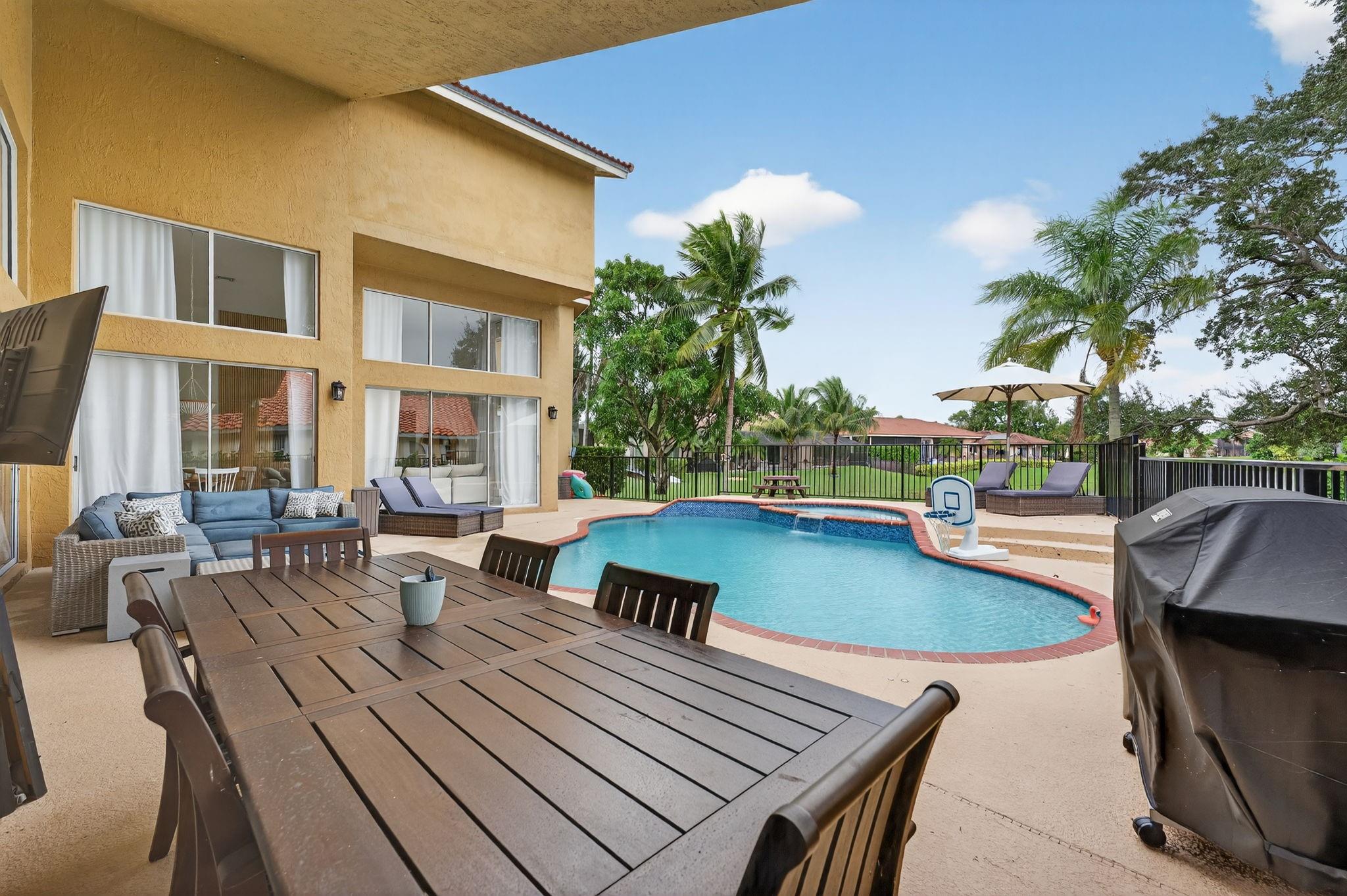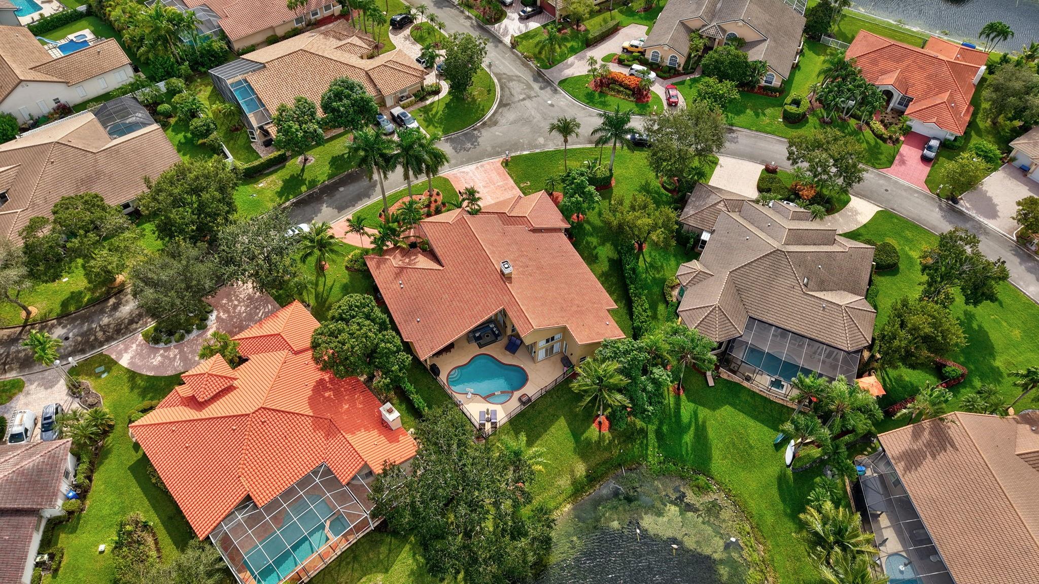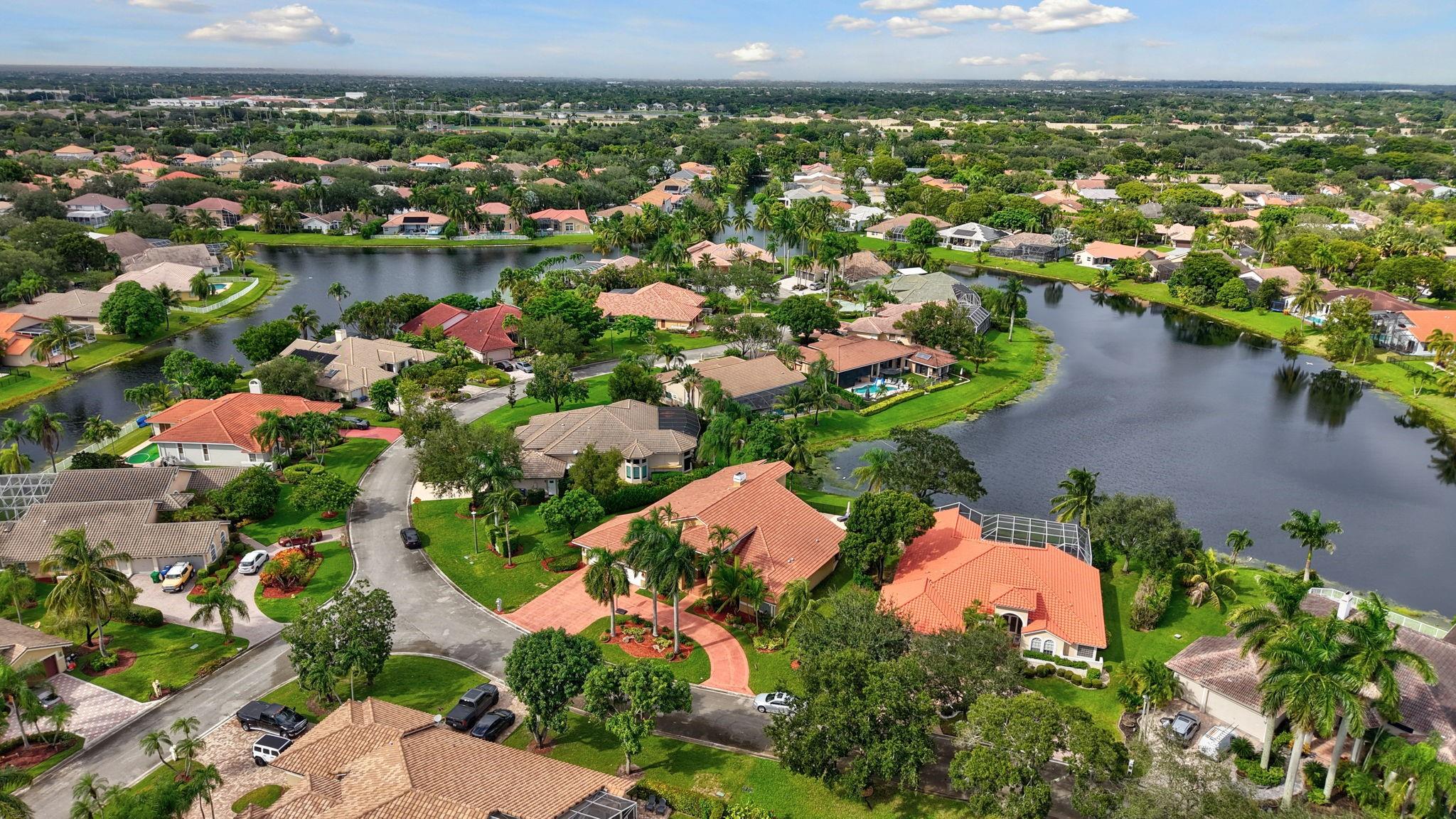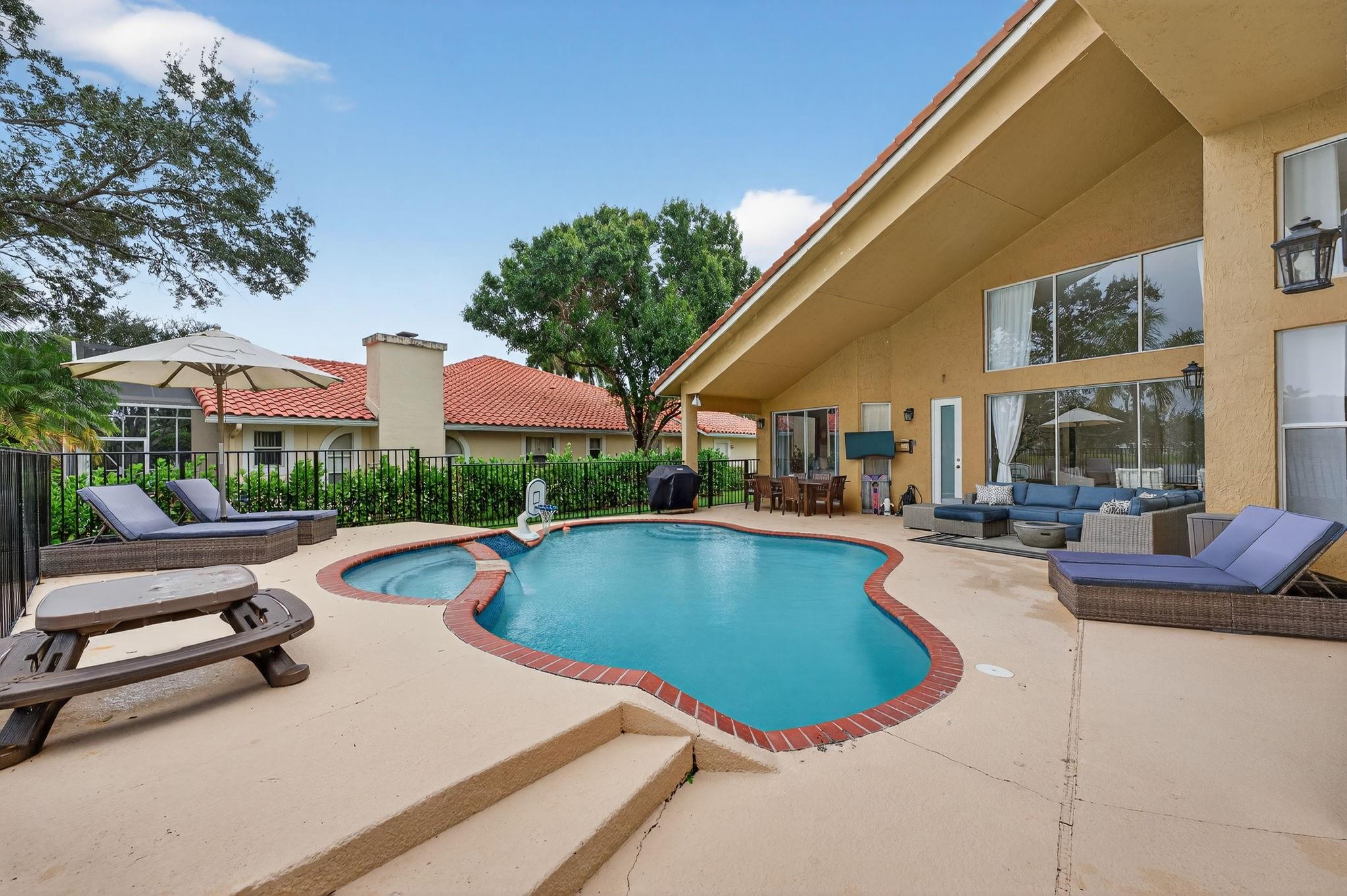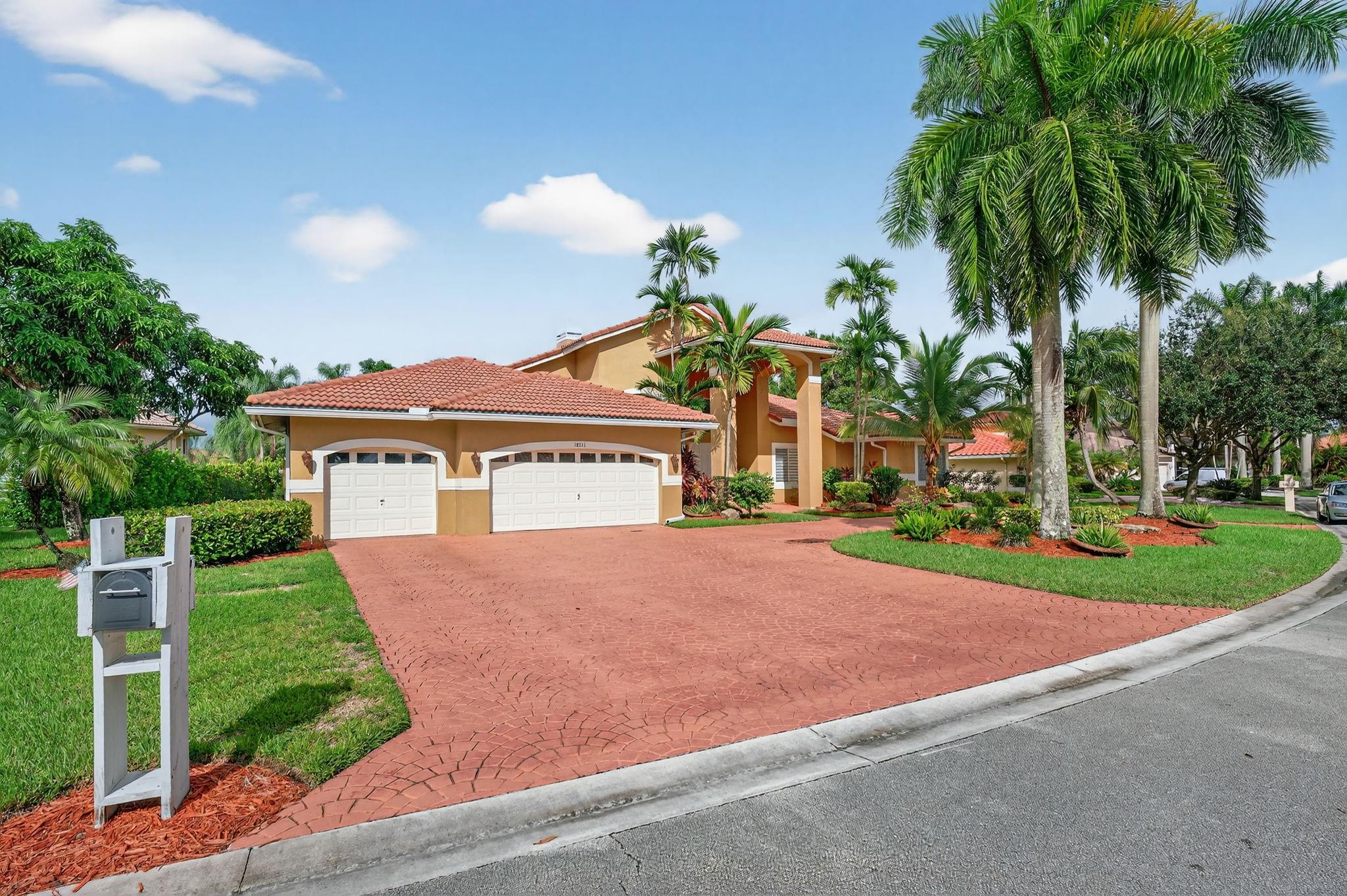 Beautifully maintained one-story home in the sought-after Brookside Grove community. Enjoy stunning lakefront views and a spacious layout ideal for modern living. Upgrades: New floating floors in all bedrooms, renovated bathrooms, built-out closets, and new curtains and blinds. Newer washer, dryer, fridge, new pool heater, and updated sprinkler systems. Master Suite: Features a separate tub, glass-enclosed shower, dual sinks, and a walk-in closet. Living Space: Expansive living area flows into a separate dining room, with a well-appointed kitchen showcasing a large island, snack bar, and ample cabinetry with granite countertops. Set on a 1/3-acre lot with mango and coconut trees, private hedges, and picturesque lake views.