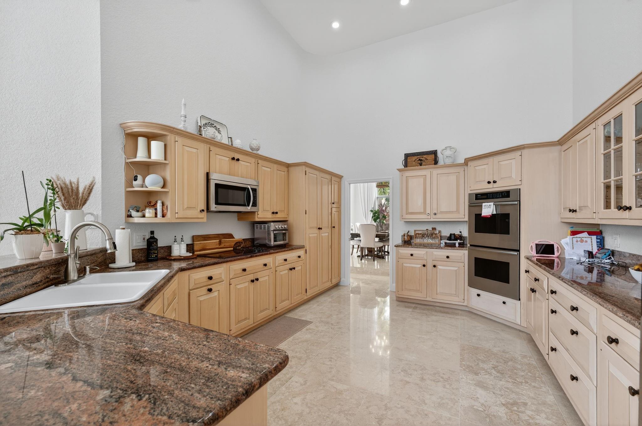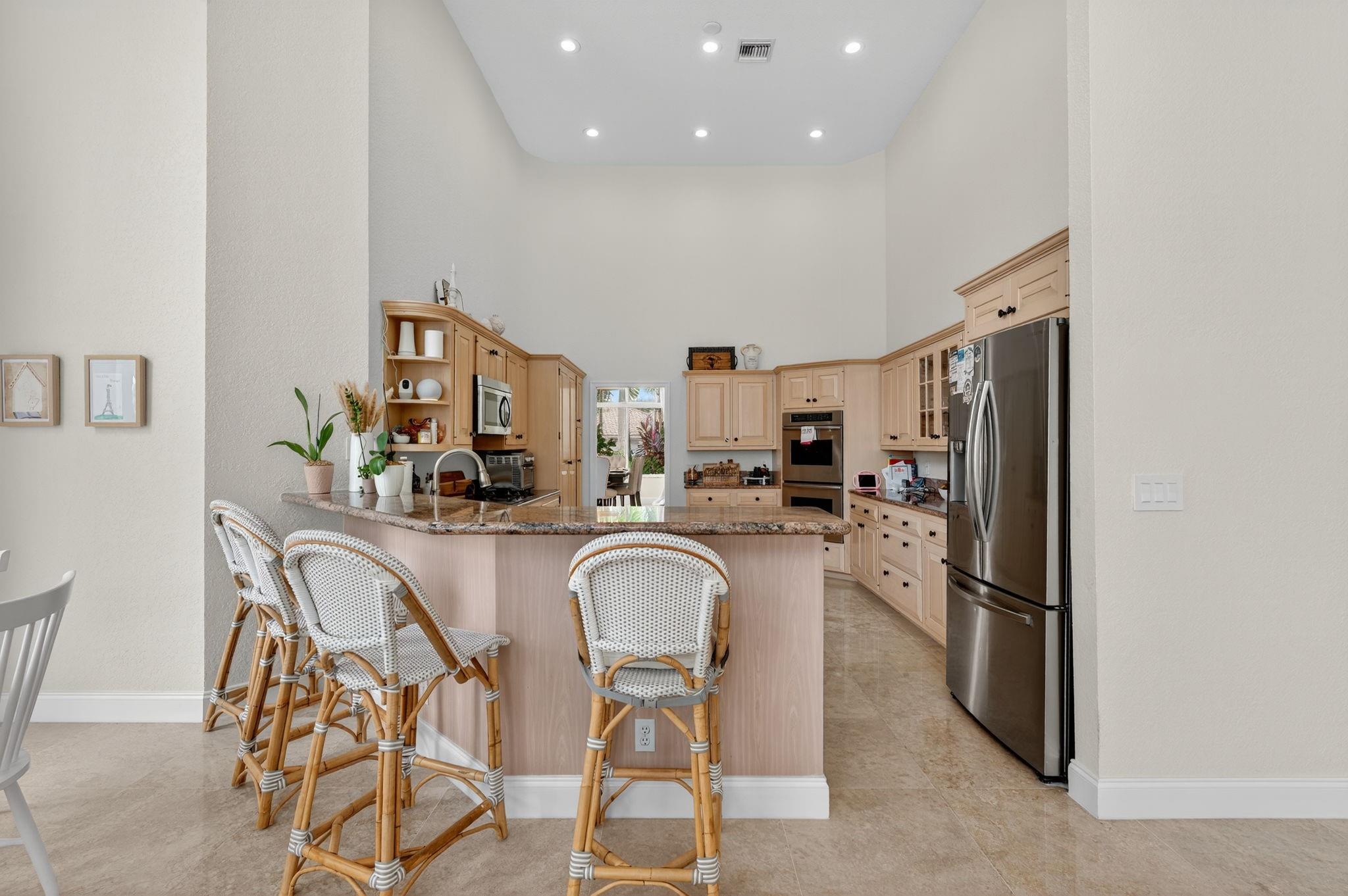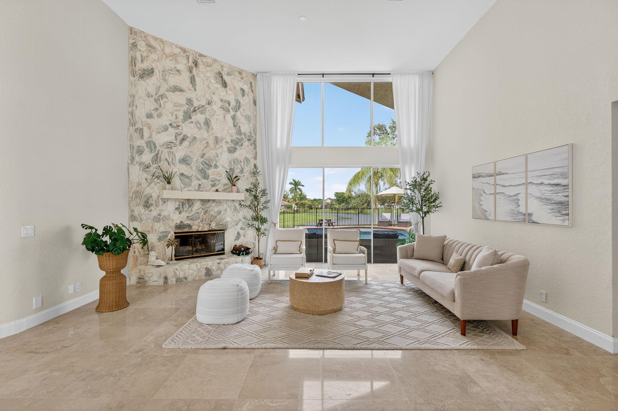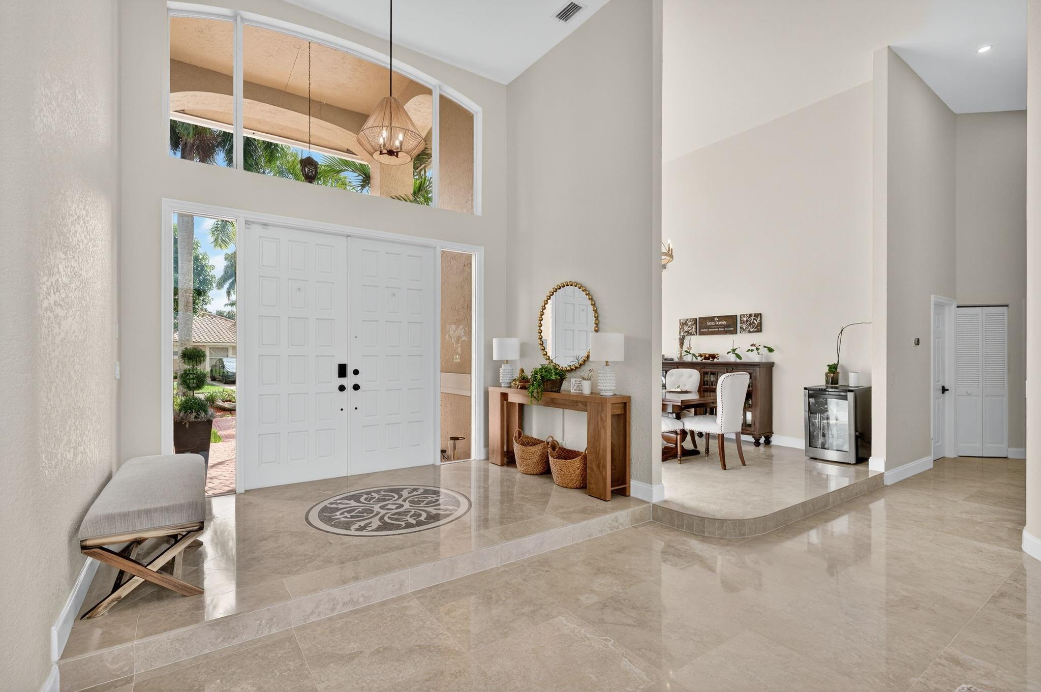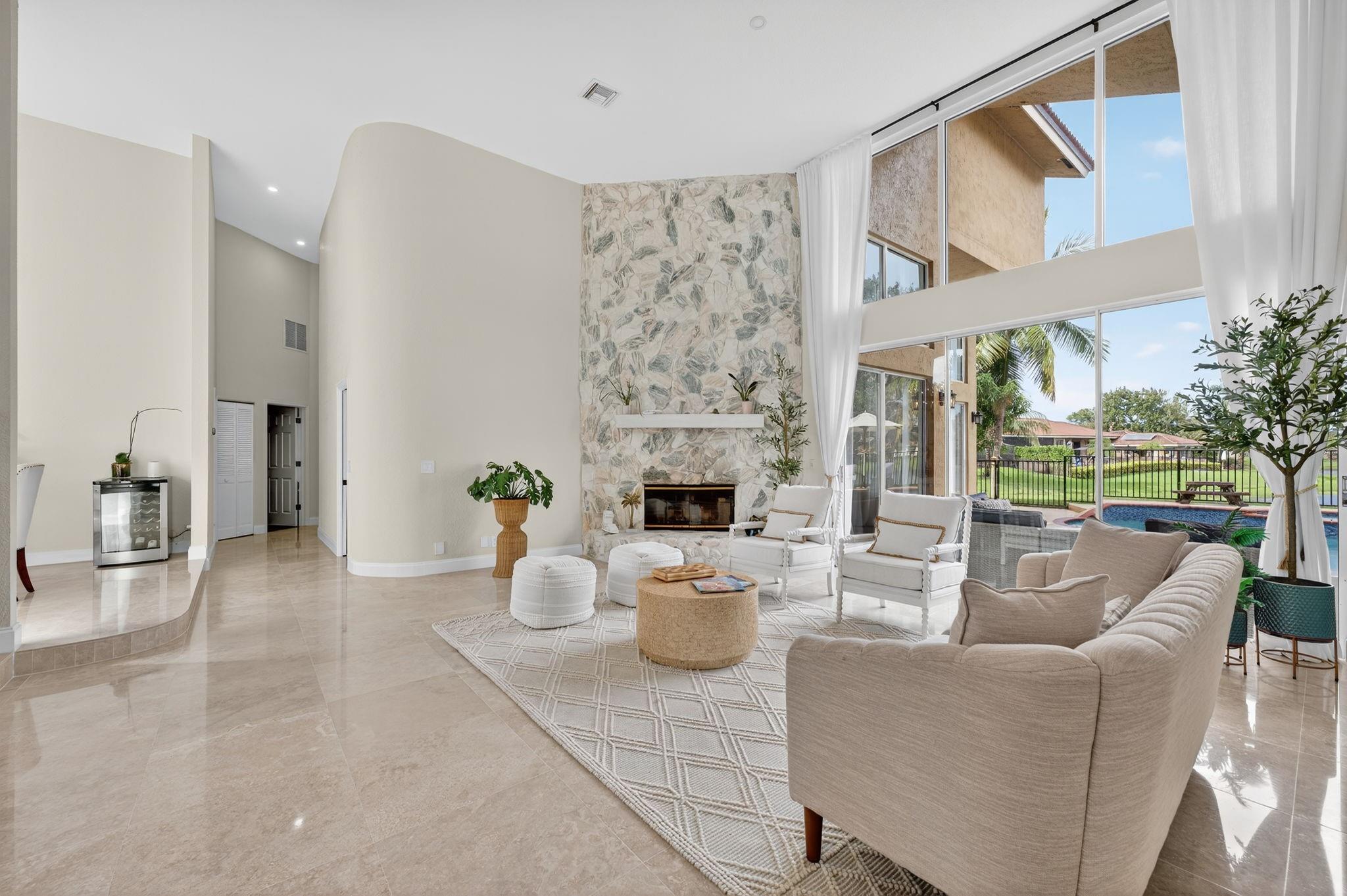 Beautifully maintained one-story home in the sought-after Brookside Grove community. Enjoy stunning lakefront views and a spacious layout ideal for modern living. Upgrades: New floating floors in all bedrooms, renovated bathrooms, built-out closets, and new curtains and blinds. Newer washer, dryer, fridge, new pool heater, and updated sprinkler systems. Master Suite: Features a separate tub, glass-enclosed shower, dual sinks, and a walk-in closet. Living Space: Expansive living area flows into a separate dining room, with a well-appointed kitchen showcasing a large island, snack bar, and ample cabinetry with granite countertops. Set on a 1/3-acre lot with mango and coconut trees, private hedges, and picturesque lake views.