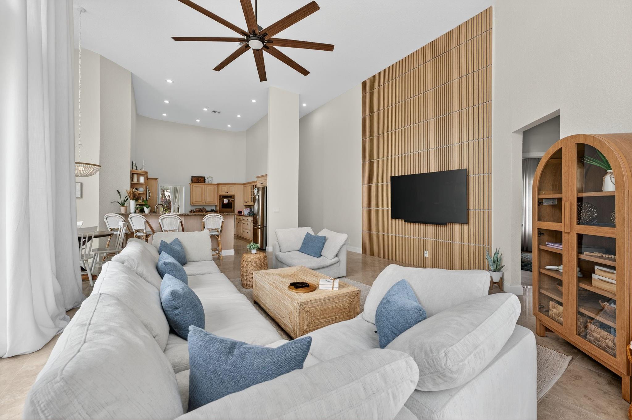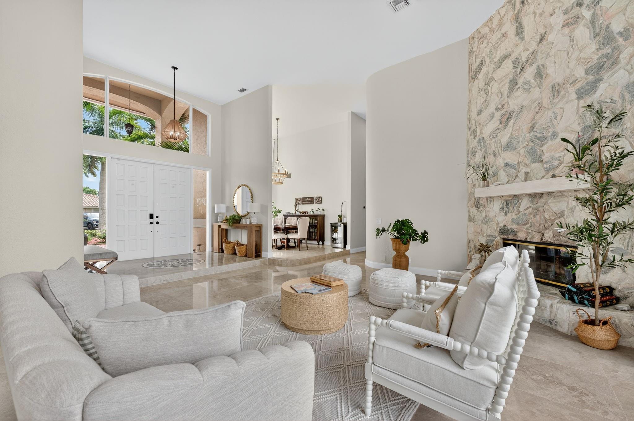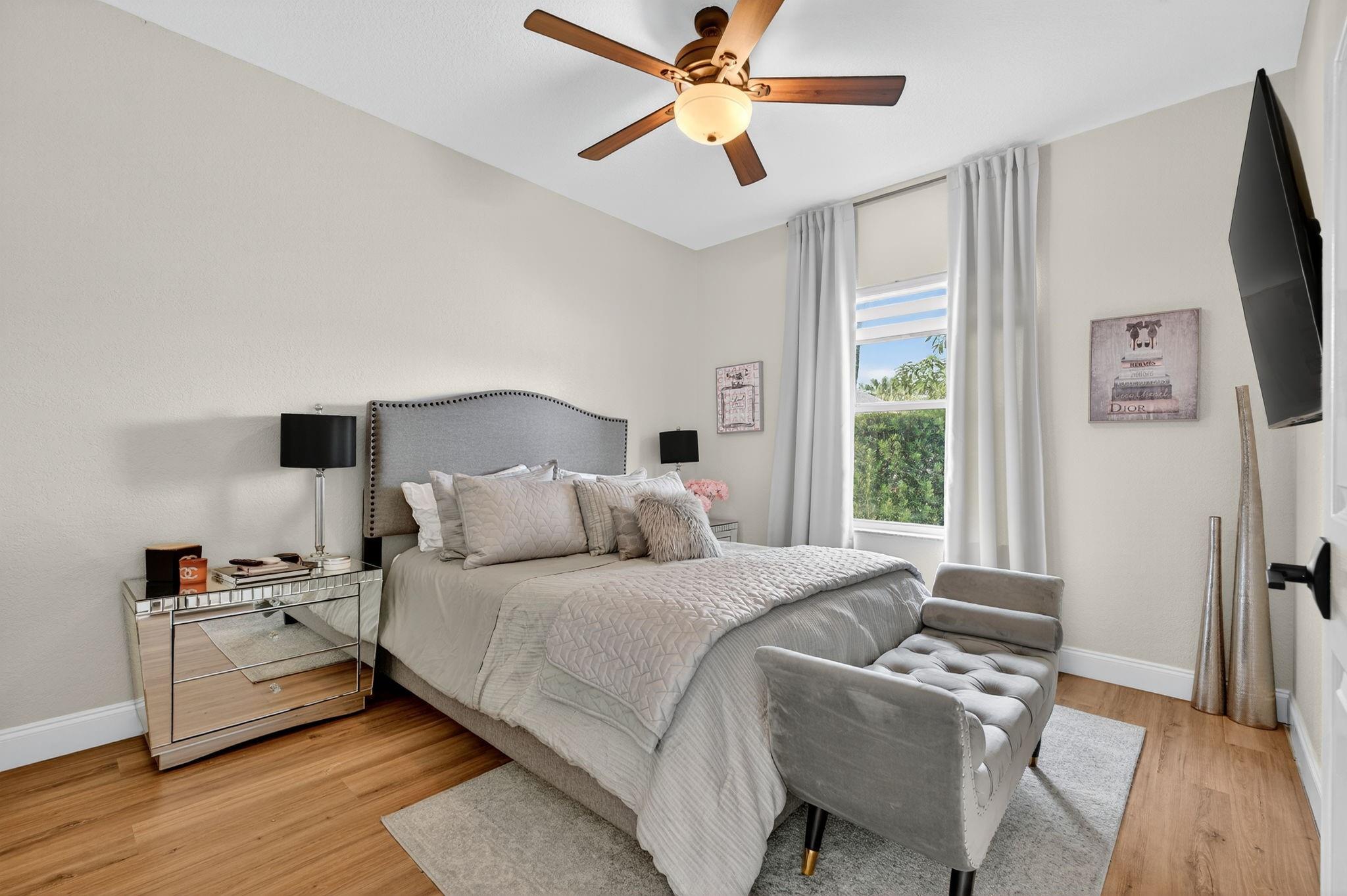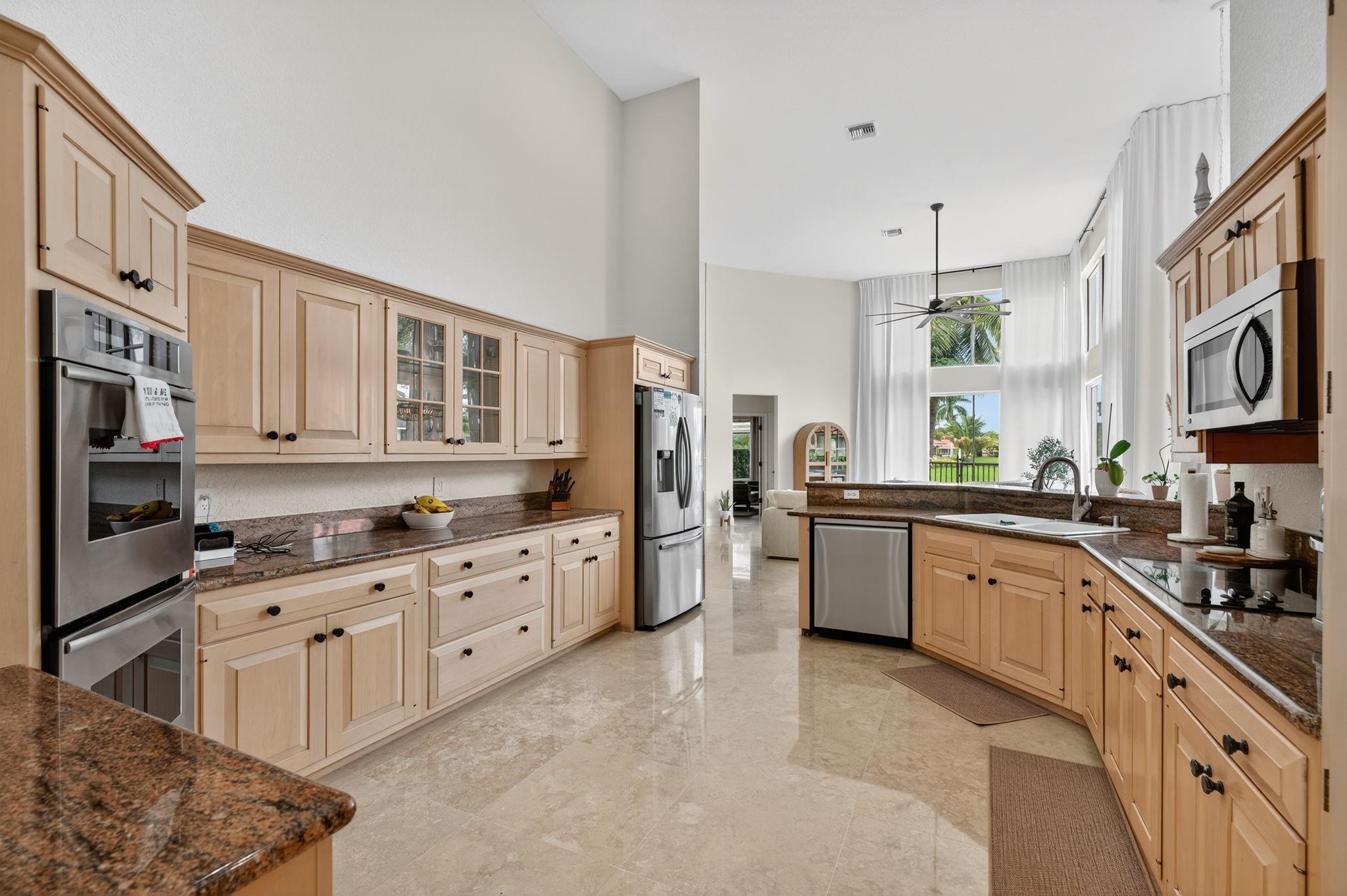 Beautifully maintained one-story home in the sought-after Brookside Grove community. Enjoy stunning lakefront views and a spacious layout ideal for modern living. Upgrades: New floating floors in all bedrooms, renovated bathrooms, built-out closets, and new curtains and blinds. Newer washer, dryer, fridge, new pool heater, and updated sprinkler systems. Master Suite: Features a separate tub, glass-enclosed shower, dual sinks, and a walk-in closet. Living Space: Expansive living area flows into a separate dining room, with a well-appointed kitchen showcasing a large island, snack bar, and ample cabinetry with granite countertops. Set on a 1/3-acre lot with mango and coconut trees, private hedges, and picturesque lake views.