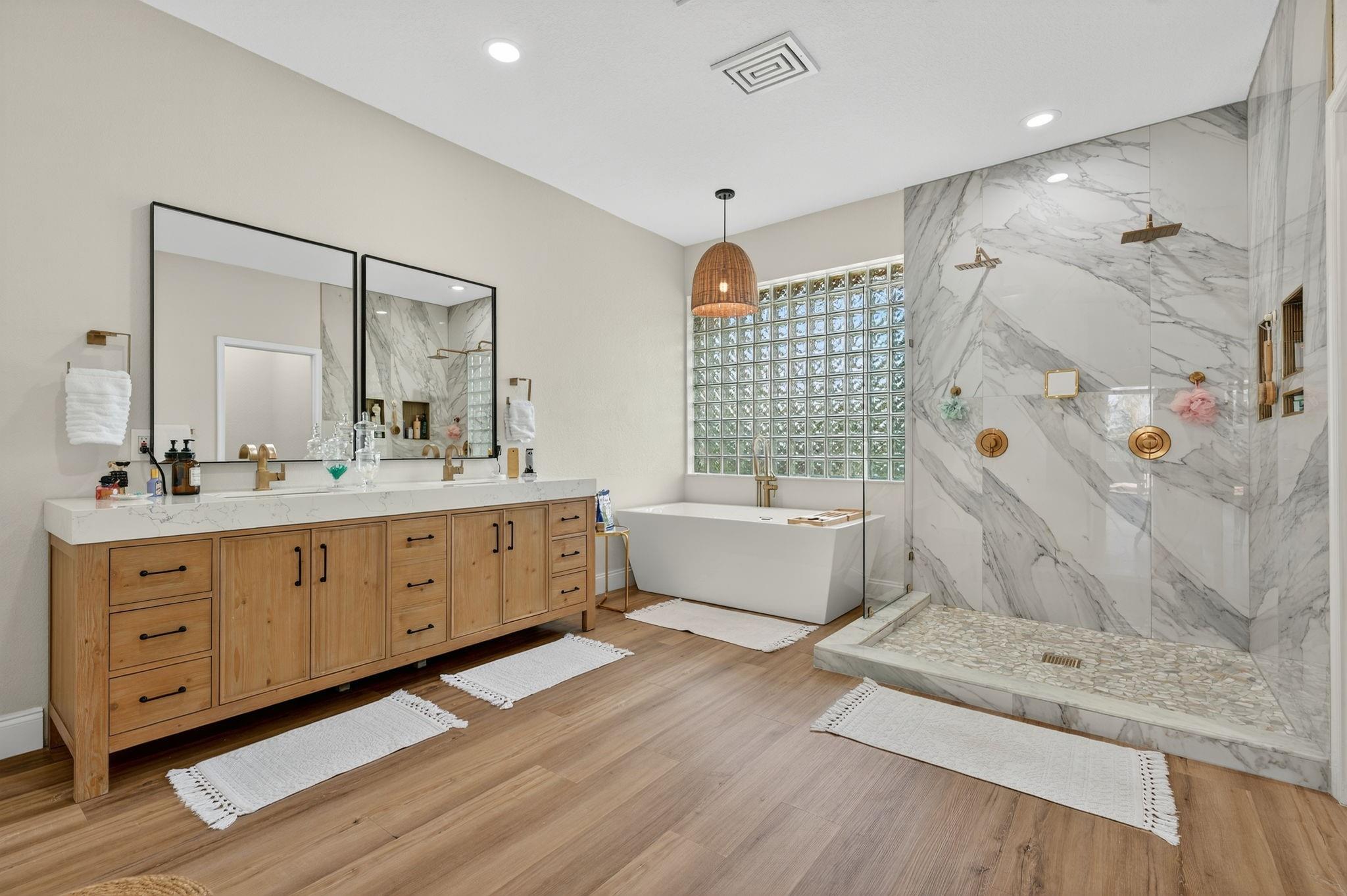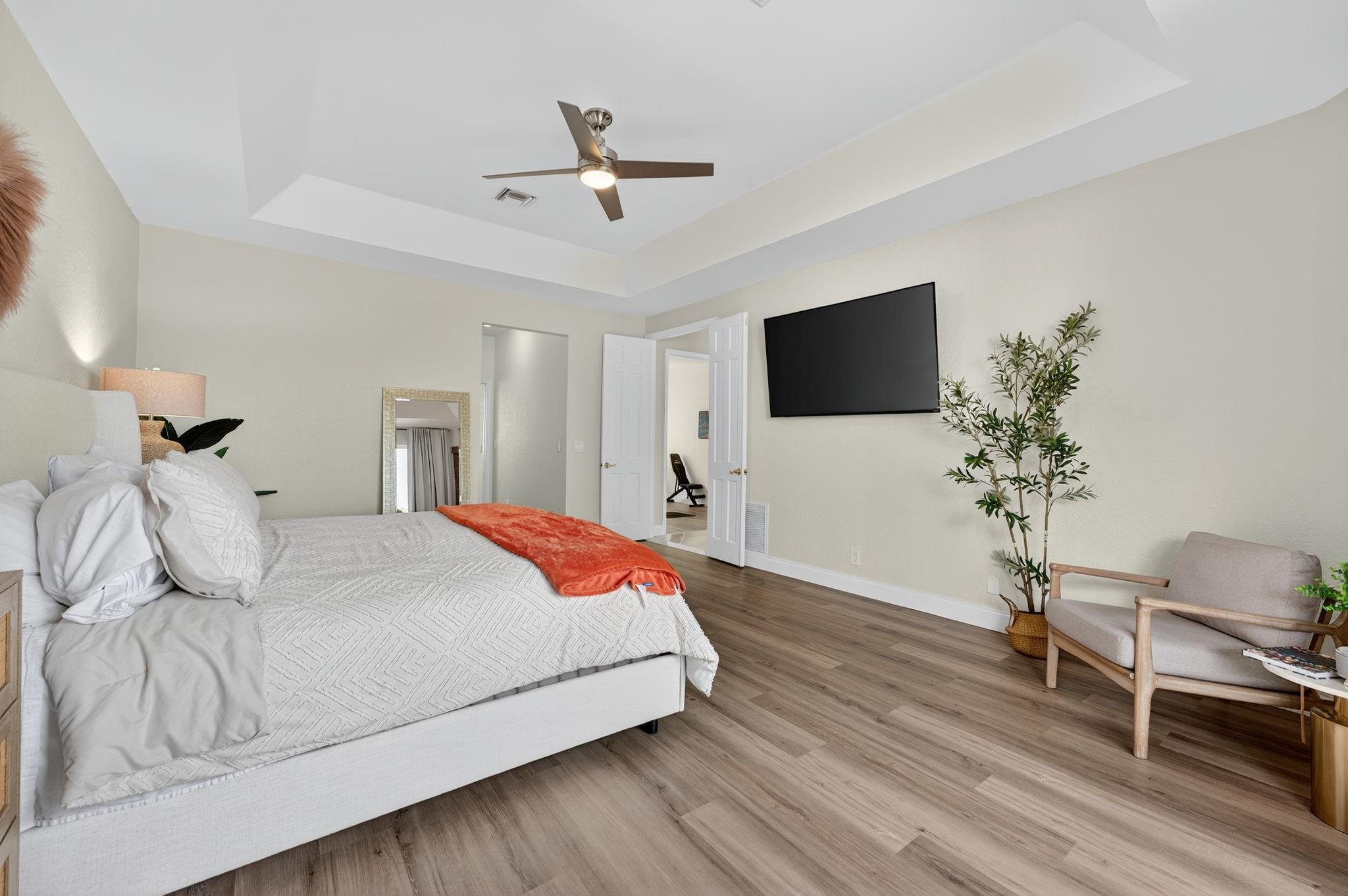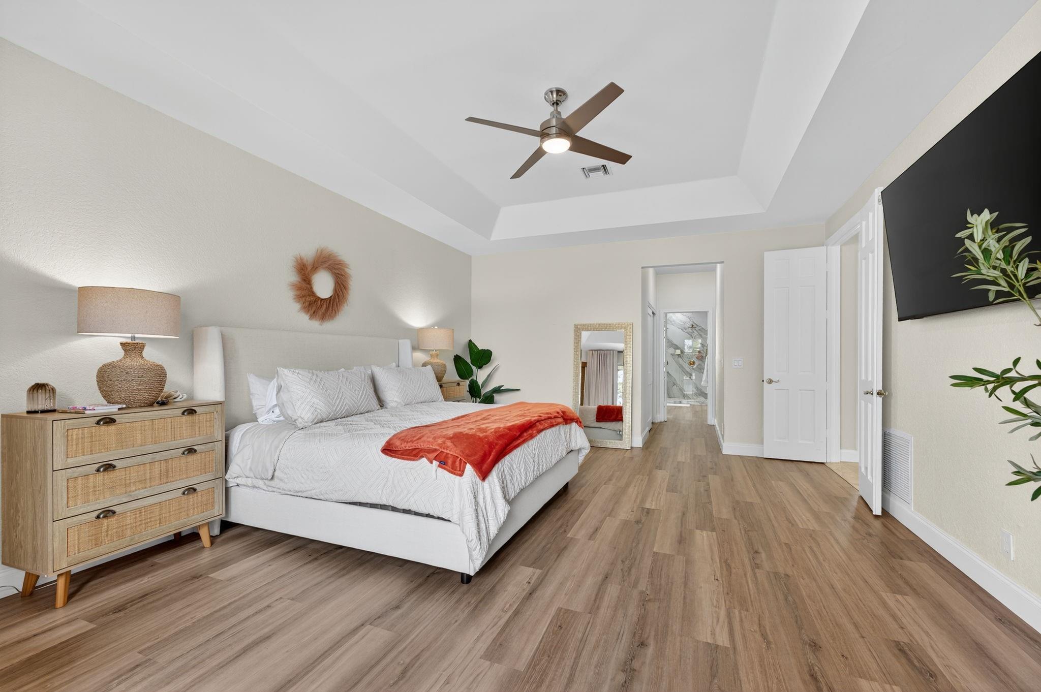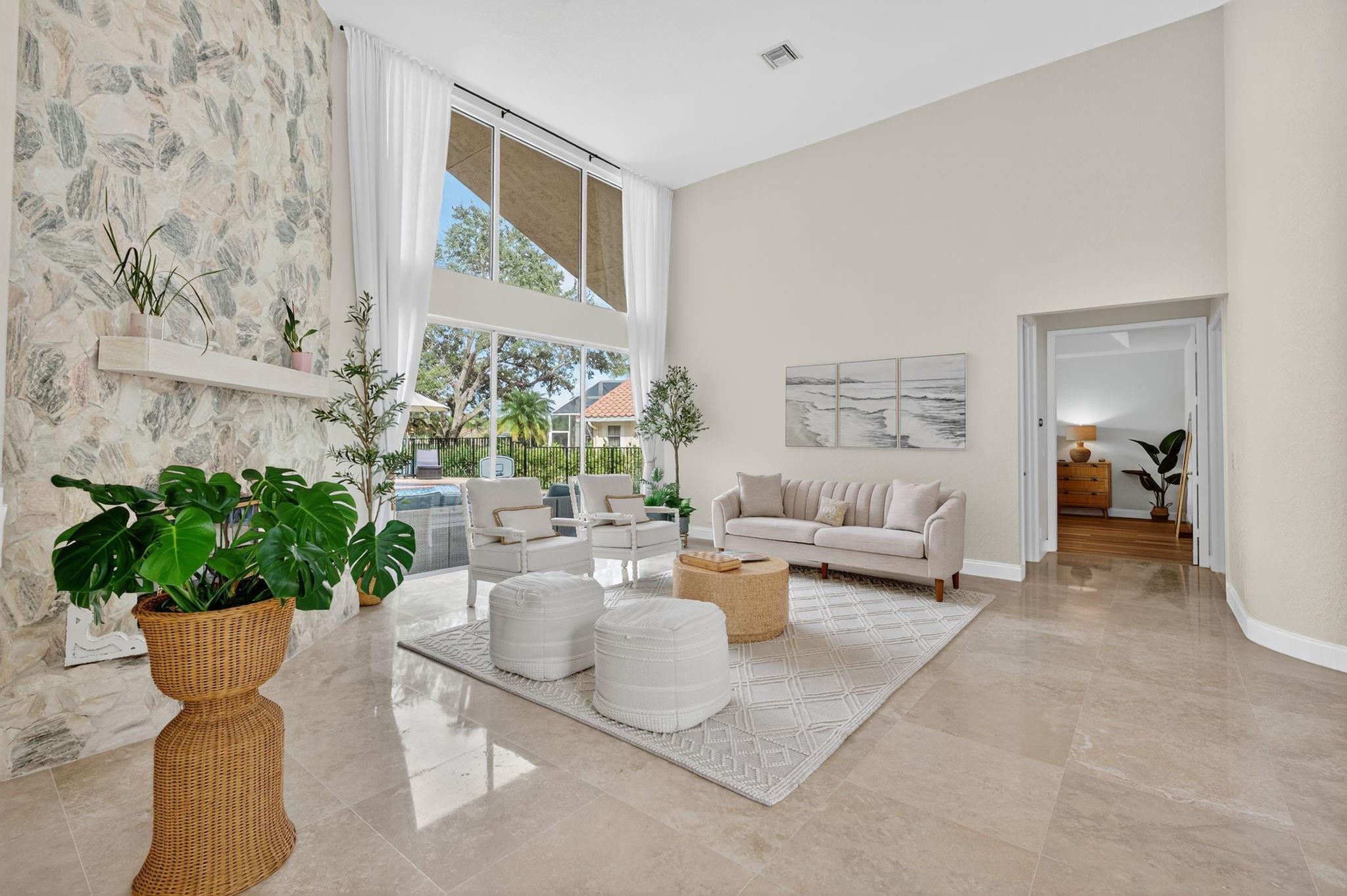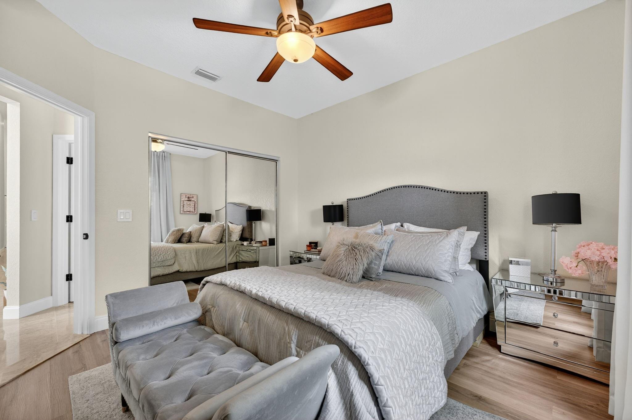 Beautifully maintained one-story home in the sought-after Brookside Grove community. Enjoy stunning lakefront views and a spacious layout ideal for modern living. Upgrades: New floating floors in all bedrooms, renovated bathrooms, built-out closets, and new curtains and blinds. Newer washer, dryer, fridge, new pool heater, and updated sprinkler systems. Master Suite: Features a separate tub, glass-enclosed shower, dual sinks, and a walk-in closet. Living Space: Expansive living area flows into a separate dining room, with a well-appointed kitchen showcasing a large island, snack bar, and ample cabinetry with granite countertops. Set on a 1/3-acre lot with mango and coconut trees, private hedges, and picturesque lake views.
