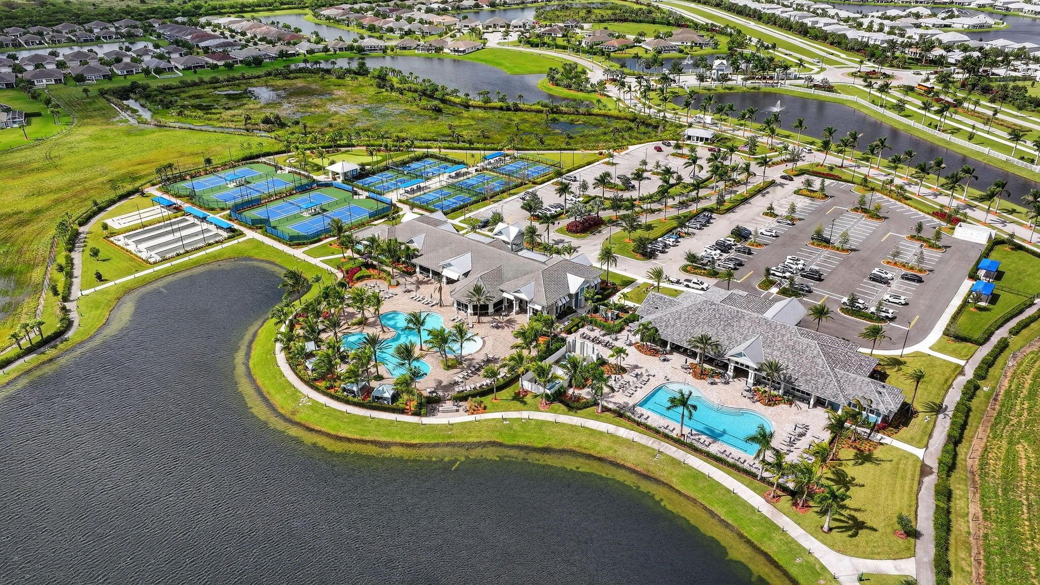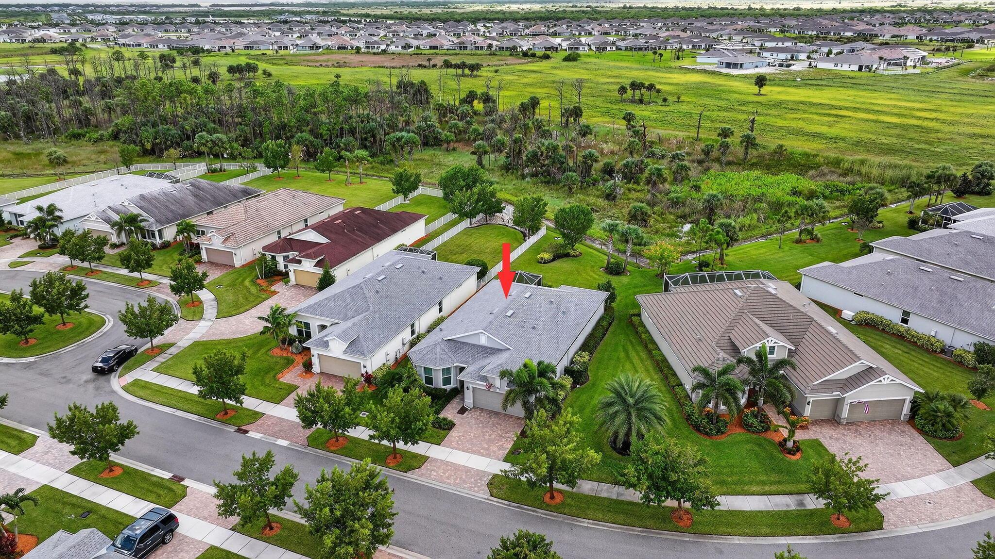 Welcome to this Pulte built home in the sought after community of Del Webb located in Tradition. Fantastic open floor plan featuring a gourmet kitchen with quartz counters and center island, upgraded cabinets and appliances, gas cooktop, wall oven and large pantry. Master suite offers trey ceilings with crown molding plus a large walk in shower, dual sinks and walk in closet with built in shelving. Spacious living and dining rooms each have sliders leading to extended screened in lanai overlooking preserve for the ultimate in privacy and sweeping sunset views. Impact Windows!!Del Webb offers first class amenities including 2 clubhouses, state of the art fitness center, resort style pool and spa, pickleball and tennis courts, full time lifestyle director, dog park and firepit