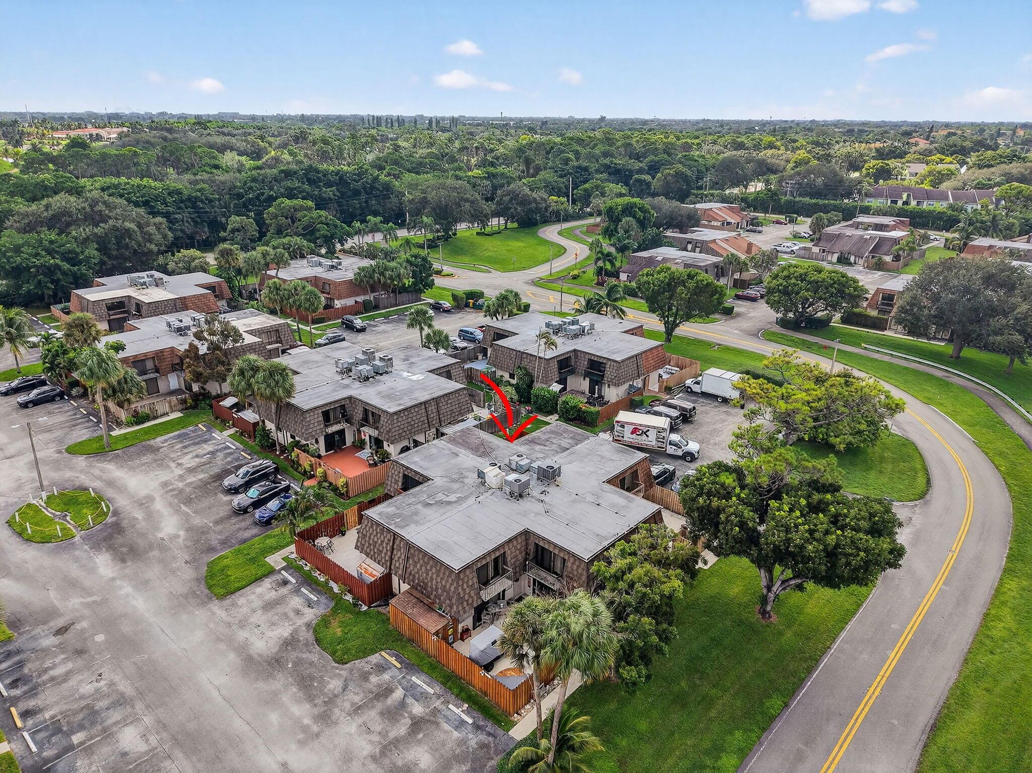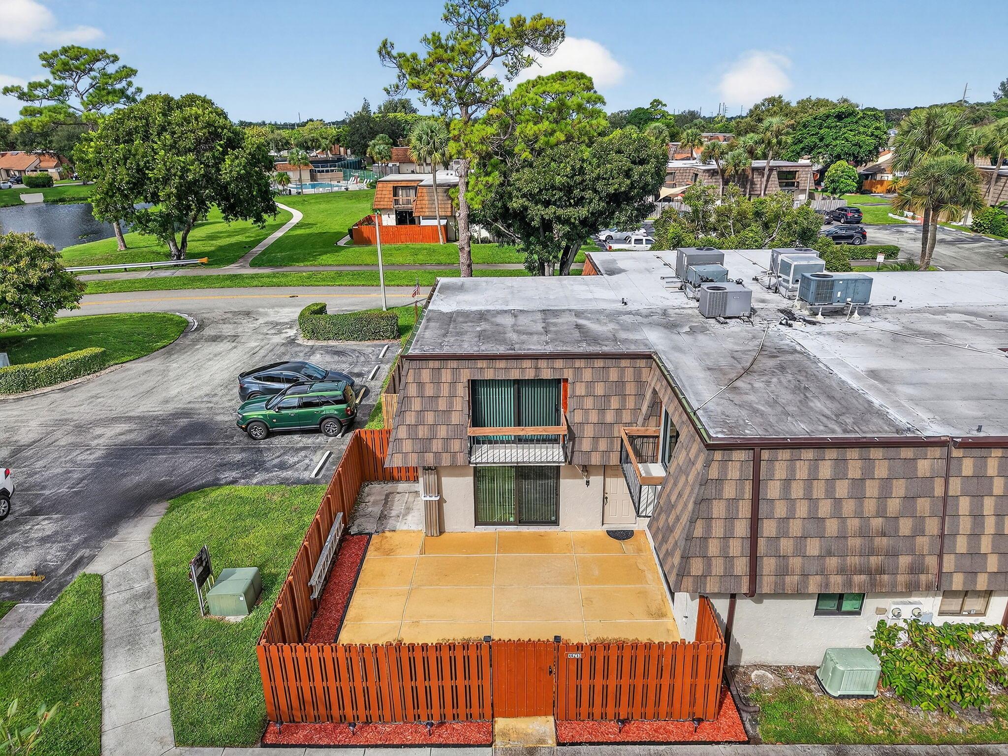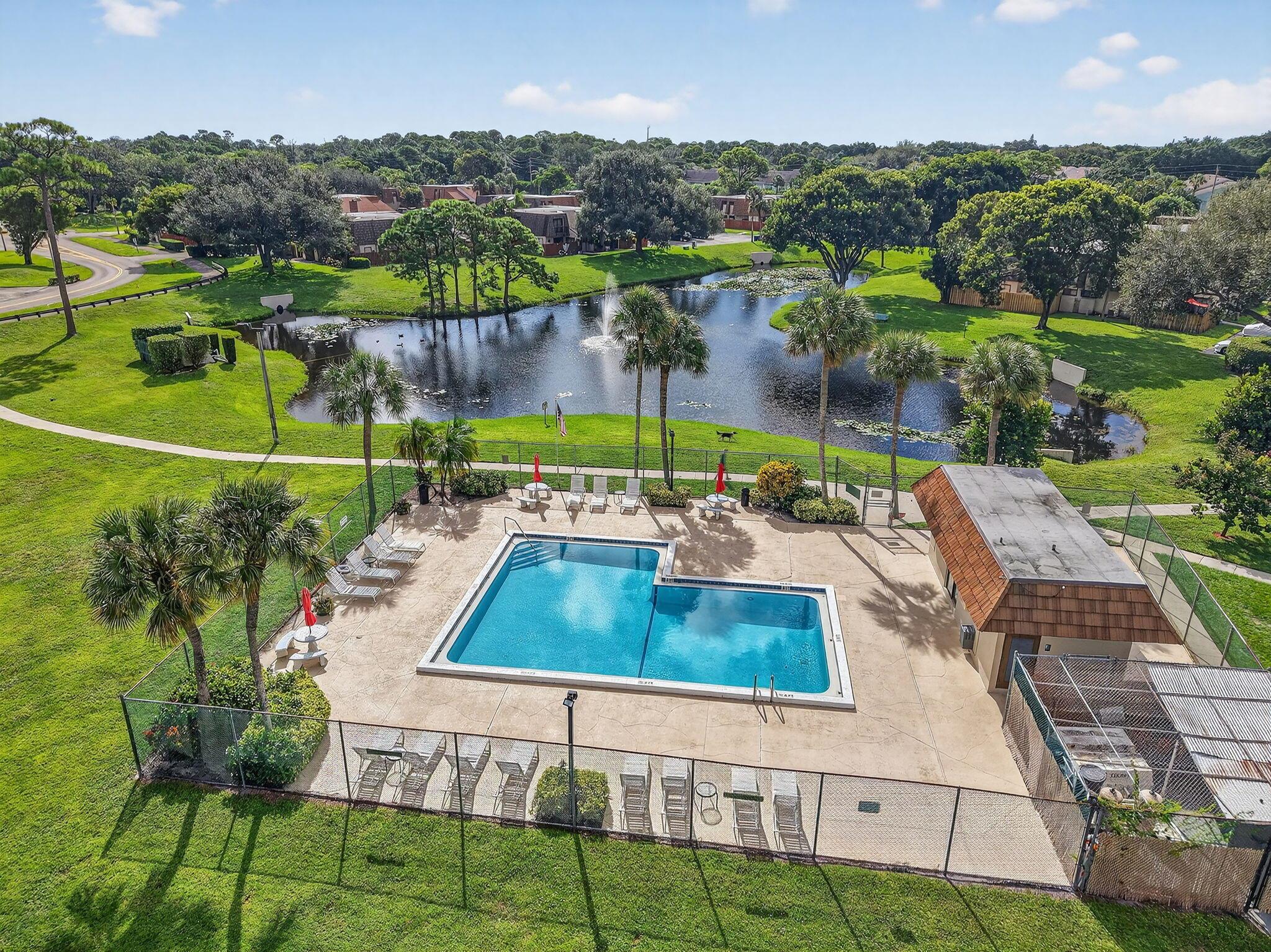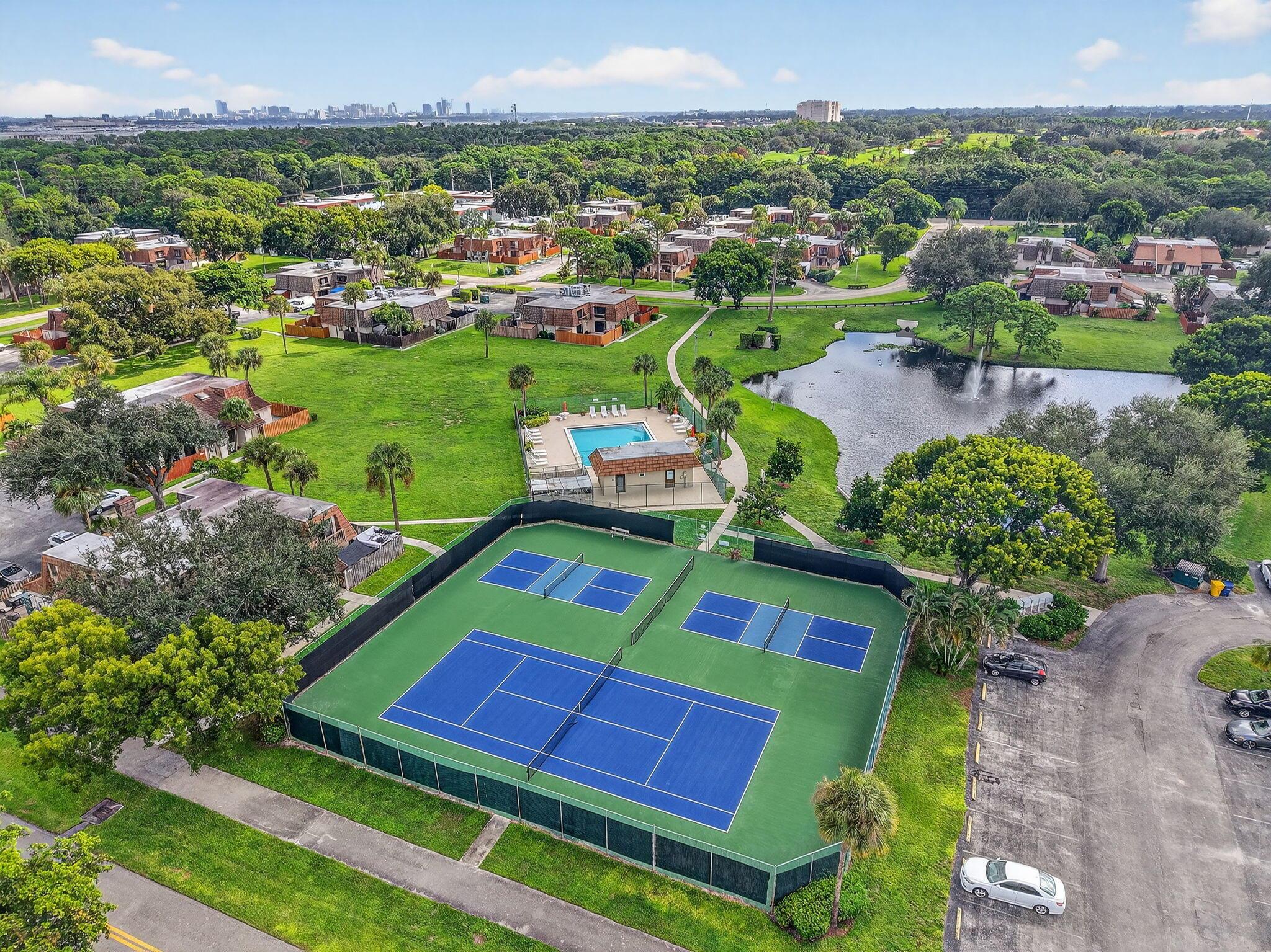 2 Bed, 2.5 Bath well-maintained townhome offers two master suites on the second floor, half bath and laundry downstairs. Roof and gutters 2022, A/c 2018, impact sliders and windows 2024. Huge fenced patio area. Comes with 2 assigned parking spaces. Community amenities include 2 pickleball courts, 1 tennis court, pool, and wide sidewalks. Centrally located near Palm Beach Airport, I-95, Palm Beach Zoo, Main Library. All sizes approx.