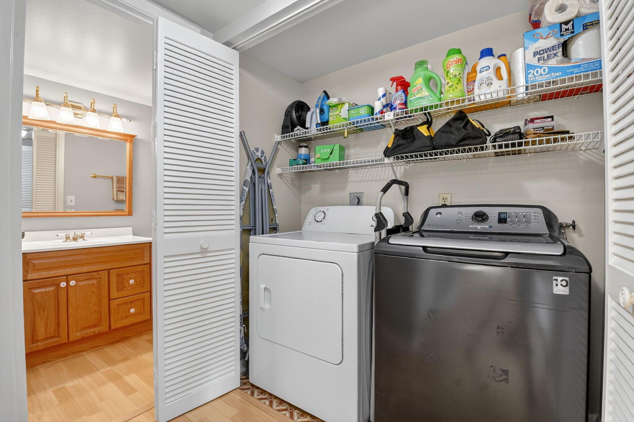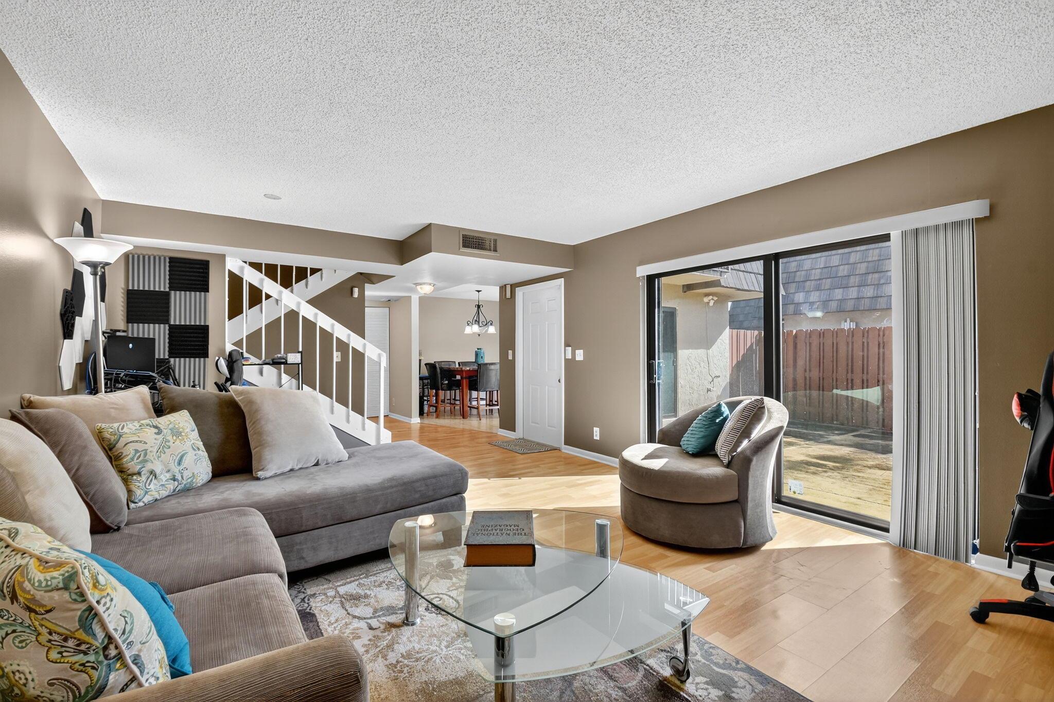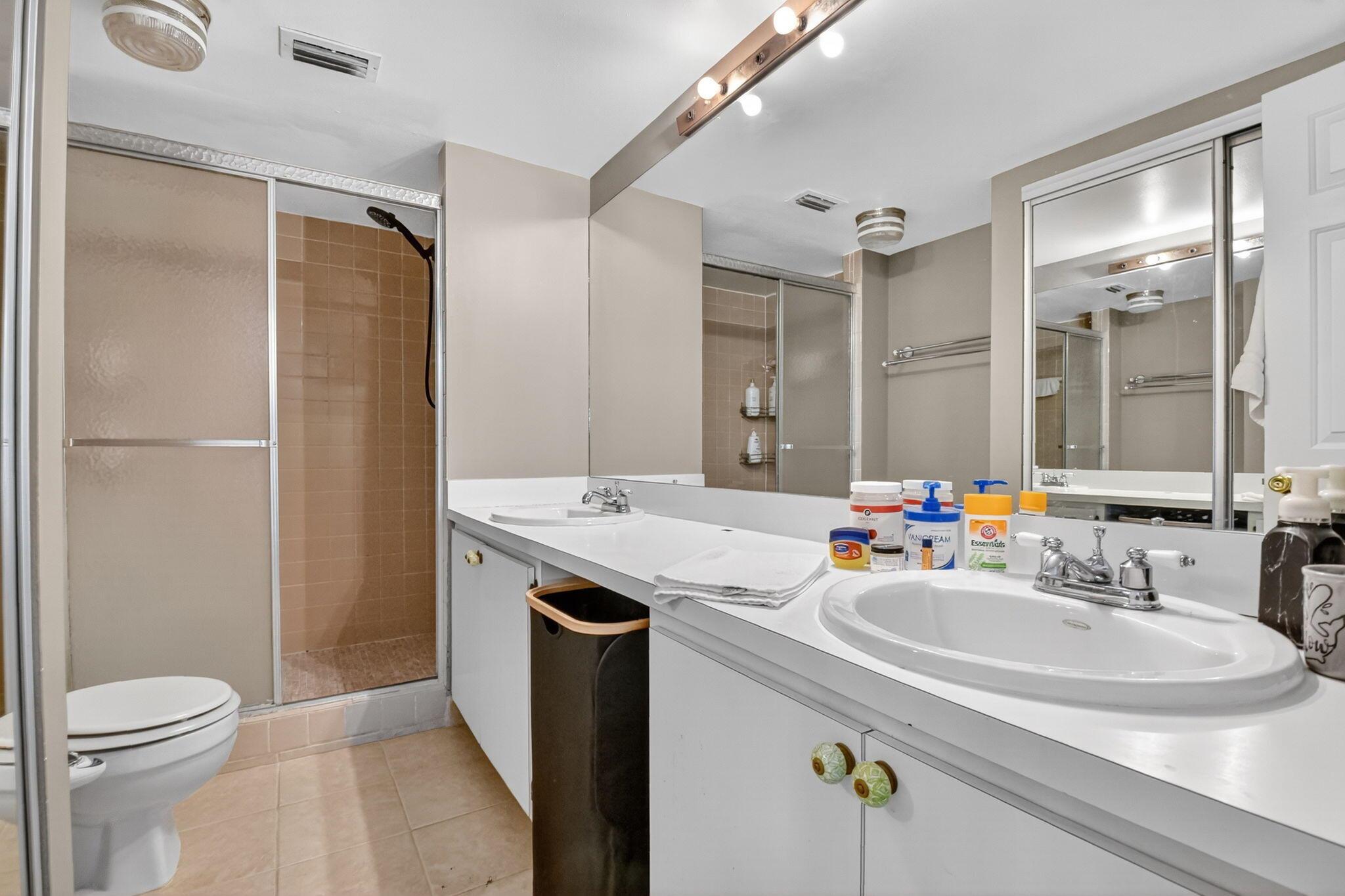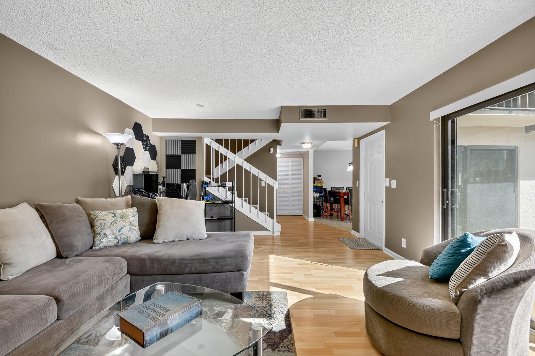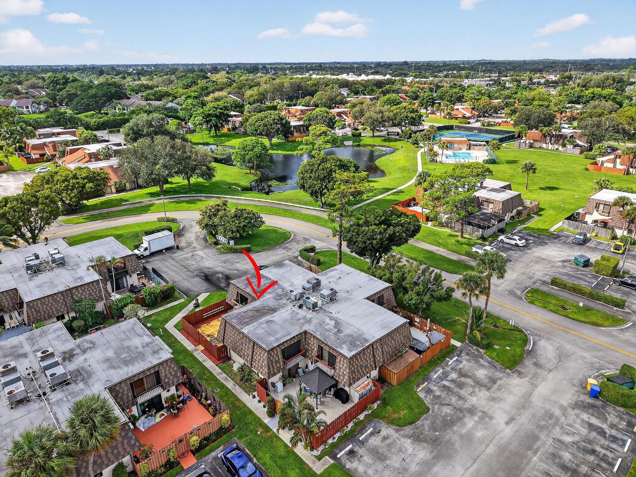 2 Bed, 2.5 Bath well-maintained townhome offers two master suites on the second floor, half bath and laundry downstairs. Roof and gutters 2022, A/c 2018, impact sliders and windows 2024. Huge fenced patio area. Comes with 2 assigned parking spaces. Community amenities include 2 pickleball courts, 1 tennis court, pool, and wide sidewalks. Centrally located near Palm Beach Airport, I-95, Palm Beach Zoo, Main Library. All sizes approx.