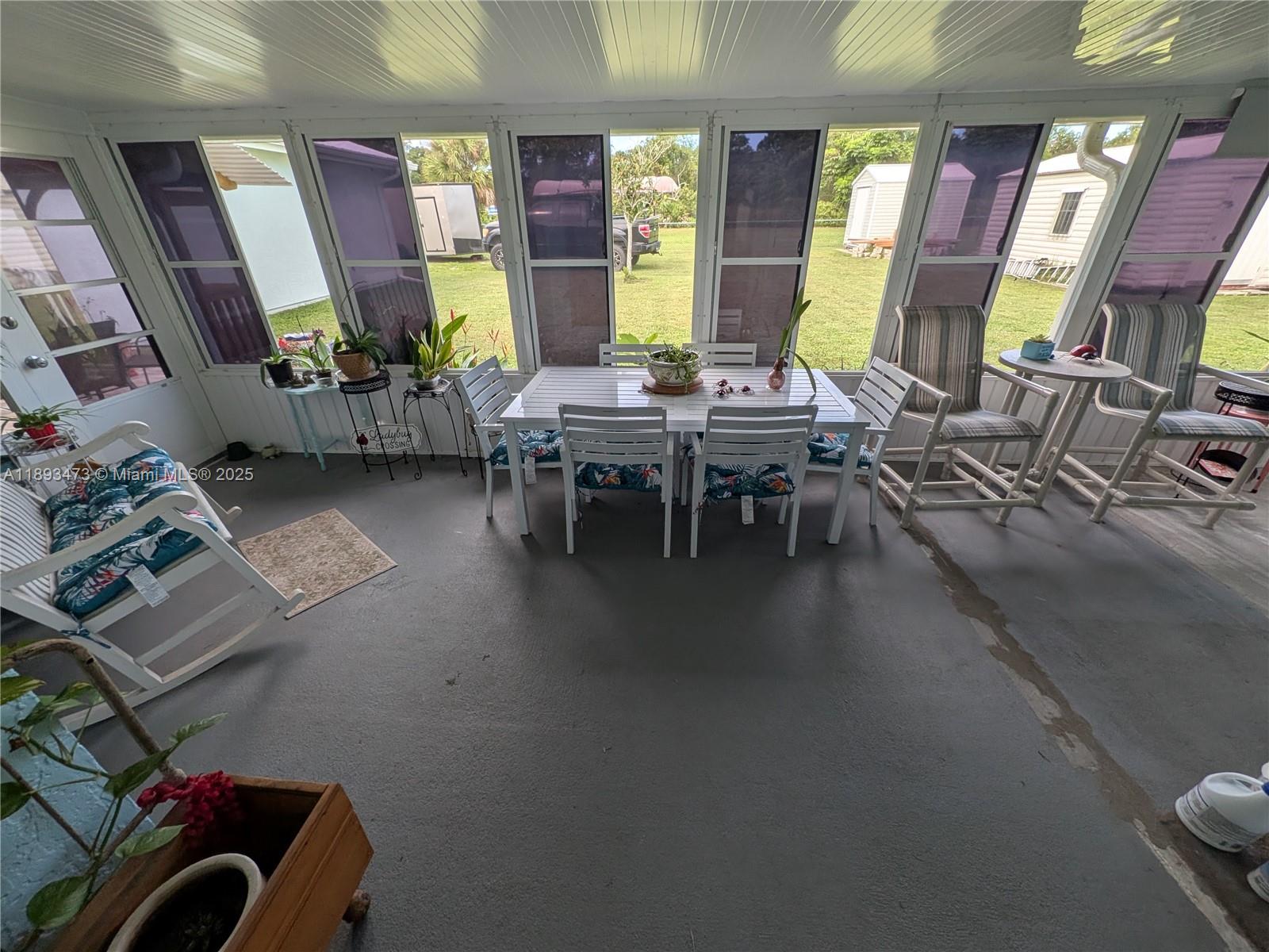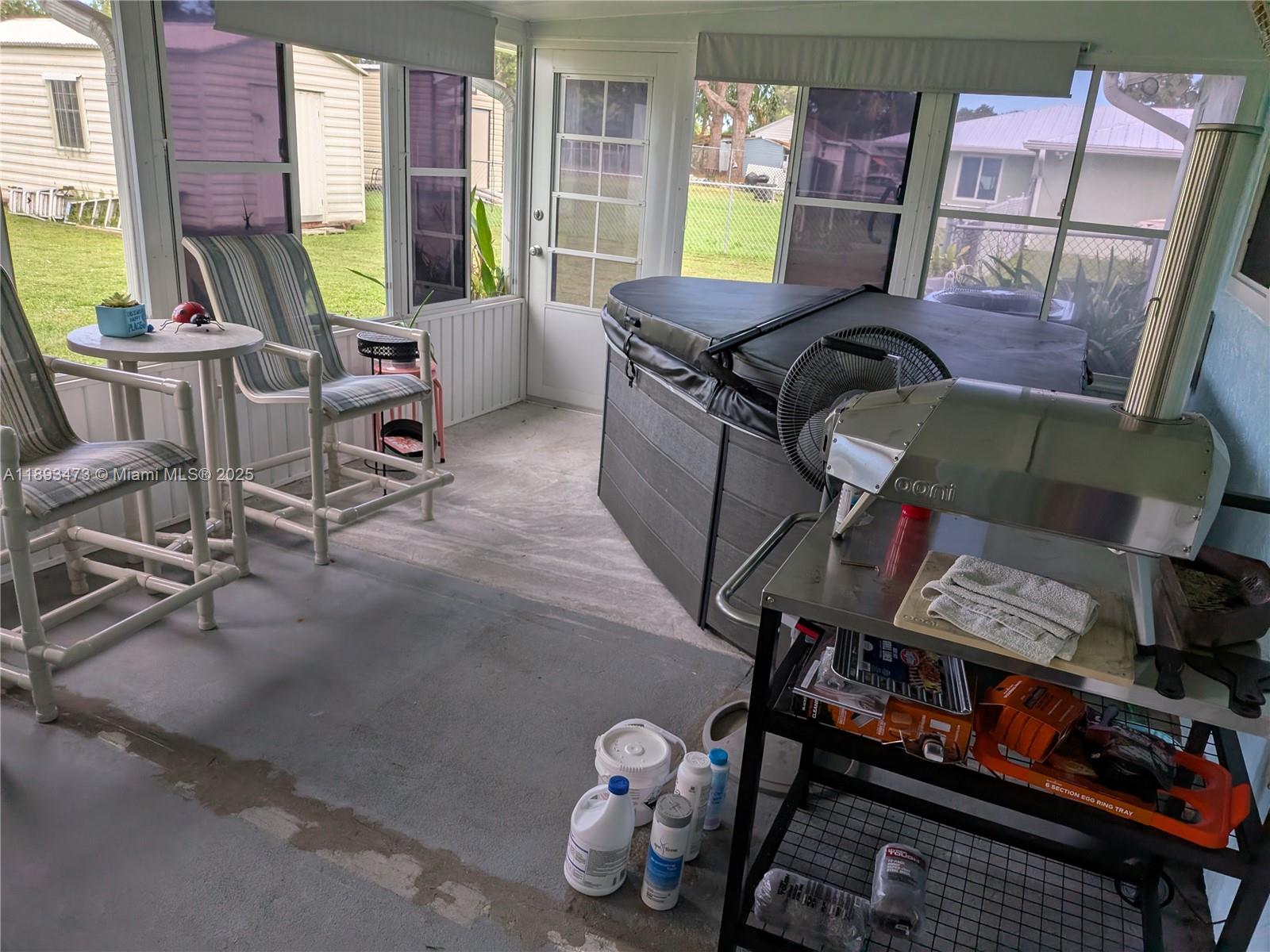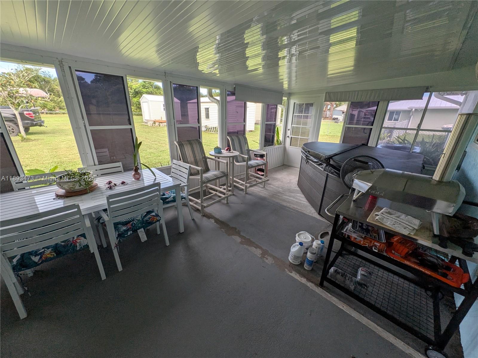• Característica exterior:Awnings, Deck, EnclosedPorch, Fence, Patio, RoomForPool, Shed, SecurityHighImpactDoors, StormSecurityShutters