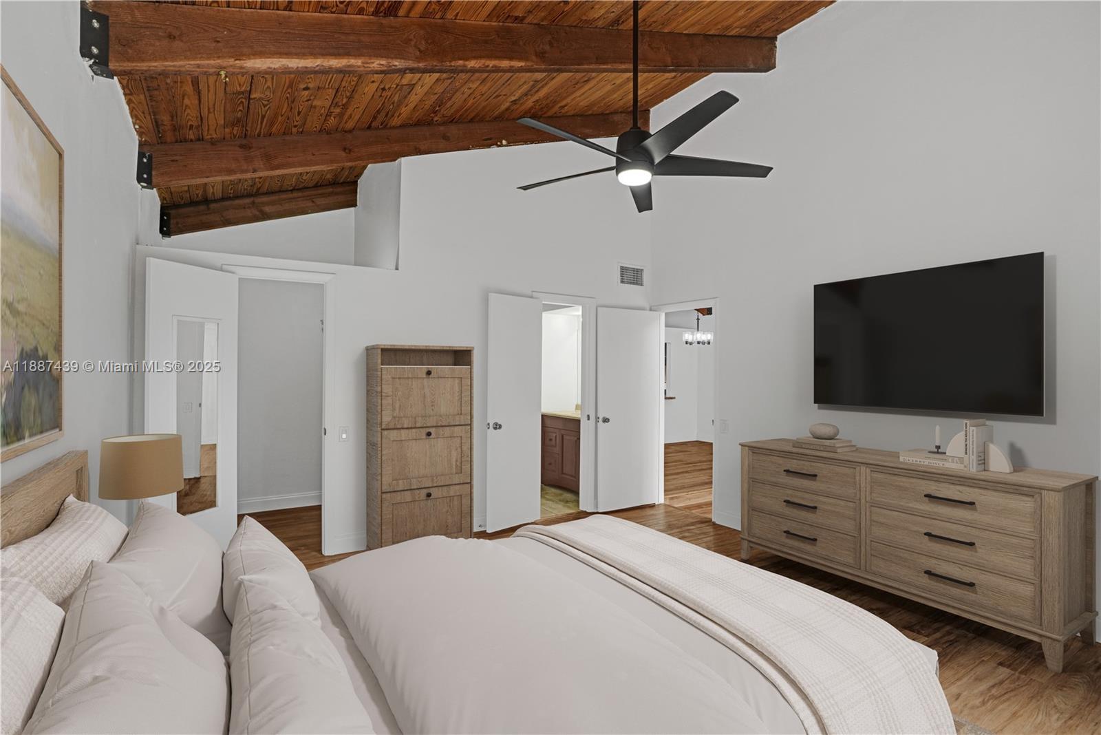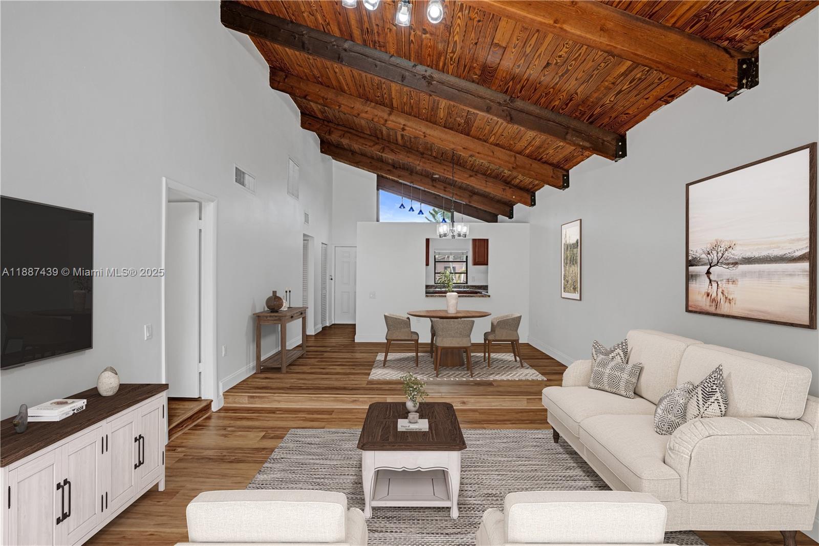 Inviting 2BR/2BA Villa in desirable Pinetree Village/Killian Pines offers 1,080 SF of bright living space with soaring 14-ft vaulted wood-beam ceilings that create a warm ambiance. The open layout connects seamlessly to a private fenced yard & patio, perfect for outdoor living and entertaining. The spacious primary suite features vaulted ceilings, an en-suite bath & walk-in closet. Gas appliances (range, dryer, and water heater) add efficiency, while the 2020 roof and water heater provide peace of mind. Enjoy two parking spaces plus guest parking. Pinetree Village offers a tranquil atmosphere, mature tree-lined streets, just 151 homes, and low HOA fees with no association approval required! Ideally located near US-1, Dadeland Mall, The Falls, Baptist Hospital, top schools, dining & parks