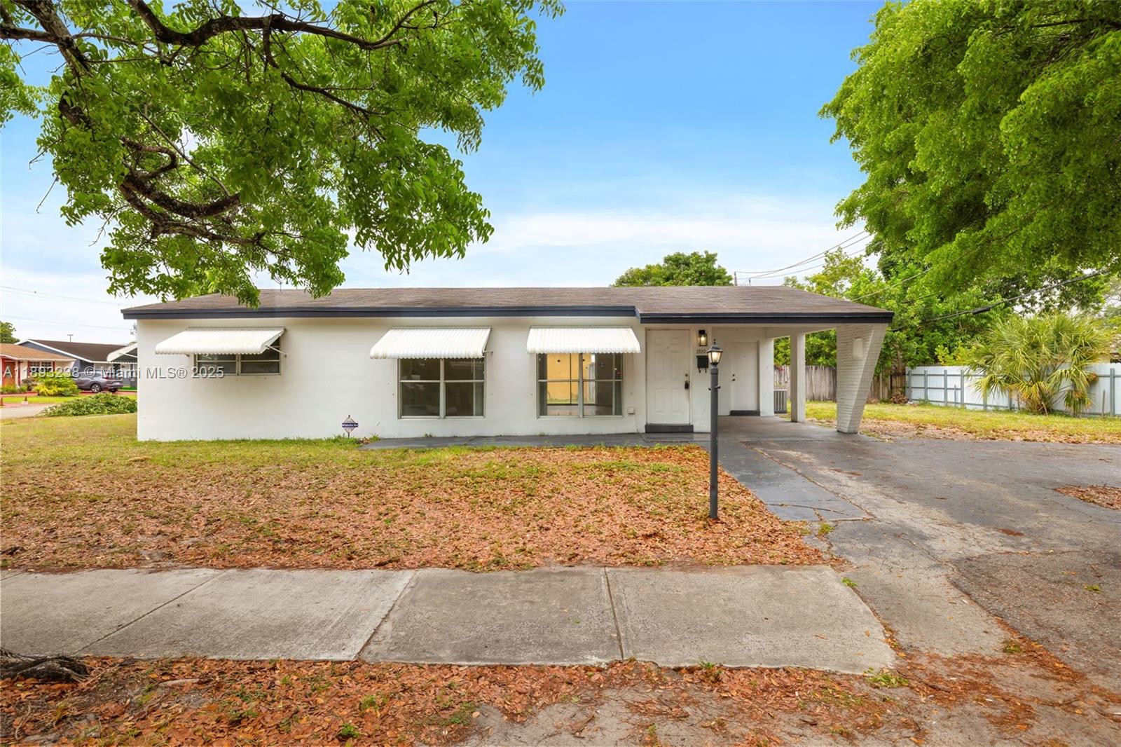 Exceptional Corner Lot Opportunity in Hollywood! This charming 3-bedroom, 2-bathroom single-family home sits on a spacious 7,528 sq ft corner lot—offering exceptional privacy and space for expansion or a pool. The 1,250 sq ft interior features a practical layout with ceramic floors, and new wood floors in the bedrooms, remodeled bathrooms, new roof in 2018, first-floor entry, and a utility/laundry room. Key Highlights: • Corner Lot: Extra space for outdoor living, parking, or customization. • Solid Build: Concrete block with central A/C, covered driveway, and patio. • Great Value: with new kitchen cabinets, bedroom floors, new bathrooms, new roof in 2018 • No HOA—ideal for first time owner • Sold "As-Is" with comps supporting strong value. showings via showing time.