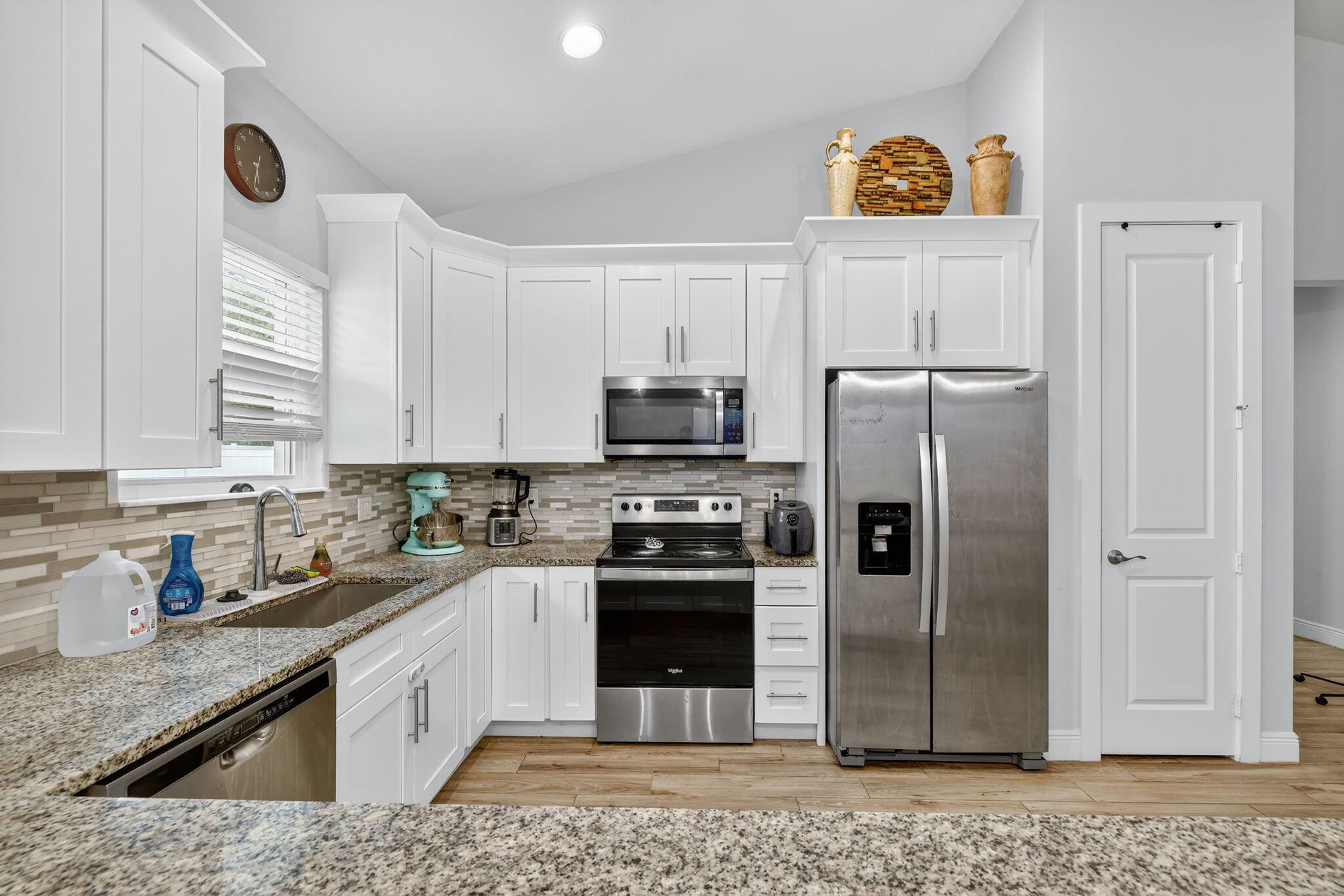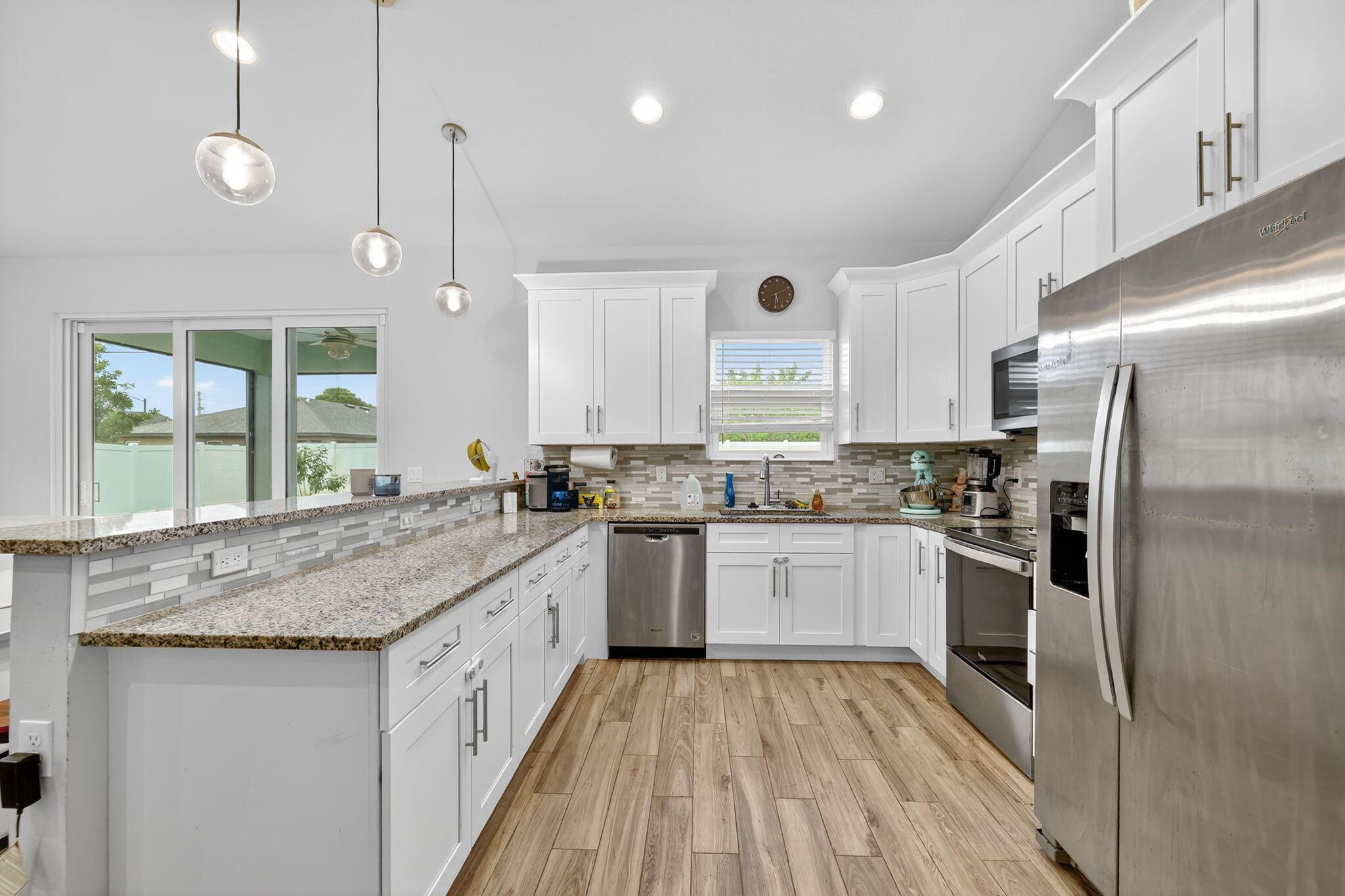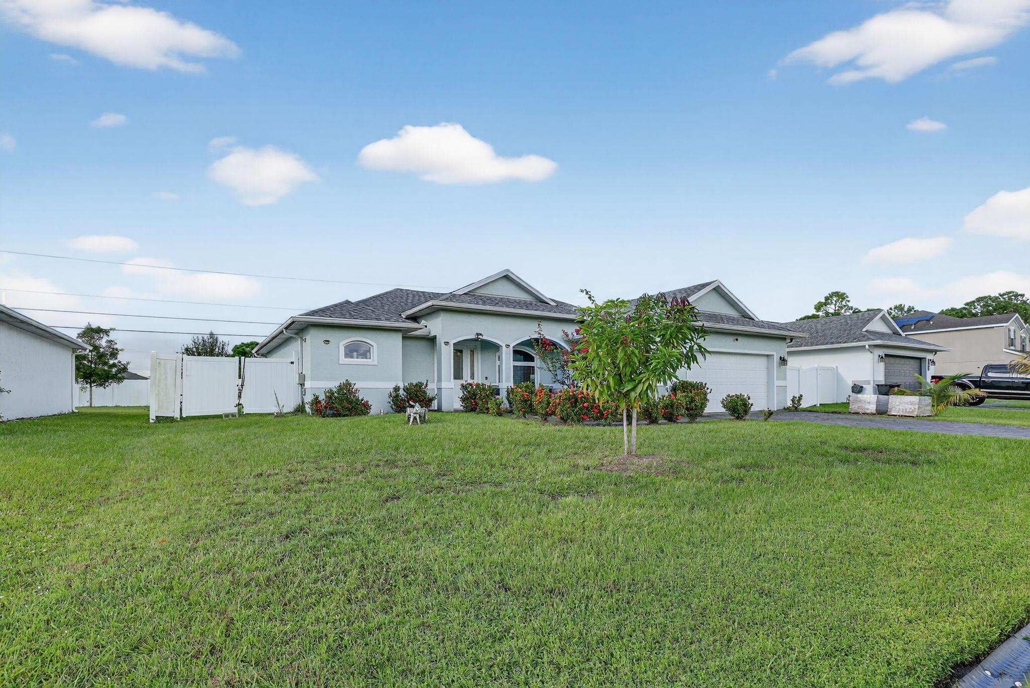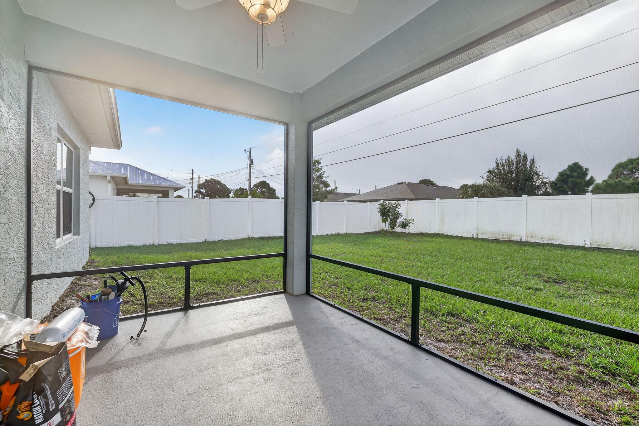 Experience modern comfort in this stunning 3-bedroom, 2-bath + office home complete with solar panels and impact windows. Designed for today's lifestyle, it features an open-concept layout, soaring ceilings, and abundant natural light throughout. The stylish kitchen showcases sleek countertops, stainless steel appliances, and generous storage--perfect for everyday living or entertaining guests. The serene master suite includes a spacious custom walk-in closet and a private en-suite bath for ultimate relaxation. Step outside to a large fenced backyard and screened patio, offering the ideal space for outdoor gatherings or quiet evenings. Just minutes from I-95, shopping and dining, this home perfectly embodies the best of Port St. Lucie living. Don't miss your chance to make it yours!