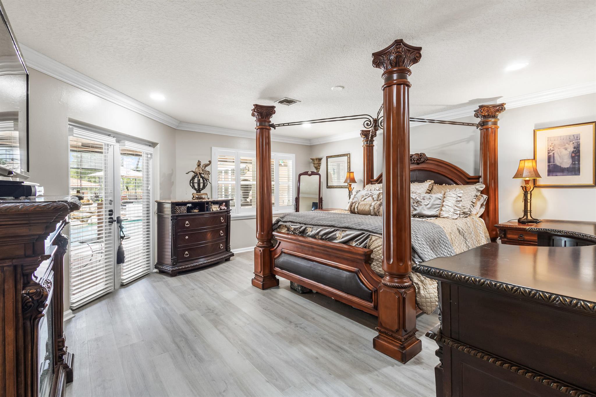 Are you prepared to chase your equestrian aspirations? Here lies a gated equestrian estate with fully equipped guest cottage situated on 5 full acres in the desired community of Deer Run, offering all the amenities of the equestrian lifestyle complete with a luxurious swimming pool. The pool is protected by commercial-grade screening which allows you to relish summer evenings shielded from the elements. The pool features landings beneath a stunning waterfall, reminiscent of resort-style living. A newly resurfaced asphalt driveway provides a smooth approach to your home. Additionally, both houses boast a newly installed Barcelona barrel tile roof. Upon entering through the new high-end hurricane impact double doors, you are greeted by vaulted ceilings and a Riverstone fireplace, perfect