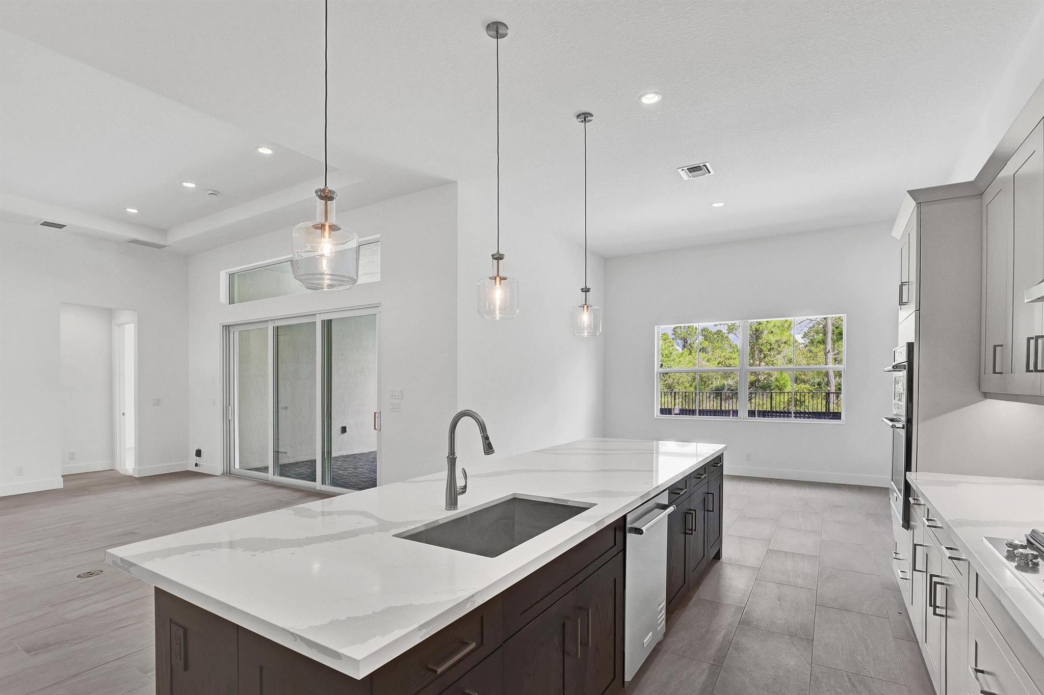 Welcome to the Shelby, a quick move-in home featuring 3 bedrooms and 3 bathrooms, designed for modern Florida living. An inviting covered entry opens to a foyer with tray ceiling, leading to an expansive great room and dining area with elegant tray ceilings and views of the covered lanai and private pool perfect for entertaining or relaxing outdoors. The designer-appointed kitchen boasts a large center island with breakfast bar, ample counter and cabinet space, a generous pantry, and overlooks a bright casual dining area. Additional highlights include a versatile flex room, centrally located laundry, 2-car garage, and ample storage. This Shelby home blends comfort, style, and effortless indoor-outdoor Florida living.