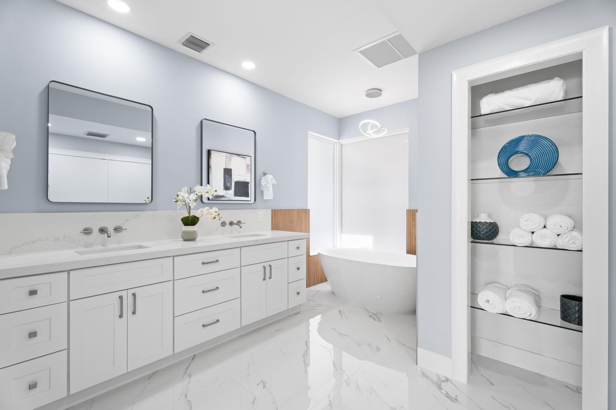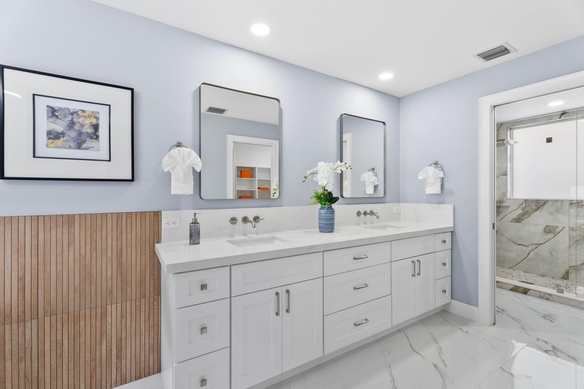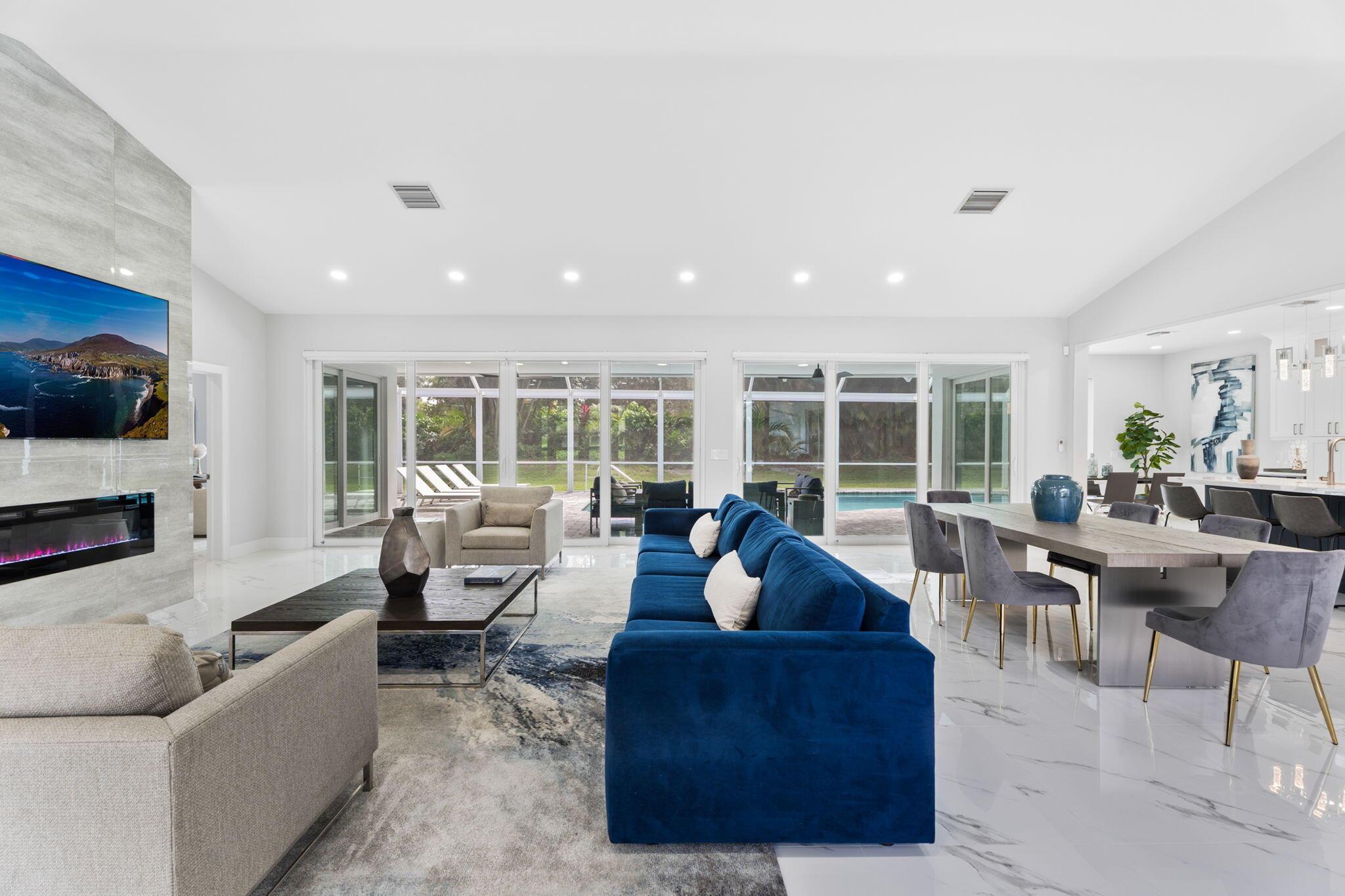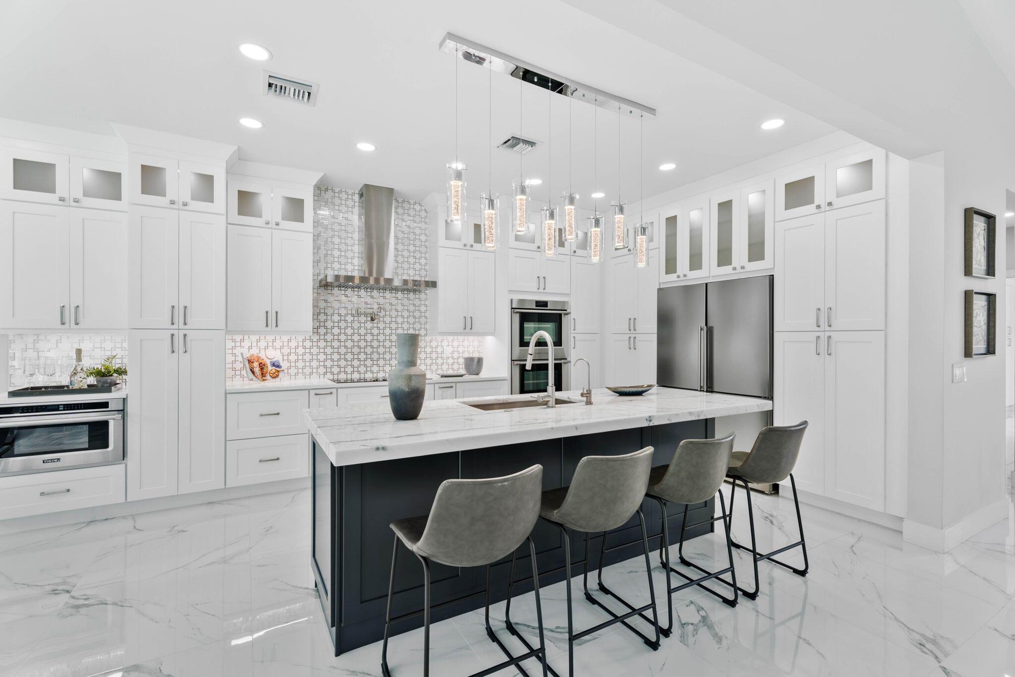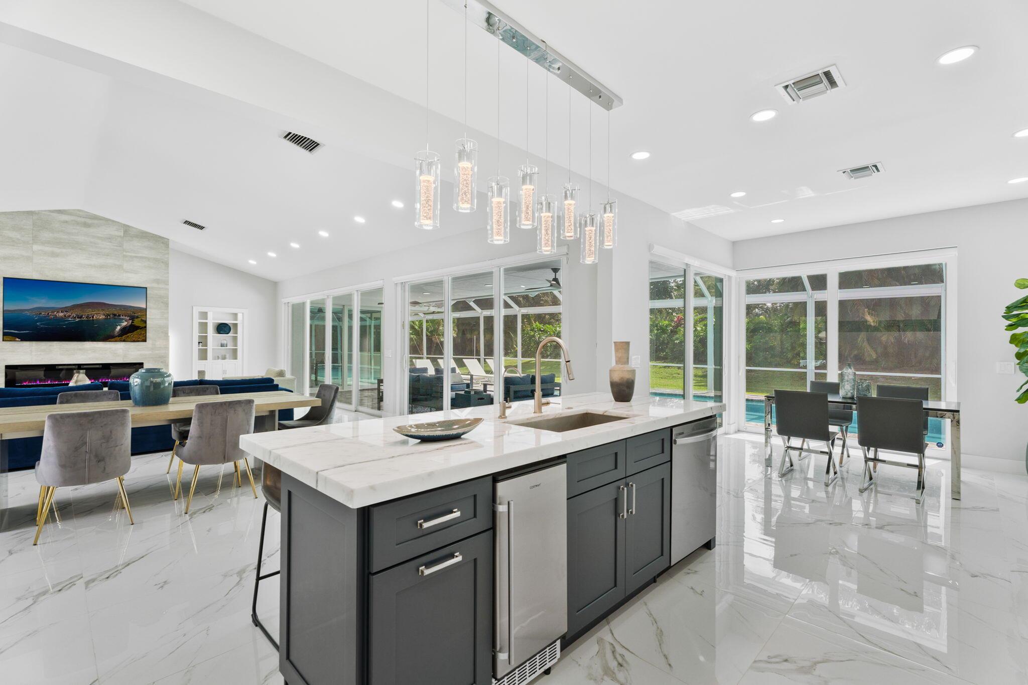 Masterfully modernized estate home in world-renowned PGA National. This stunning one-story CBS home spans over 3,800 sq. ft. of living space with 4 bedrooms & 4.5 baths. This residence features 2 large primary suites and a very private guest suite with its own entry & dry bar--perfect for in-laws or extended stays. Every detail has been upgraded: new roof, impact windows & doors, Lutron smart system, & imported porcelain floors from Spain throughout. The chef's kitchen includes double ovens, vented hood, standalone ice maker, & filtered water tap. All baths are newly redesigned with elegant finishes. Outside, enjoy a resurfaced pool, new heater, screen enclosure, & paver patio ideal for entertaining. This is your opportunity to live steps away from an internationally acclaimed golf resort.