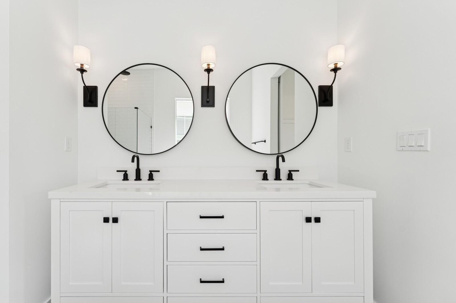 Enjoy picturesque lake views from this stunning farmhouse-style Santa Fe home, where comfort and character come together beautifully. The stunning kitchen showcases Brellin White cabinets and elegant Statuary Classique quartz countertops, opening to connected living spaces with a vaulted ceiling and stained ceiling beams for added warmth and charm. The peaceful primary suite offers the perfect retreat, complemented by a refreshing bath with a barn door and freestanding tub. A functional home office and formal dining room off the foyer add flexibility, while the inviting covered patio with a 16-foot multi-slide door creates seamless indoor-outdoor living. For added comfort and efficiency, the Home Technology Suite comes standard, delivering smart home features designed for today's
