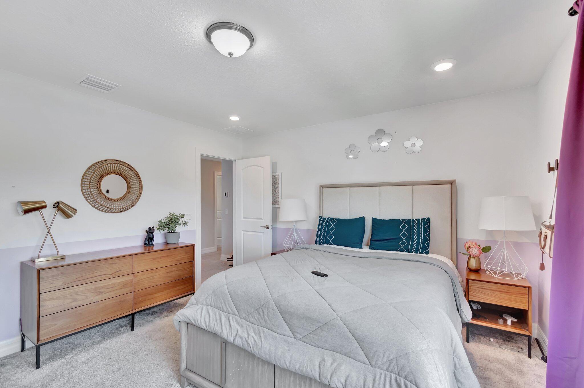 Former Citrus Grove Model Home! Bought directly from the developer, this upgraded 2019 model offers 5 oversized bedrooms, 3 bathrooms, a spacious upstairs den, and countless high-end features. Enjoy low insurance and low HOA! Designer upgrades include custom feature walls, built-ins, wine fridge, shiplap ceilings, upgraded stair railings, and premium lighting throughout. Sliding glass doors that pocket. The oversized kitchen features quartz countertops, backsplash, and a massive island. The main floor offers a guest suite & primary, a full laundry room, and a two-car garage. Upstairs includes three large bedrooms with walk-ins and a massive den, ideal for an office or playroom. Relax on the screened-in patio with lake views and a fenced yard.