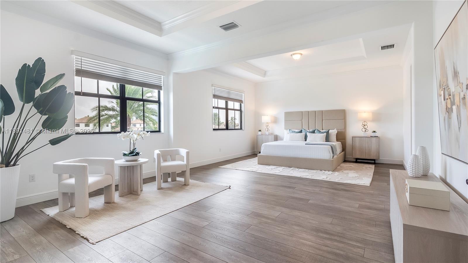 Experience luxury living in this gorgeous lakefront residence located in the prestigious gated community of Monterra. This elegant home features 5 bedrooms, 5.5 baths, and a versatile additional room in the converted garage, ideal for a gym or studio.The outdoor area offers the ultimate private resort, with a pergola, summer kitchen, contemporary saltwater pool, spa, and breathtaking lake views. The gourmet kitchen includes a center island and double ovens. The expansive primary suite showcases an extra-large custom walk-in closet and a spa-inspired bathroom. All bedrooms feature custom-designed walk-in closets. Impact glass on second-floor windows.Freshly painted interior.Resort-style amenities: clubhouse, pool, fitness center, basketball, tennis, dog park. A+rated schools. Move-in ready!