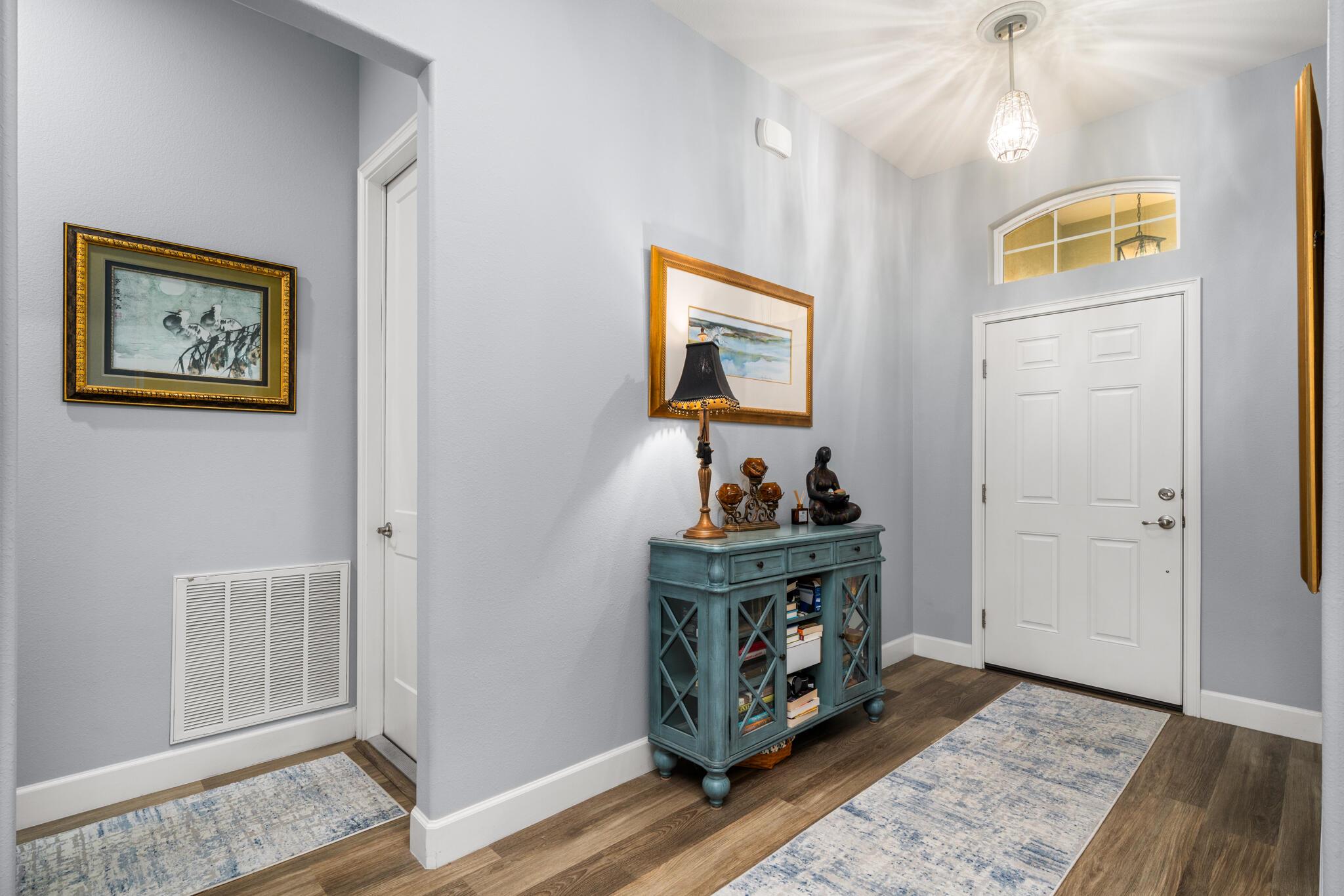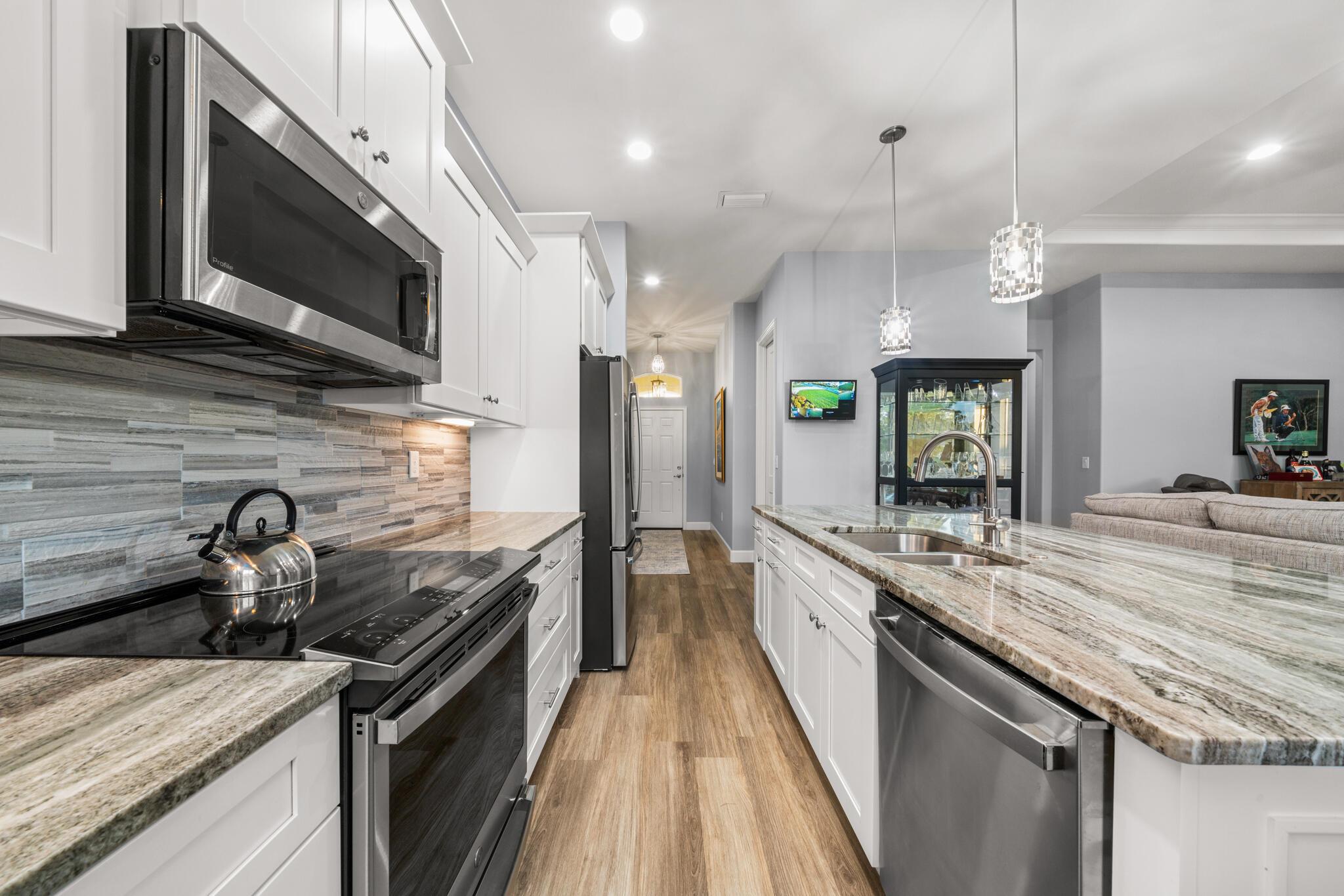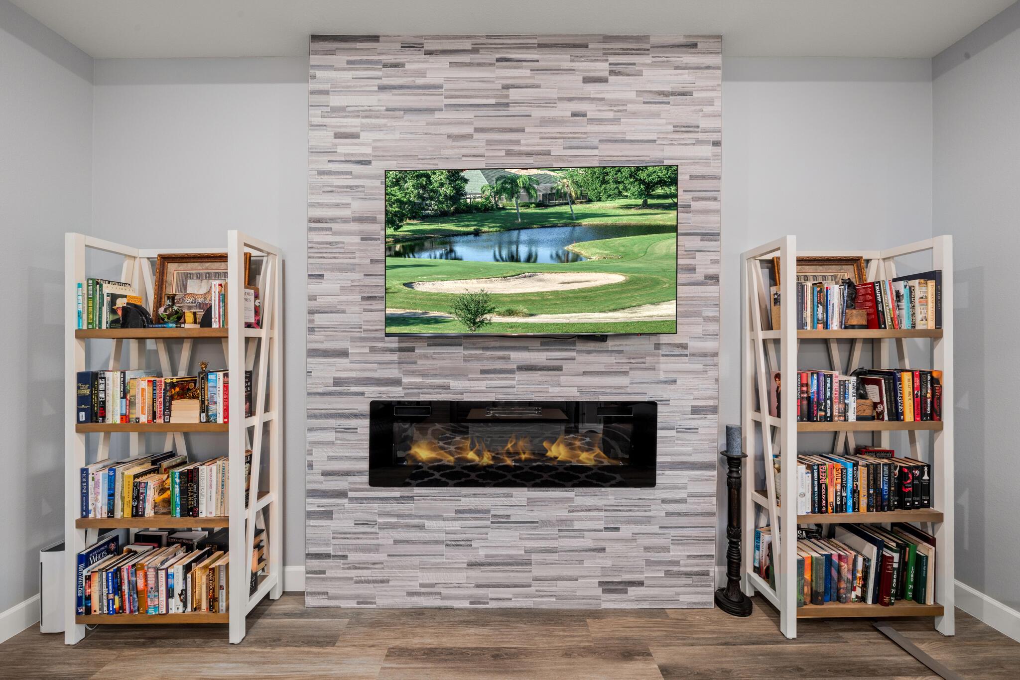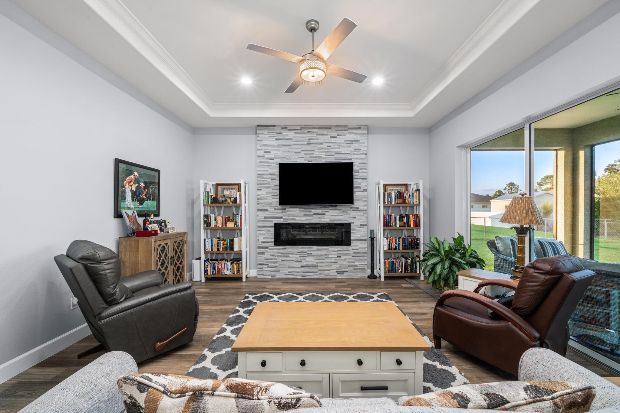 Welcome to this modern 3-bed, 2-bath CBS home in desirable Sun 'N Lake District of Sebring. 2-car garage with a side door and large closet/storage area, and BOTH the Golf Cart and Bad Boy Mower are available to Buyer. Security system and cameras convey. You are welcomed by the high volume covered entry way, with tile flooring. Step inside to high-volume ceilings, impact windows and doors, and an inviting layout. The living room features a stone accent wall with a decorative fireplace and coffered ceiling. The dining room has a beautiful window that brings in the natural light. The master suite also boasts a coffered ceiling with custom lighting and a large window. Master spa offers a dual vanity, walk-in shower and a generous walk-in closet. The kitchen is beautifully