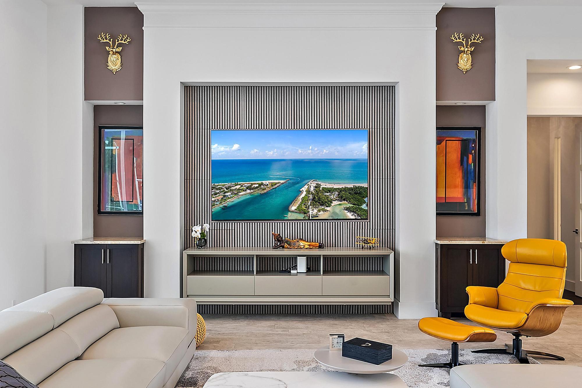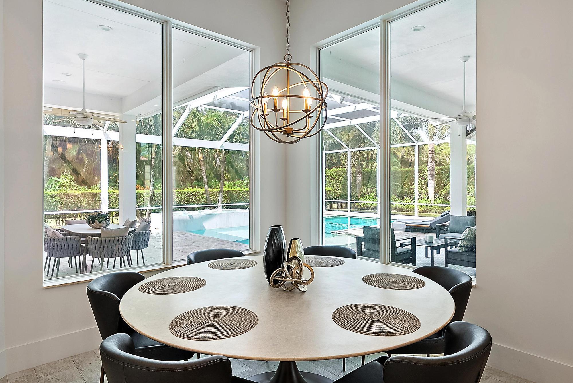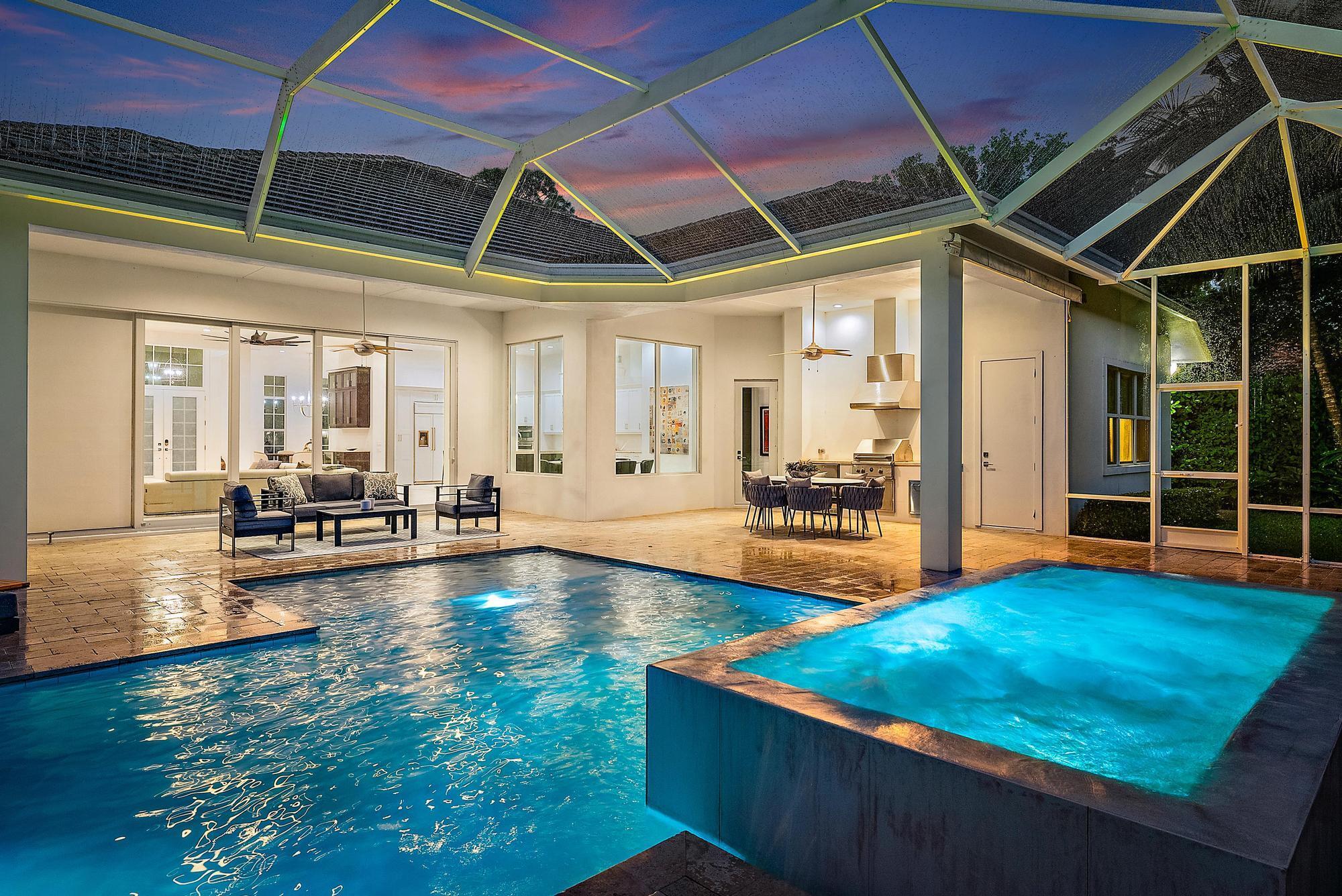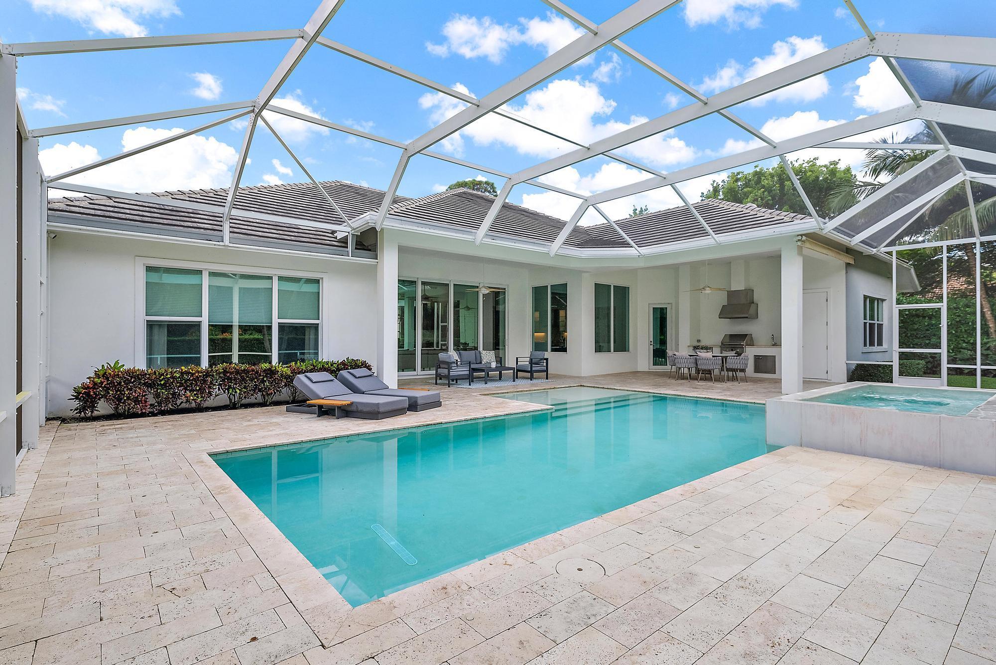 Built in 2015 and offering one of the newest constructions in Ibis, this custom Puzzitiello Estate blends modern sophistication with effortless Florida living. Completely elevated by Nevaeh Interiors, this showplace has been enhanced with new upscale finishes, flooring, and features. Also available completely furnished, all the modern and comfortable designer pieces can convey to the new owner--a brilliant mix of Modani Italian Modern and Arhaus Classic Flare Furniture. Designed around a dramatic great-room floor plan, this 4BR/4.5BA plus large office/den home delivers privacy, style, and a true turnkey experience within the award-winning Club at Ibis.