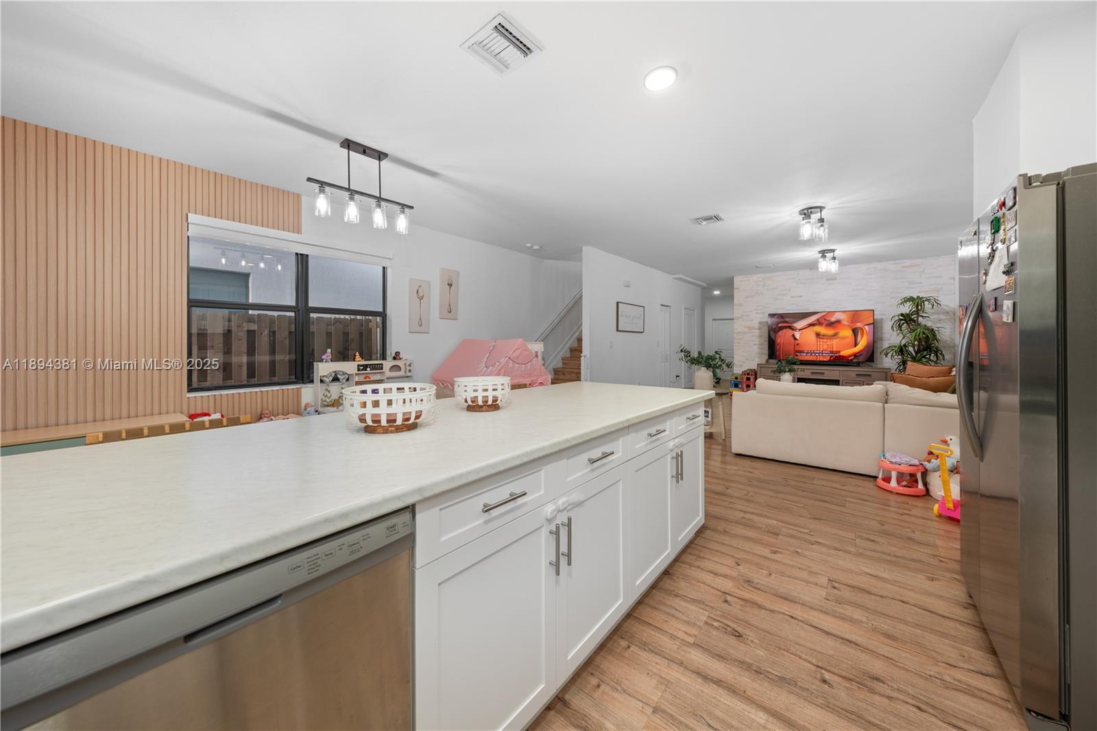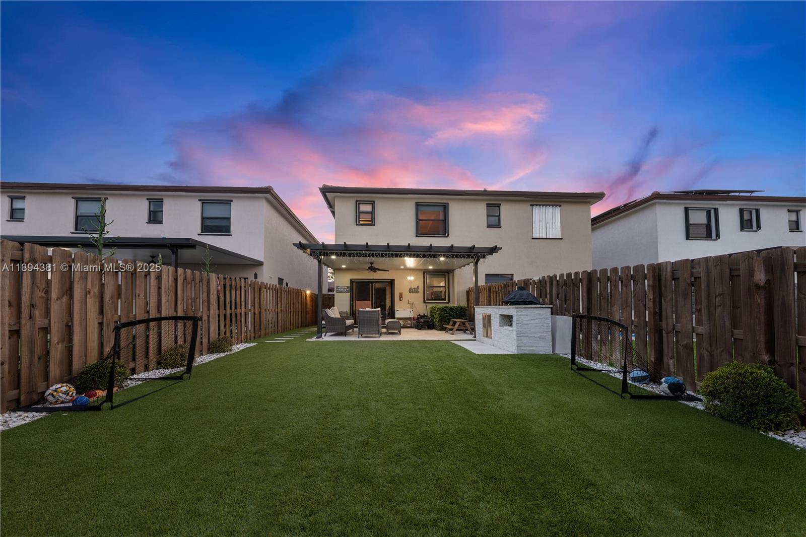 Welcome to this beautiful & well-maintained 3-bedroom, 3-bathroom home that truly has it all! From the moment you arrive, you’ll notice the care and upgrades throughout. The home features accordion shutters for peace of mind, gutters & custom closets in every bedroom. Enjoy clean, refreshing water with the alkaline water filtration system that services the entire house. Both floors have stylish laminate flooring that gives the home a warm and modern feel. The spacious master bathroom has been fully remodeled. Step outside to a stunning backyard that’s perfect for relaxing or entertaining-featuring a beautiful pergola, artificial grass for easy maintenance, & a custom-built grill area ready for weekend barbecues. The private garage also includes a built-in closet for extra storage space.