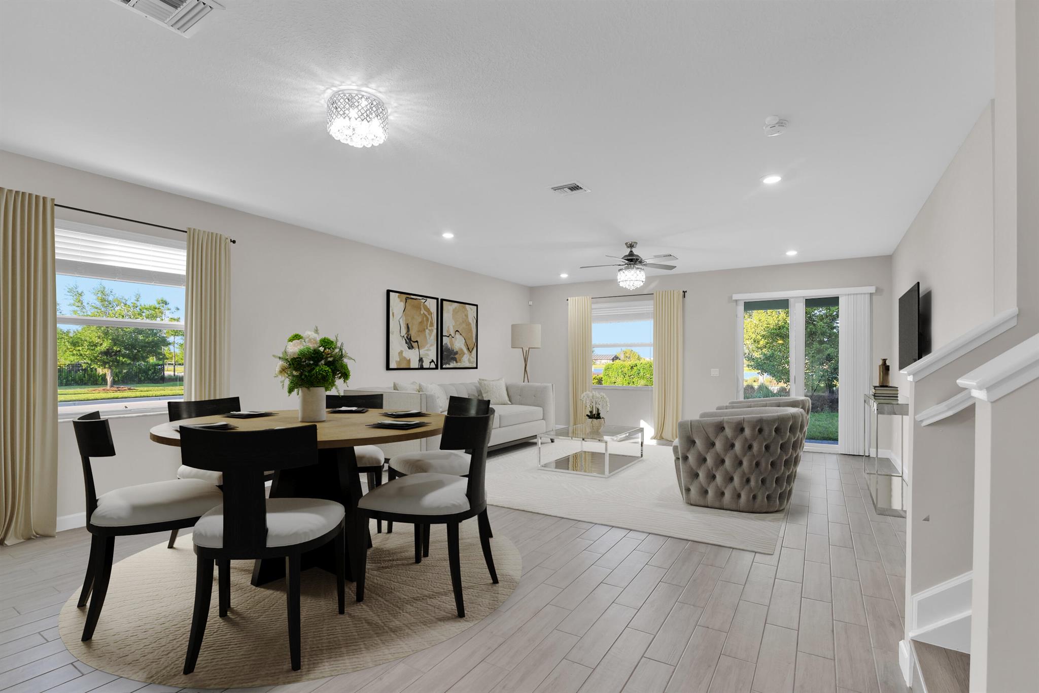 Rare Waterfront Corner Lot (lake views from kitchen, living room and primary bedroom)! This beautifully renovated Holly Model comes with 5 bedrooms (can add 6th) and 3.5 bathrooms in the brand new and family-friendly community of Arden. Perfectly positioned on a spacious corner lot by the lake and the walking trail, this home boasts after-build upgrades and breathtaking deep lake views from Sunrise to Sunset. The oversized lot provides endless possibilities -- design the backyard oasis of your dreams, add a pool, outdoor kitchen, or a custom playground. Use the existing design plans or make it your own - our Professional Interior Design is happy to assist.