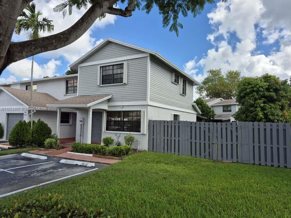 Enjoy this bright and spacious corner unit! This 2 story, 2 bedroom, 1.5-bath townhouse is located in the heart of Pembroke Pines, within a quiet, family-friendly community. Enjoy breathtaking sunsets from the huge screened-in patio ideal for entertaining overlooking a large, fenced-in yard with a large mango tree. Recent upgrades include a new roof with gutters, newer AC for added peace of mind. All bedrooms are located upstairs for added privacy. Upstairs bathroom recently renovated. Hurricane accordion shutters. Community amenities include a clubhouse, sparkling pool and tennis courts. Association includes cable TV and internet. Conveniently located near top-rated shopping, fine dining and hospital.