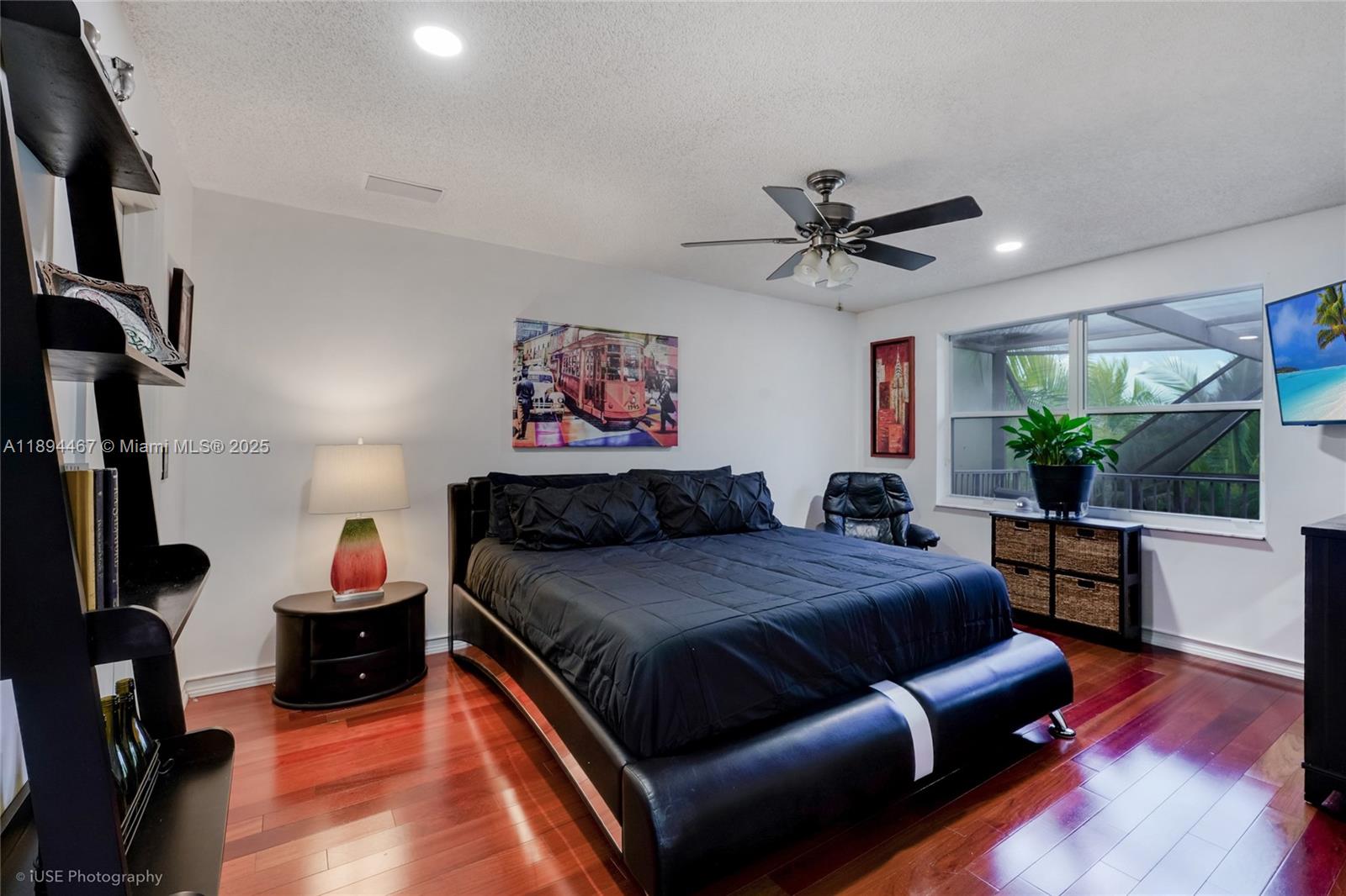 Spectacular lakefront/Pool home with New roof, Impact windows /doors. Welcome to luxury thiis beautiful abode with gorgeous interior offers hard wood floors and tile throughout living areas. The spacious kitchen features custom cabinets, granite counter tops,SS appliances and built-in wall oven .This kitchen is a chef's dream! Primary suite includes sitting area, his/hers walk-in closet, dual sinks, spa tub & private balcony over looking the pool.This oasis features a salt water pool along with an outdoor kitchen w/built in grill. Great for entertaining. Property is located in prestigious gated community of Sliver Lakes. A-rated schools close to shopping and highways.