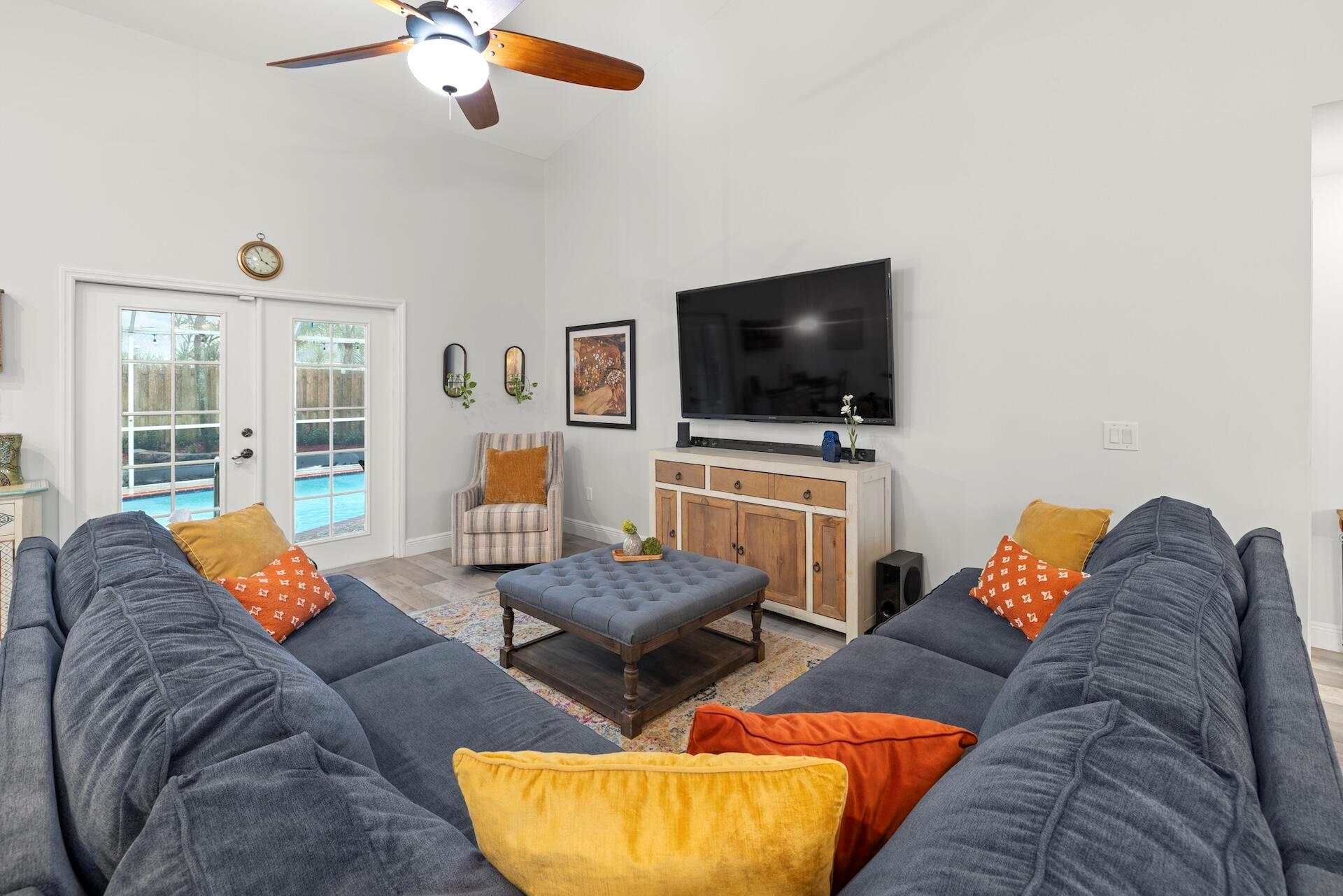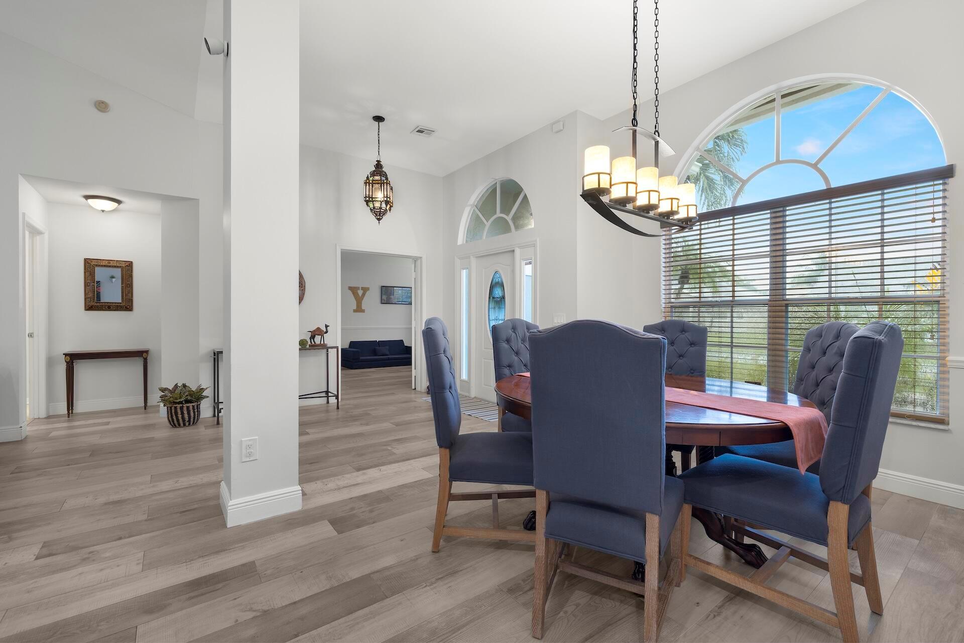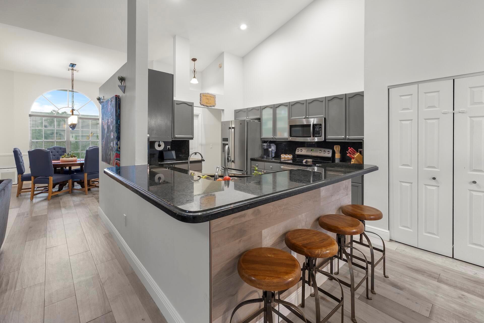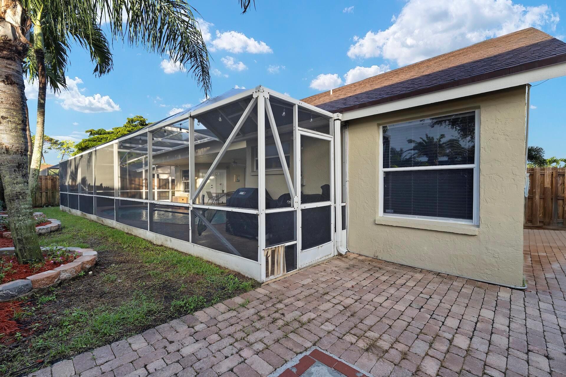 Beautiful 4 bedroom pool home w/ huge bonus room/5th bedroom in gated Meadowland Cove. Gorgeous wood look tile in living areas, separate dining & breakfast nook. Kitchen features granite counters tops, pantry,new dishwasher, & wood cabinets. Primary bedroom retreat has walk in closet, soaking tub, walk in shower, plus dual sinks. Other features include cabana bath,newer water heater (large capacity) w/heat pump to primary bedroom, transferable AC service contract , hurricane impact garage doors.Screened pool w/privacy fence & lush landscaping. Decorative concrete decking around pool patio & tiled front walkway on quiet cul de sac lot. The community features a clubhouse w/heated community pool & boat ramp. Perfect location in the heart of Wellington & Equestrian Venues. ''A'' rated schoo