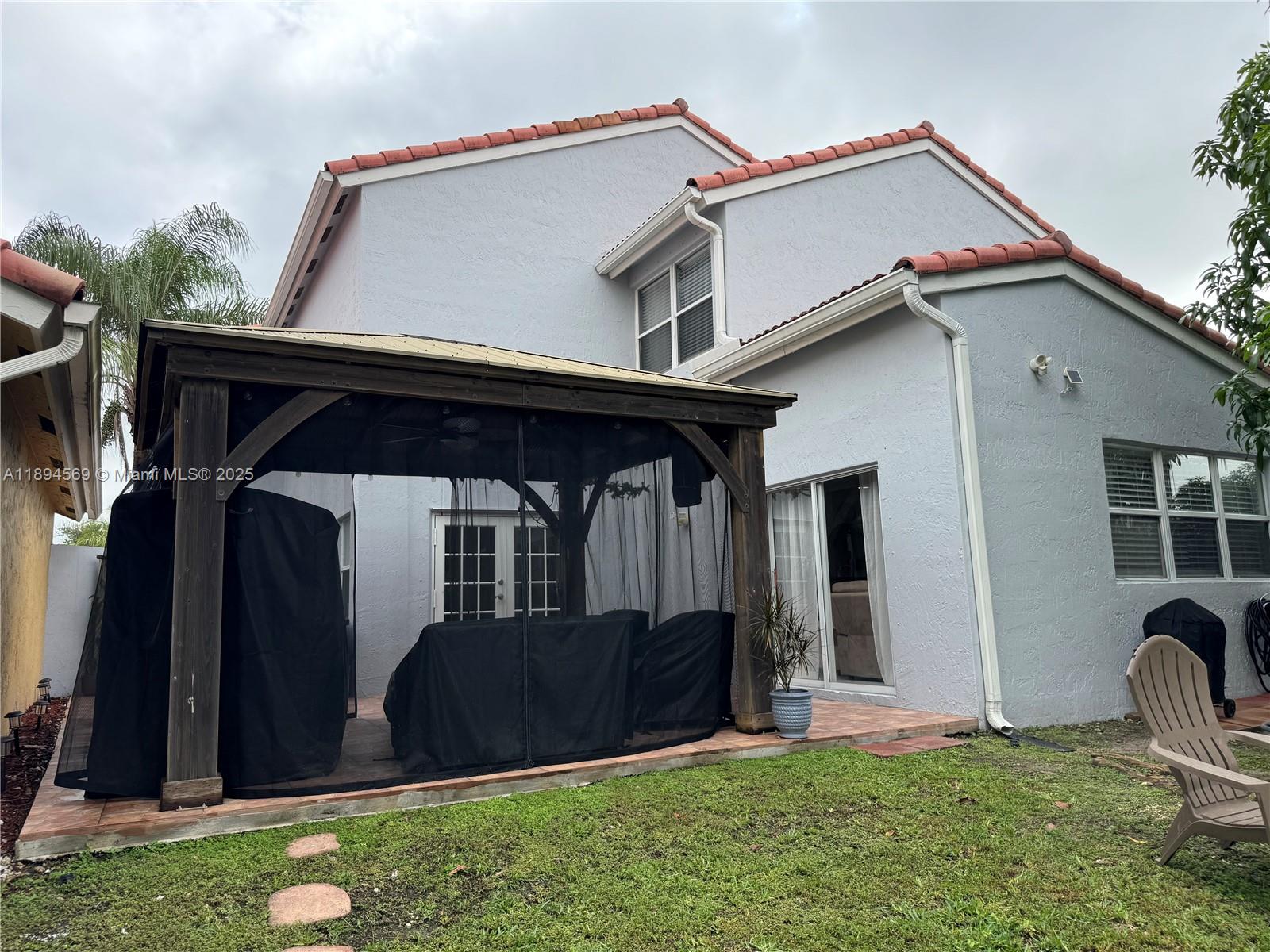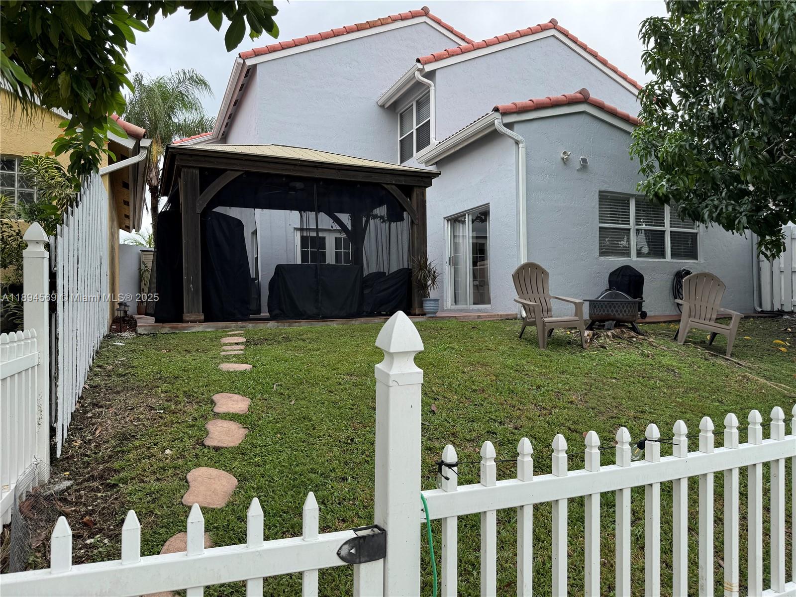 This Move in ready, 4-bedroom 2.5 bath home offers Bright and Airy floor plan with waterfront views from Florida Room, kitchen and master bedroom. Located in sought out Huntington area, surrounded by A+ rated schools with easy access to I-75 and Turnpike. Near great shopping malls like the Pembroke Gardens Open Mall and others. Lots of Parks, Lakes and walking paths. Situated on a private street with no back yard neighbors. Enjoy your time with family & friends at rear Gazebo which includes a bubbling Hot Tub! Open kitchen features granite counter tops, new cabinets & stainless-steel appliances. Fully remodeled baths! No Flood zone X, no flood insurance required. Easy to show.