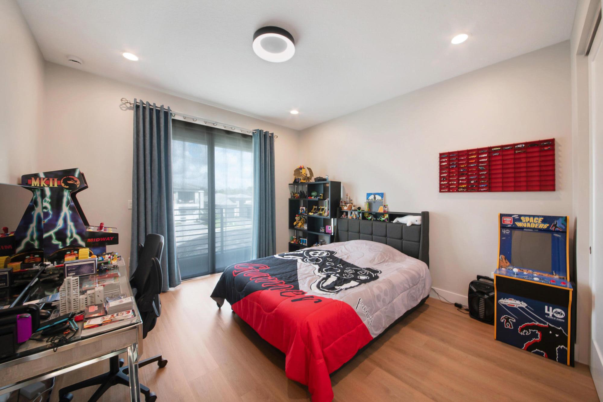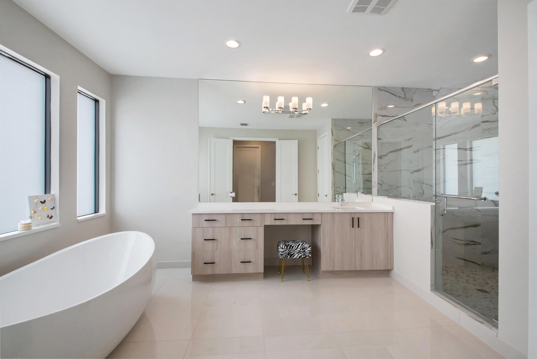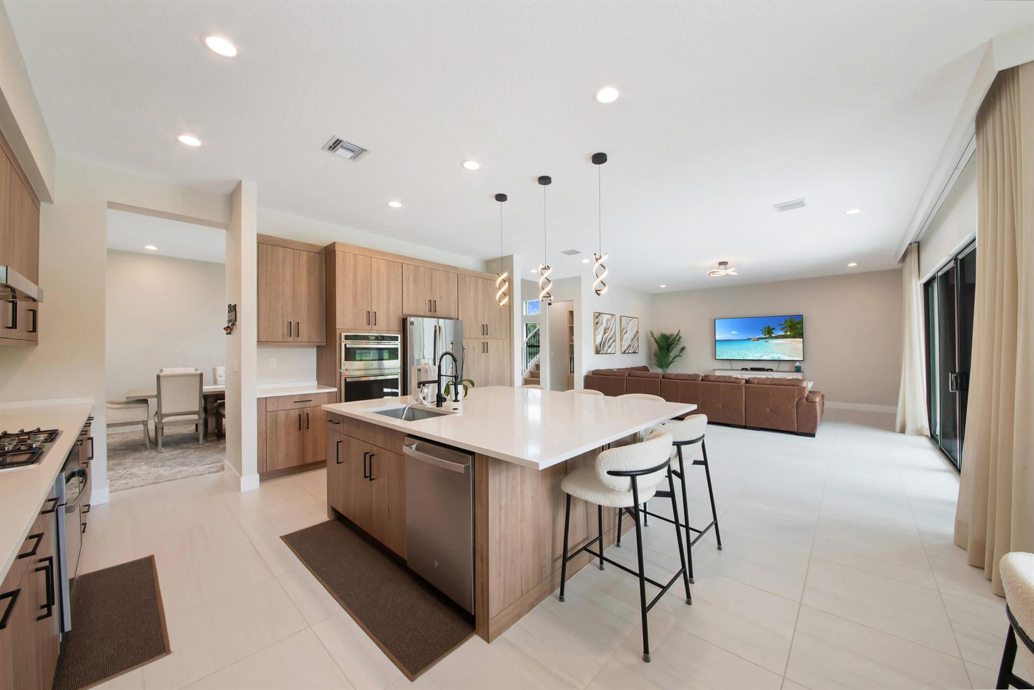 Stunning 5BR/7BA Polynesian model in elite Lotus Palm, built in 2024 on an oversized corner cul-de-sac lot with no neighbor on one side. Enjoy a custom saltwater pool & spa with automation, Turkish marble deck, and serene lake views from your fenced backyard oasis. Inside features a custom illuminated accent wall, modern chandeliers and luxury vinyl floors throughout. Each bedroom has its own bath and custom closet. The primary suite offers his & her bathrooms and two walk-in closets- oversized and fully customized. The chef's kitchen includes premium gas appliances, custom wood cabinets, and a massive island. Resort-style clubhouse with restaurants, bars, tennis, pickleball, indoor basketball & social activities. A+ schools, close to shopping & dining.
