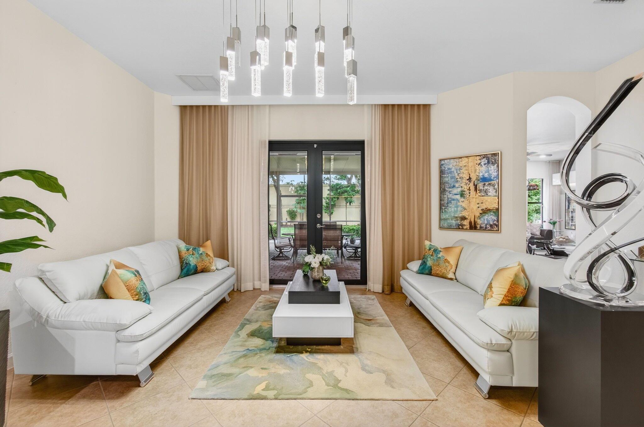 Located in the beautiful Casa Bella community in the city of Delray Beach, 8137 Ferentino Pass invites residents with its impeccable charm and state-of-the-art amenities. Reflective of the vast Florida skies, the elegant exterior is neatly complemented by a generous, large patio, screened and covered for optimal privacy and enjoyment. This outdoor area offers extensive space, perfect for those considering the installation of a pool for endless fun under the sun.The home delivers a significant advantage with a large, two-car garage, providing ample space for vehicle accommodation or additional storage should need arise. As you step inside, the richness of the architectural details can immediately be noticed.