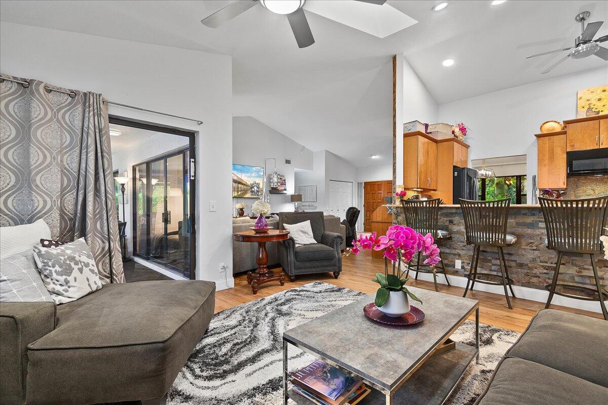 Rare opportunity to own in one of Jupiter's most desirable neighborhoods! Set on a quiet street, this property combines privacy with a warming community feel. This 3-bed, 2-bath home with relaxing private hot-tub/spa offers the perfect balance of comfort, style, and true Florida living. With CBS construction and a new metal roof (2024), you'll be enjoying peace of mind for years to come. The split floor plan provides privacy between the primary and guest bedrooms. The vaulted ceilings enhance the spacious layout, and the open living areas flow effortlessly from room to room. Stepping to the screen-enclosed patio/ spa area creates the ultimate indoor-outdoor lifestyle and a year-round retreat under the Florida sun. Accordion shutters throughout provide comfort and peace of mind too!