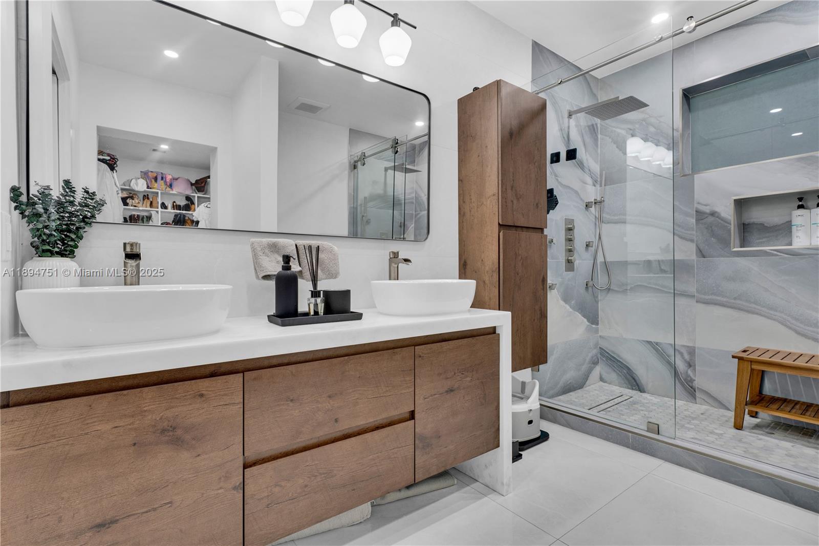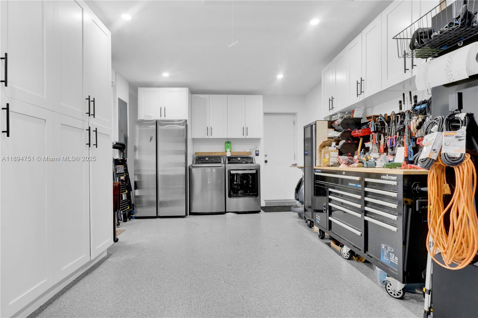 Elegant Family Retreat with Saltwater Pool and Designer Finishes, Truly turn-key and tastefully renovated!! 2,417Sqft Liv. This elegant 4Bath/ 3 Bath ,home offers every upgrade today’s buyers want. Enjoy a resort-style saltwater pool with gas heater, new stucco, gutters, and pool pump (2024). Inside: all new doors, frames, baseboards, recessed lighting, and a custom kitchen with coffee nook, wine chiller, and quartz counters. 4.5-ton A/C (2017) with new ducts, upgraded electrical panel, and natural gas for efficiency. Renovated garage with epoxy floors, custom cabinets, app-controlled door, and finished attic. Two-zone sprinkler system on well water, barrel tile roof, two sheds, and rear gate for boat/RV. Move-in ready with luxury, comfort, and functionality.