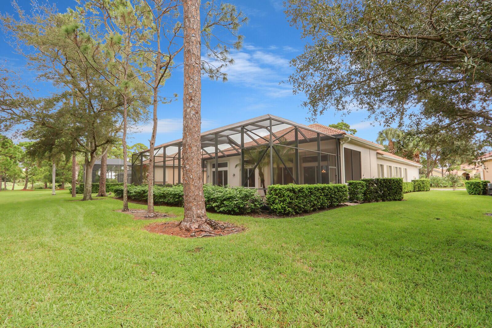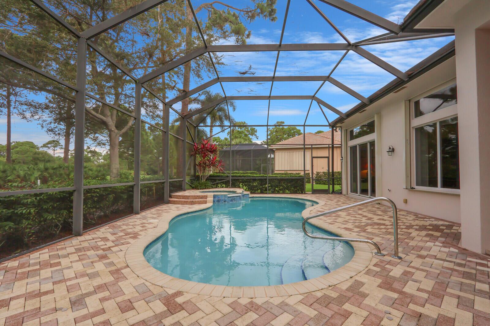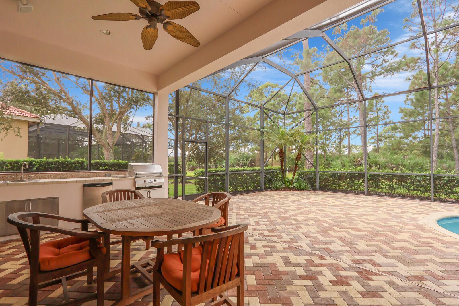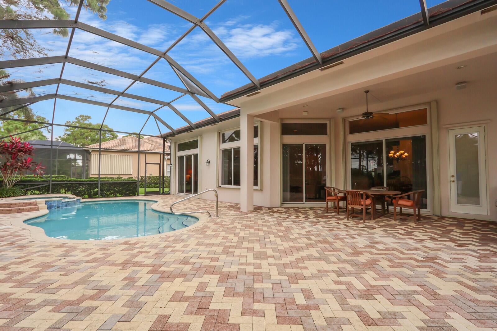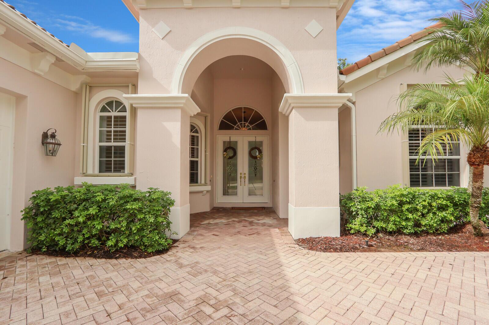 PERFECTLY POSITIONED ON THE GOLF COURSE! Exquisite 3-bedroom plus den in desirable PGA Village. This 2,700 sq ft residence features a sought-after great room floor plan with 3 ensuite-bedrooms & powder room. Enjoy elegant finishes including white cabinetry, granite countertops, SS appliances, wood detailing & a custom bar. The outdoor oasis offers a resurfaced pool & spa (2024), summer kitchen & covered lanai-ideal for entertaining. Meticulously maintained with newer A/Cs, whole house generator & accordion shutters, nearly all major systems replaced within 5 years. Freshly painted inside & out, offered partially furnished-move-in ready with comfort, style & peace of mind! PGA Village is a golfer's paradise with 4 golf courses & the Island club with pool, fitness, pickleball & more!