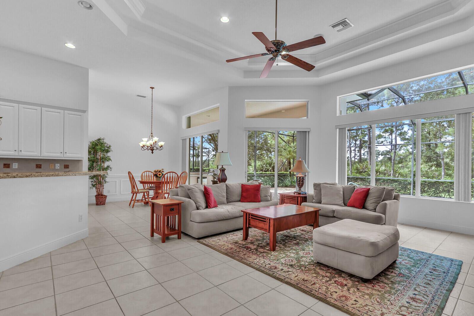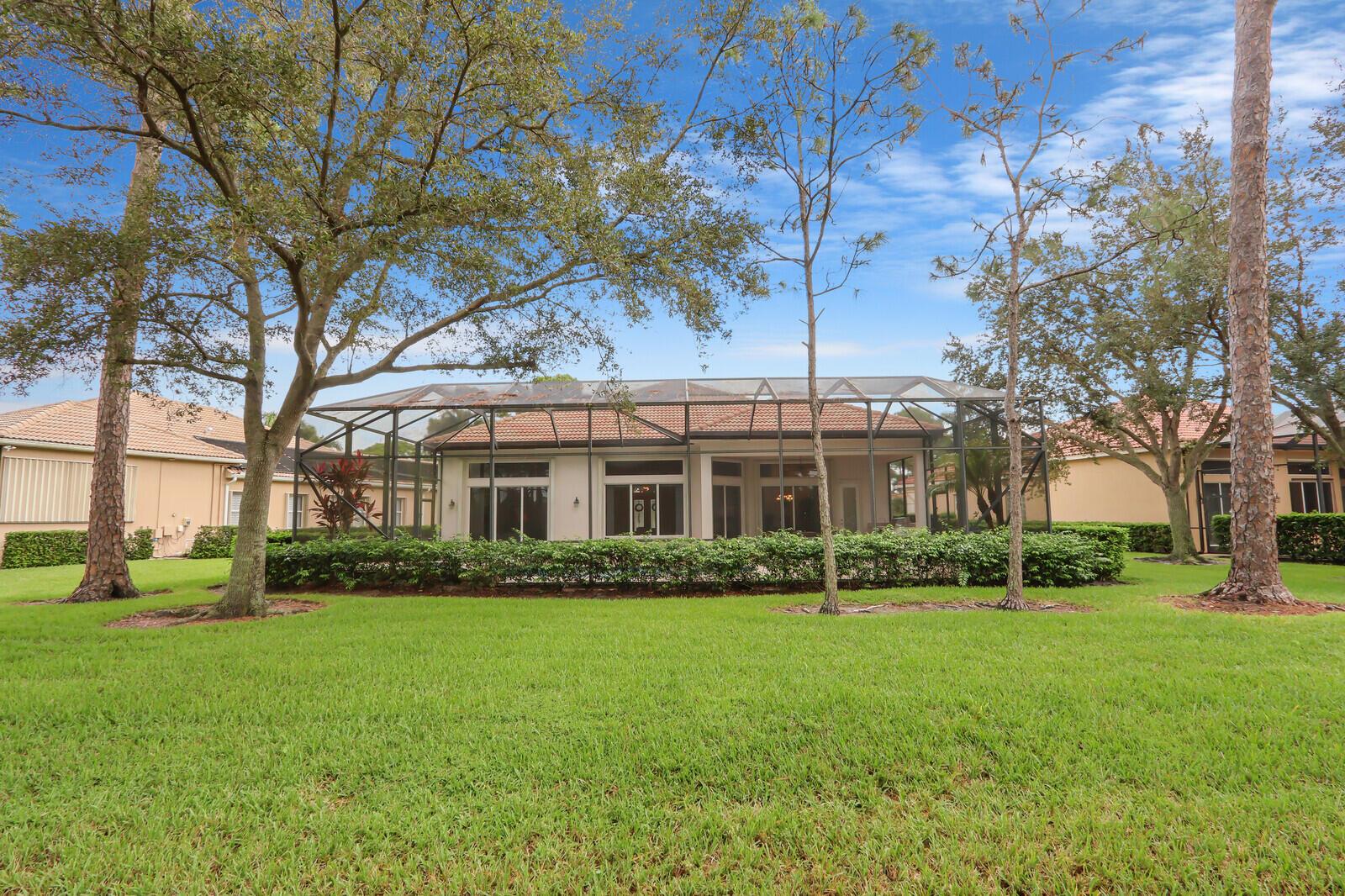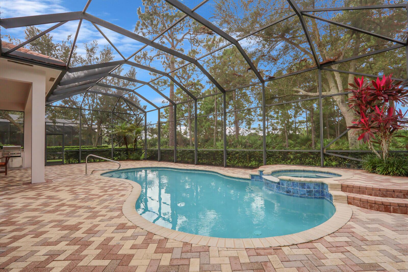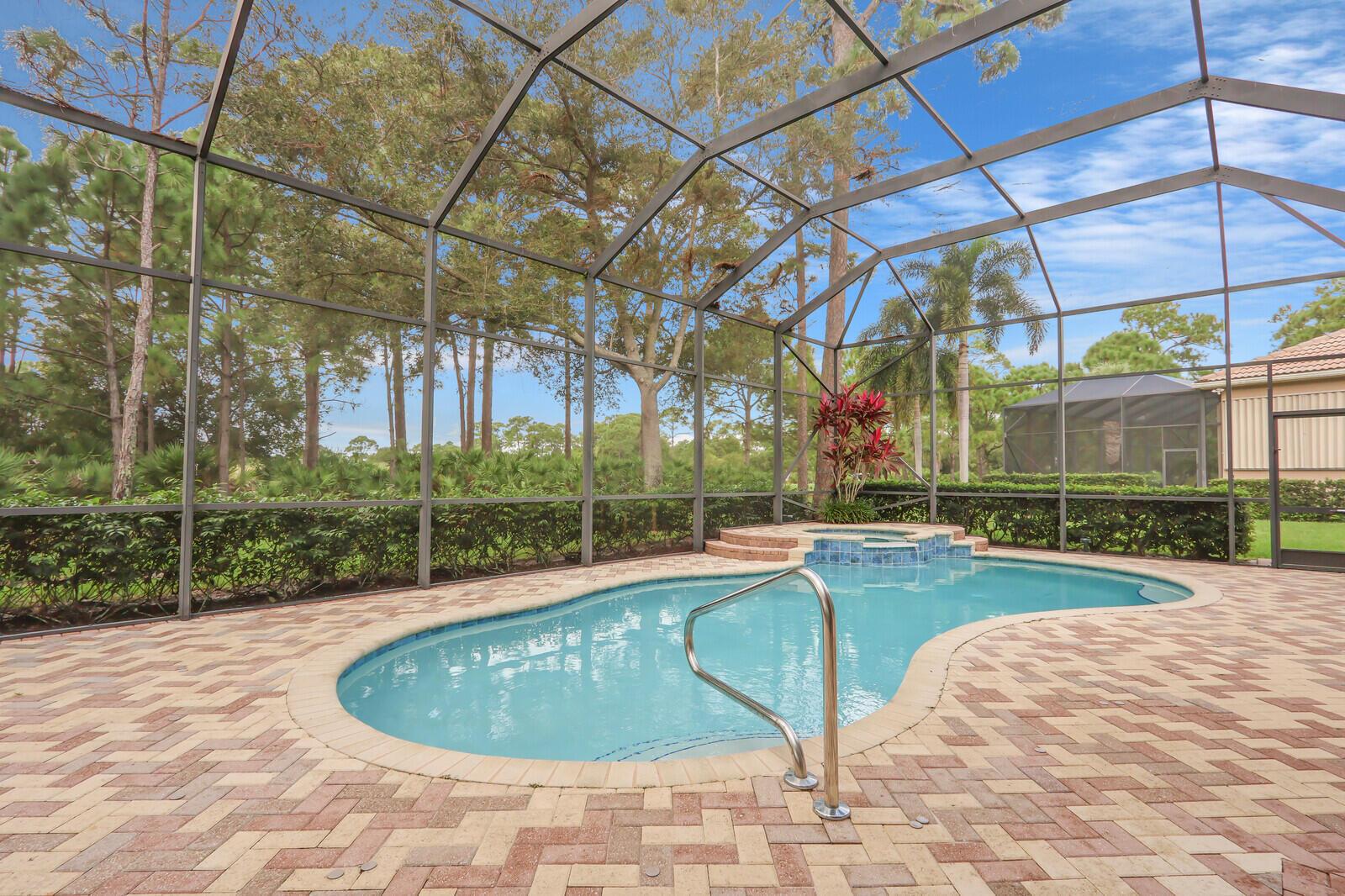 PERFECTLY POSITIONED ON THE GOLF COURSE! Exquisite 3-bedroom plus den in desirable PGA Village. This 2,700 sq ft residence features a sought-after great room floor plan with 3 ensuite-bedrooms & powder room. Enjoy elegant finishes including white cabinetry, granite countertops, SS appliances, wood detailing & a custom bar. The outdoor oasis offers a resurfaced pool & spa (2024), summer kitchen & covered lanai-ideal for entertaining. Meticulously maintained with newer A/Cs, whole house generator & accordion shutters, nearly all major systems replaced within 5 years. Freshly painted inside & out, offered partially furnished-move-in ready with comfort, style & peace of mind! PGA Village is a golfer's paradise with 4 golf courses & the Island club with pool, fitness, pickleball & more!