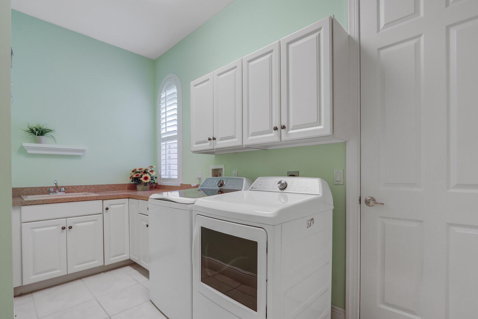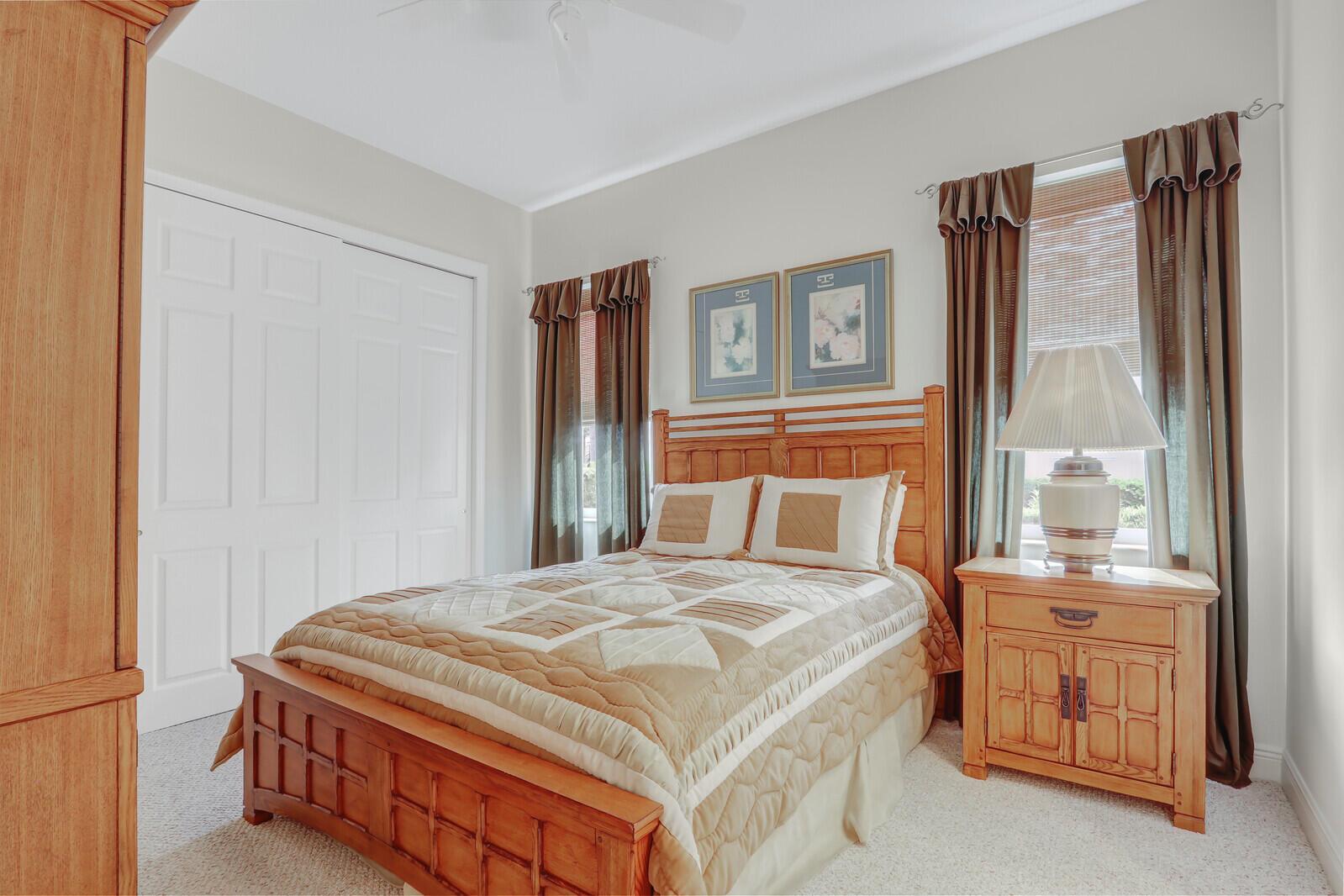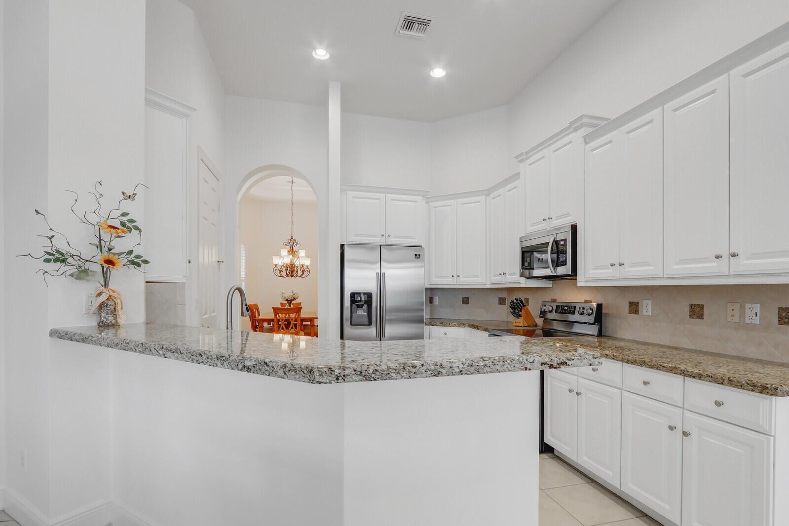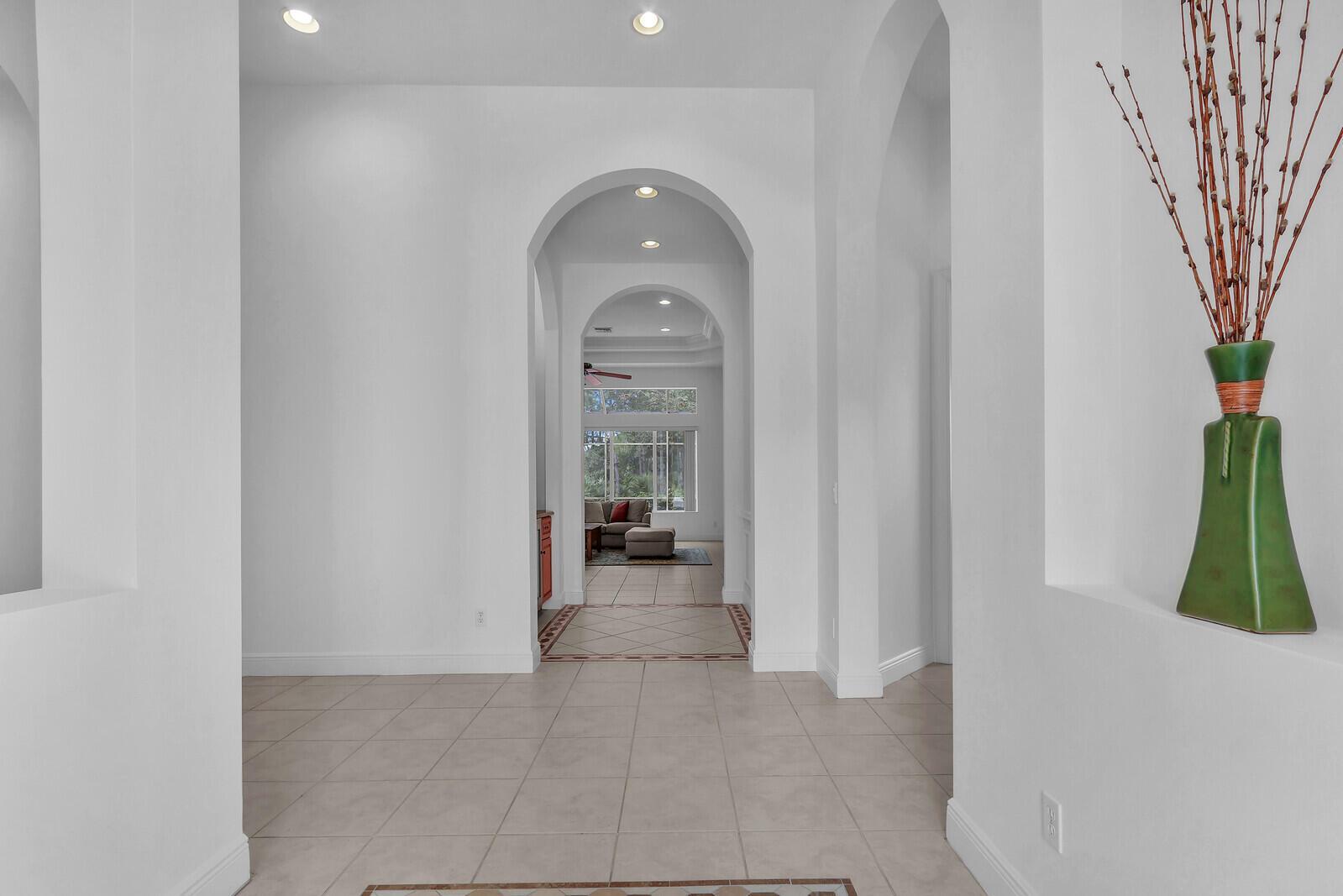 PERFECTLY POSITIONED ON THE GOLF COURSE! Exquisite 3-bedroom plus den in desirable PGA Village. This 2,700 sq ft residence features a sought-after great room floor plan with 3 ensuite-bedrooms & powder room. Enjoy elegant finishes including white cabinetry, granite countertops, SS appliances, wood detailing & a custom bar. The outdoor oasis offers a resurfaced pool & spa (2024), summer kitchen & covered lanai-ideal for entertaining. Meticulously maintained with newer A/Cs, whole house generator & accordion shutters, nearly all major systems replaced within 5 years. Freshly painted inside & out, offered partially furnished-move-in ready with comfort, style & peace of mind! PGA Village is a golfer's paradise with 4 golf courses & the Island club with pool, fitness, pickleball & more!