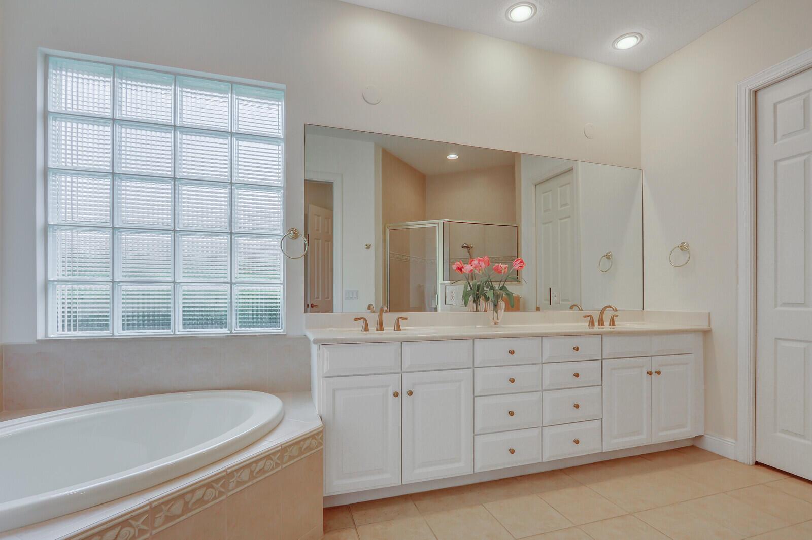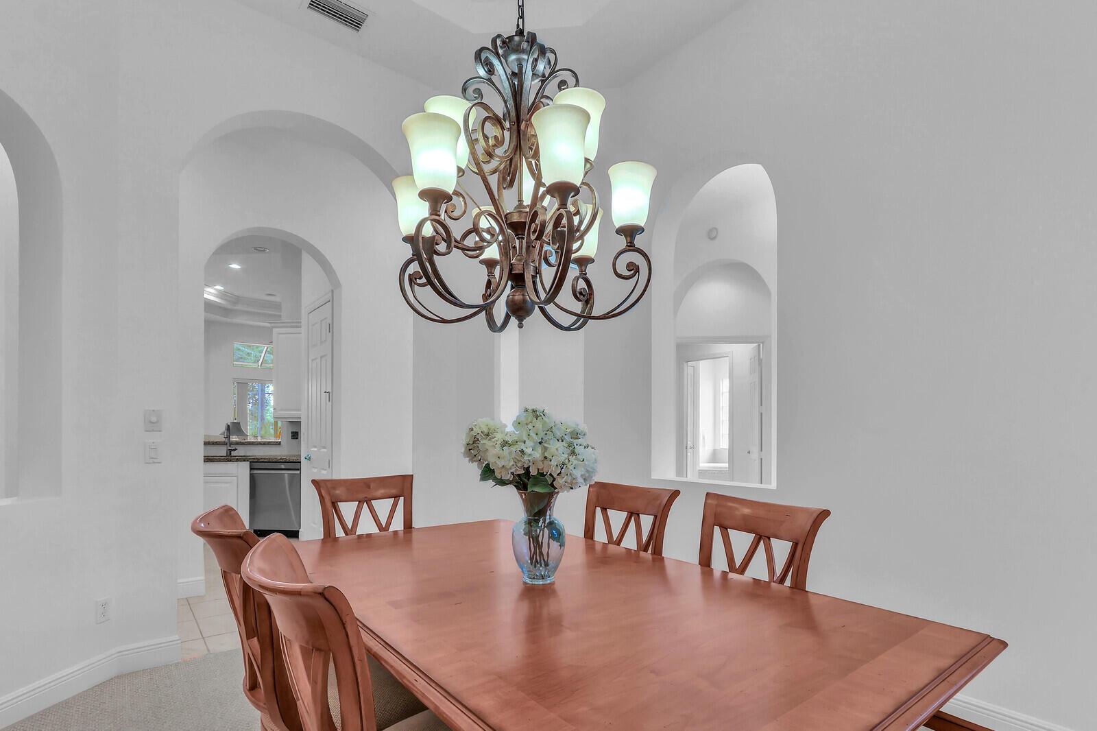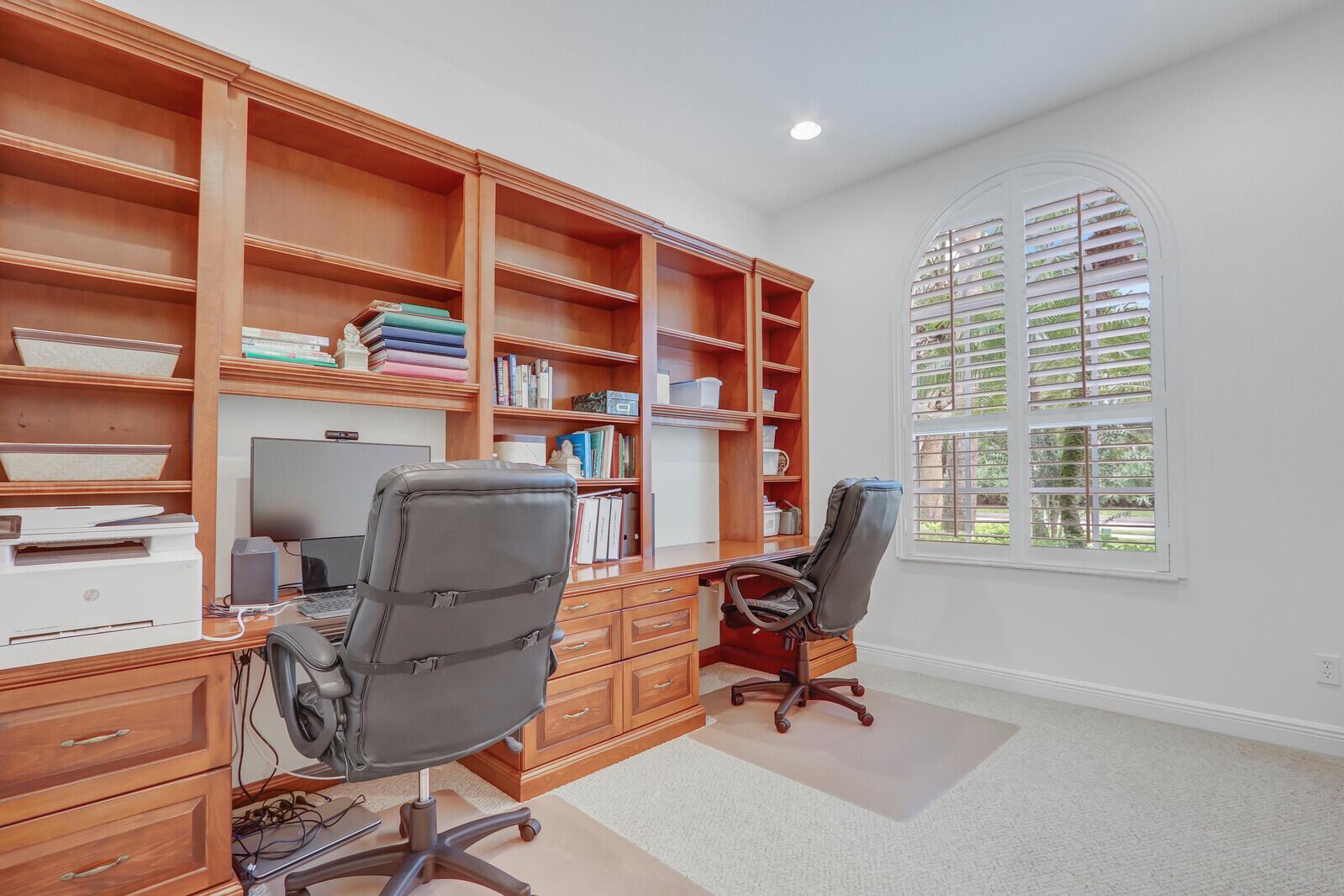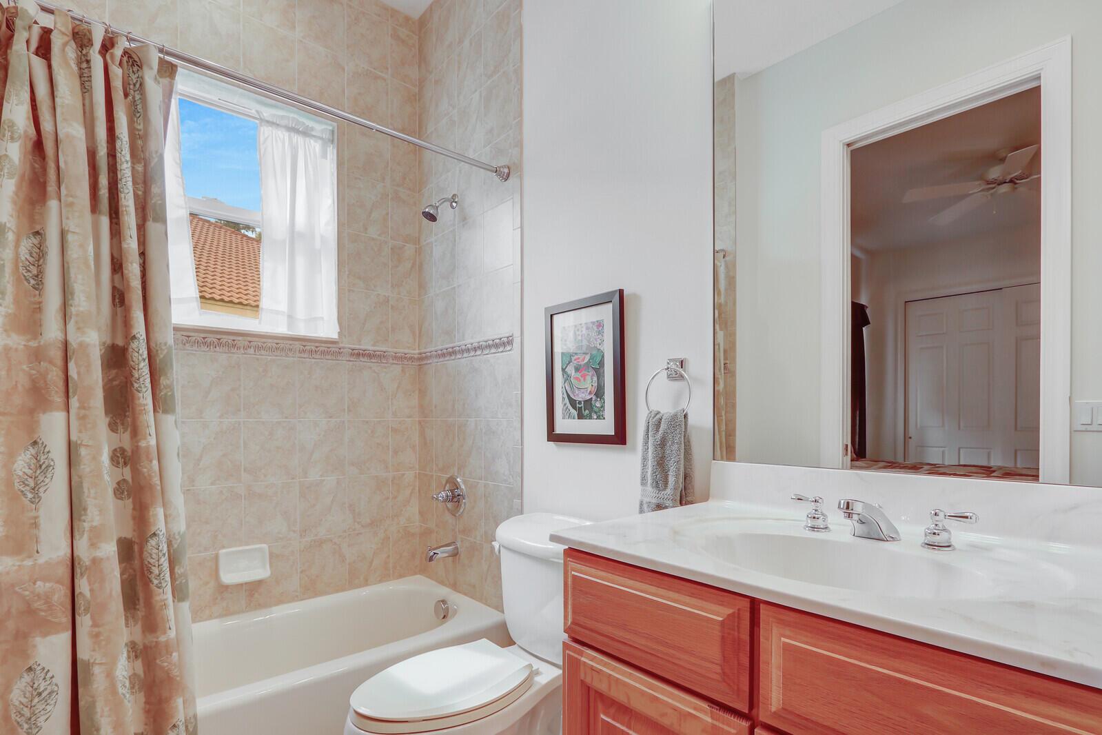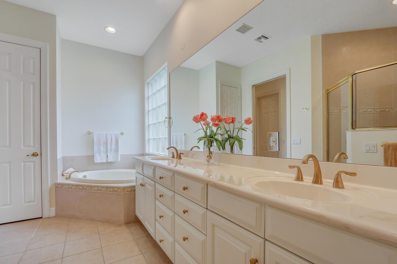 PERFECTLY POSITIONED ON THE GOLF COURSE! Exquisite 3-bedroom plus den in desirable PGA Village. This 2,700 sq ft residence features a sought-after great room floor plan with 3 ensuite-bedrooms & powder room. Enjoy elegant finishes including white cabinetry, granite countertops, SS appliances, wood detailing & a custom bar. The outdoor oasis offers a resurfaced pool & spa (2024), summer kitchen & covered lanai-ideal for entertaining. Meticulously maintained with newer A/Cs, whole house generator & accordion shutters, nearly all major systems replaced within 5 years. Freshly painted inside & out, offered partially furnished-move-in ready with comfort, style & peace of mind! PGA Village is a golfer's paradise with 4 golf courses & the Island club with pool, fitness, pickleball & more!