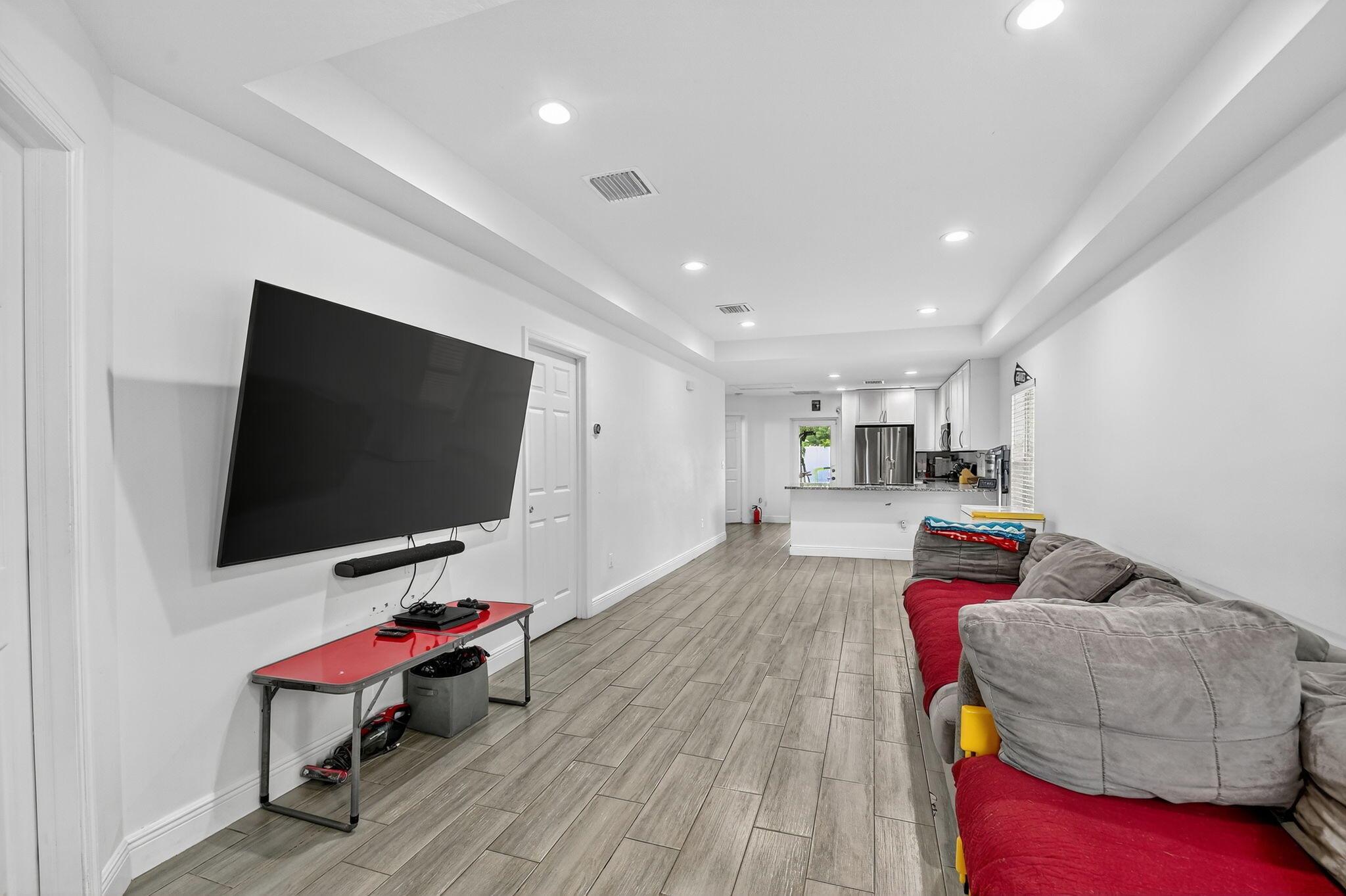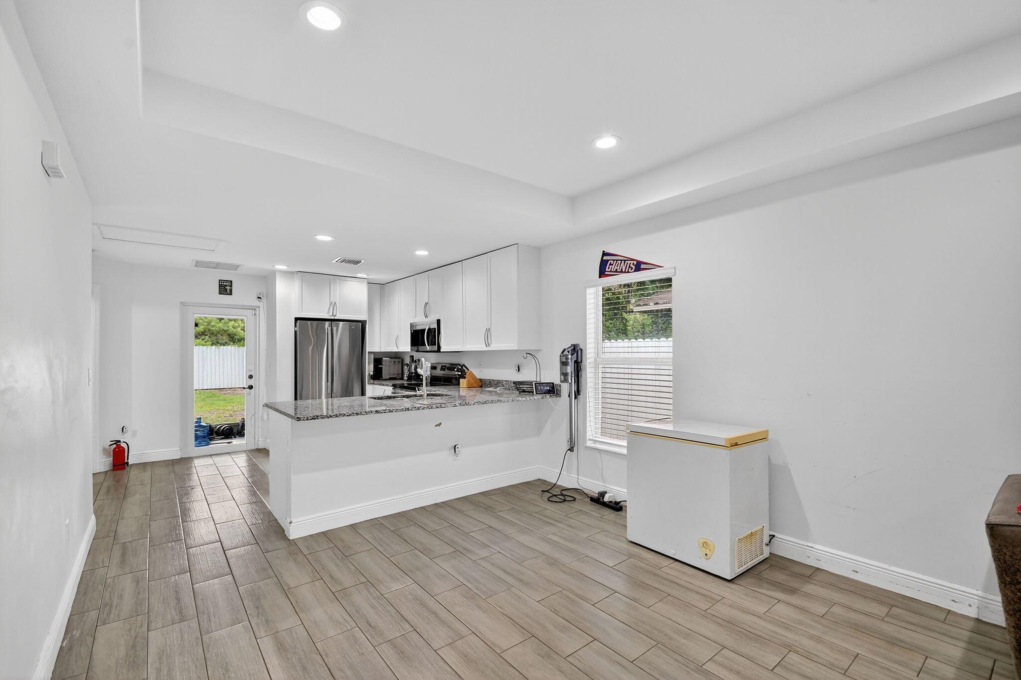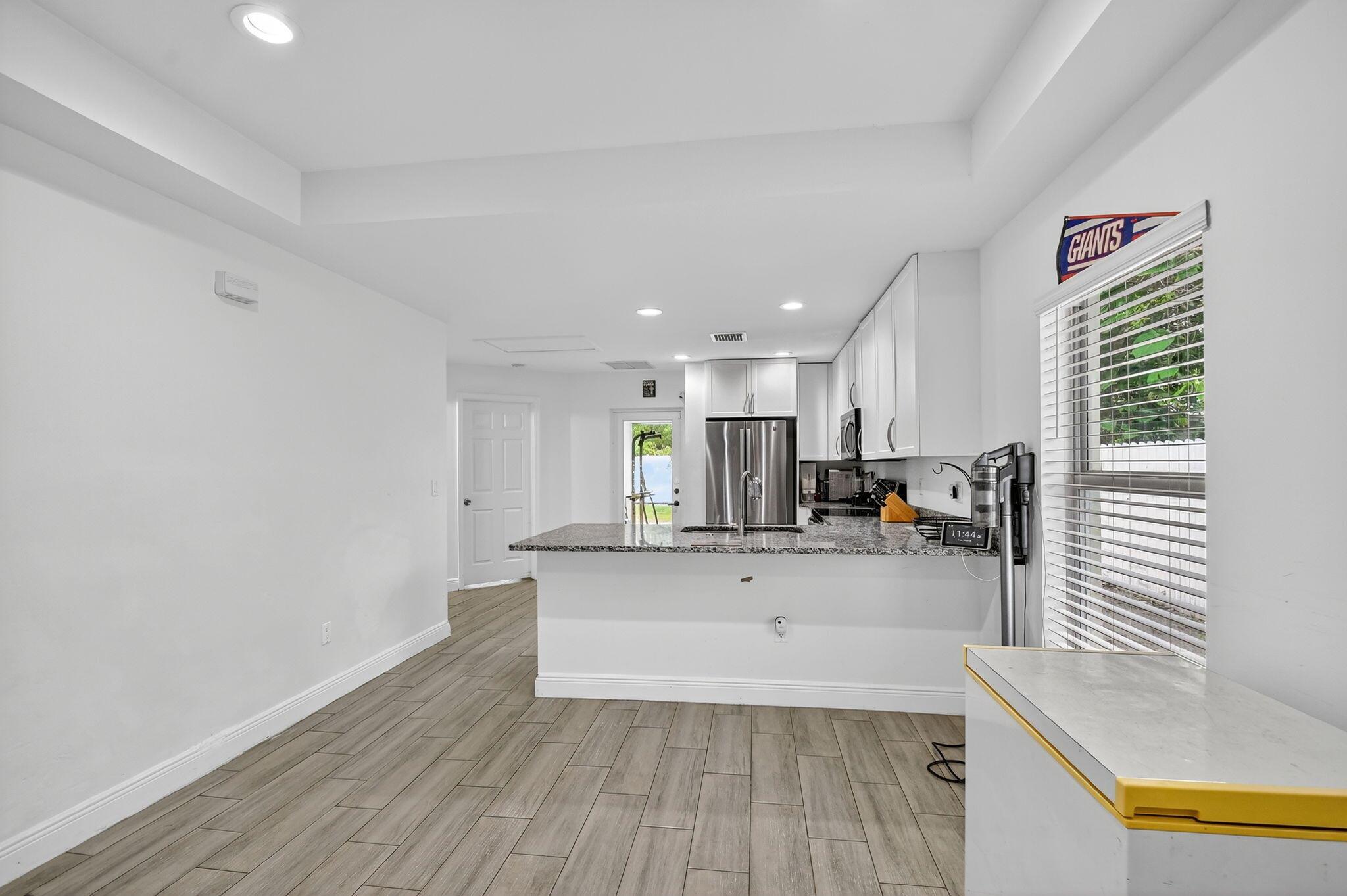 Gorgeous nearly new home (built 2023) featuring three bedrooms and two bathrooms with a bright open layout. The chef's kitchen shines with granite counters and modern finishes. Enjoy the durability and style of wood look tile flooring throughout. Impact resistant windows provide peace of mind and the oversized fully fenced backyard offers plenty of space for outdoor living and room for a pool. No HOA restrictions and just minutes from Downton West Palm Beach and City Place. This property is a true gem! You don't want to miss!
