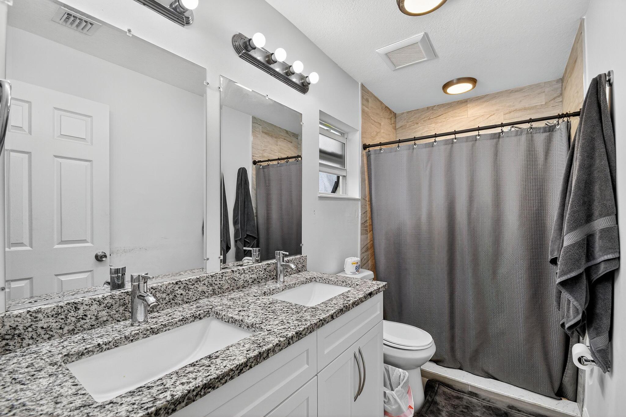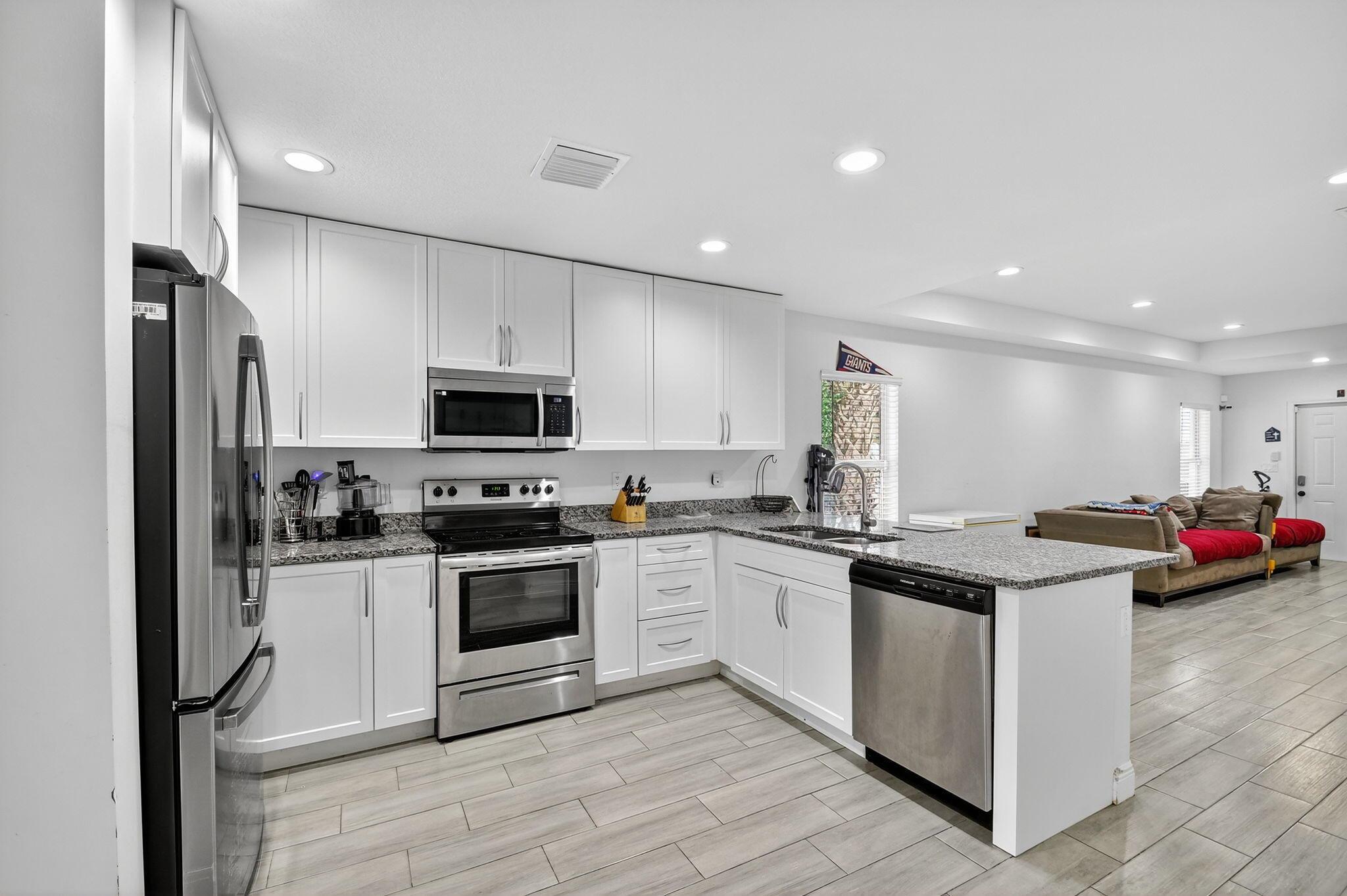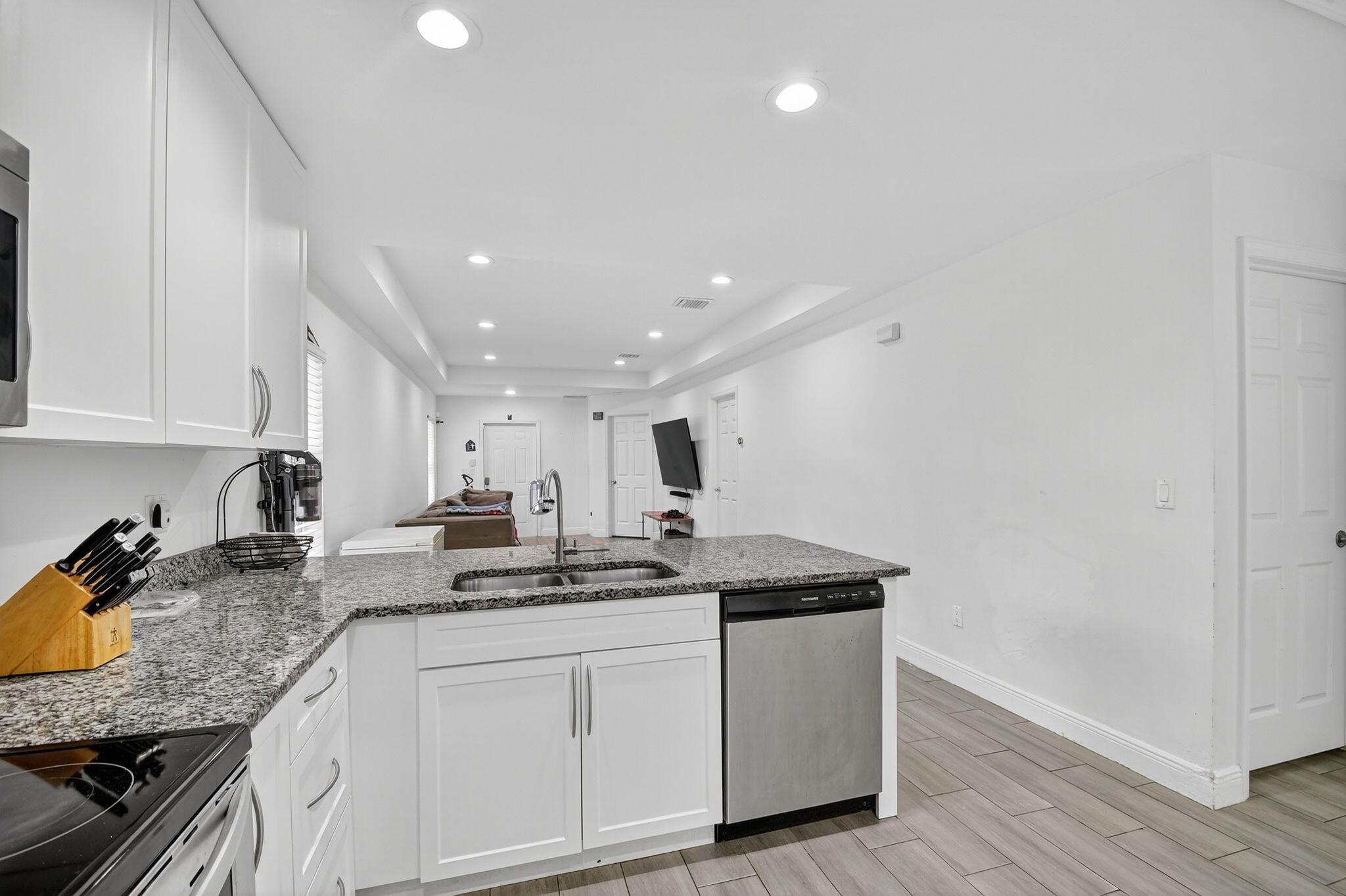 Gorgeous nearly new home (built 2023) featuring three bedrooms and two bathrooms with a bright open layout. The chef's kitchen shines with granite counters and modern finishes. Enjoy the durability and style of wood look tile flooring throughout. Impact resistant windows provide peace of mind and the oversized fully fenced backyard offers plenty of space for outdoor living and room for a pool. No HOA restrictions and just minutes from Downton West Palm Beach and City Place. This property is a true gem! You don't want to miss!