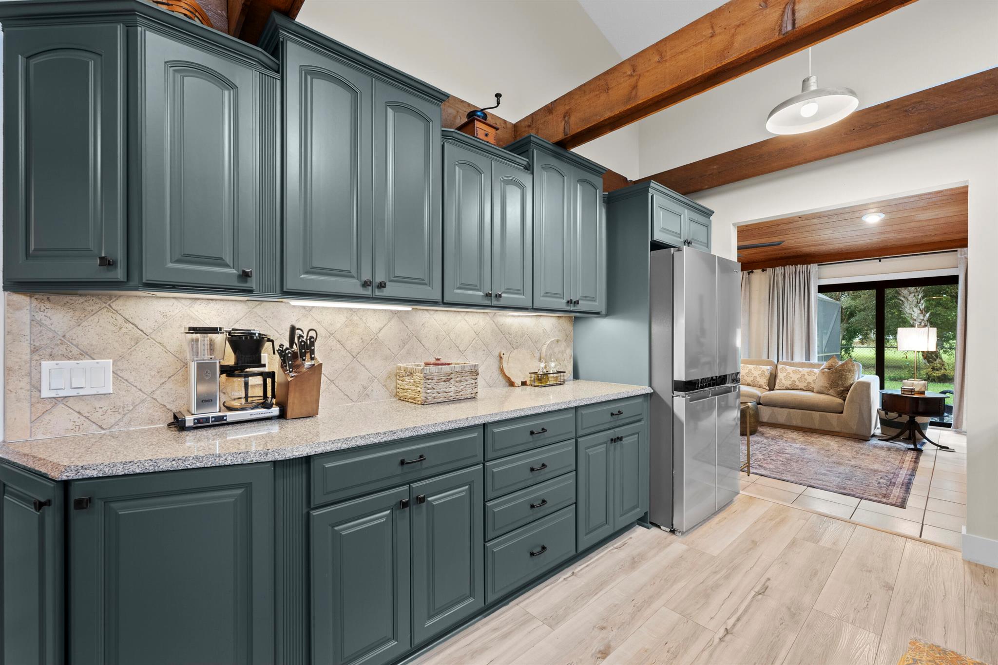 Step into a one-of-a-kind California contemporary masterpiece tucked away in the coveted Gardens Glen community of Palm Beach Gardens. This striking home blends timeless 1980s character with fresh, modern upgrades. Vaulted wood ceilings, dramatic exposed beams & walls of sliding glass that flood the space w/ light & open seamlessly to a private screened pool & covered porch. No rear neighbors, no HOA! Enjoy peace of mind with impact glass throughout, refreshed siding, new interior & exterior paint, 2 brand new A/C units, tankless water heater, new kitchen appliances, new washer/dryer, new pool equipment & attic insulation. Termite bond in place. The oversized garage features epoxy flooring & fresh paint perfect for storage, hobbies, or a sleek home gym.