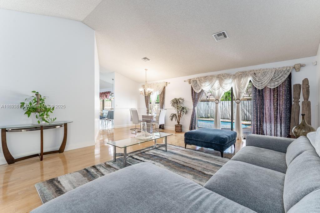 Lovely 4/3.5 Pool home in the heart of Plantation, French doors open in to the grand formal living & dining room areas. Chef's Kitchen offering lots of cabinets, granite counters & stainless steel appliances. Enormous room with breakfast area & a separate bar adjacent to the kitchen. Separate Laundry room with storage space. Primary suite complete with his & her closets, spa like bathroom & sliding doors over looking the pool area. Spacious secondary bedrooms with ample storage & closet spaces. It has several cameras for a surveillance system. Mango, avocado and papaya fruit trees. Excellent location close to shopping. Restaurants, supermarkets, hospital, Sawgrass Mills Mall, Panther's Arena & Highways.
