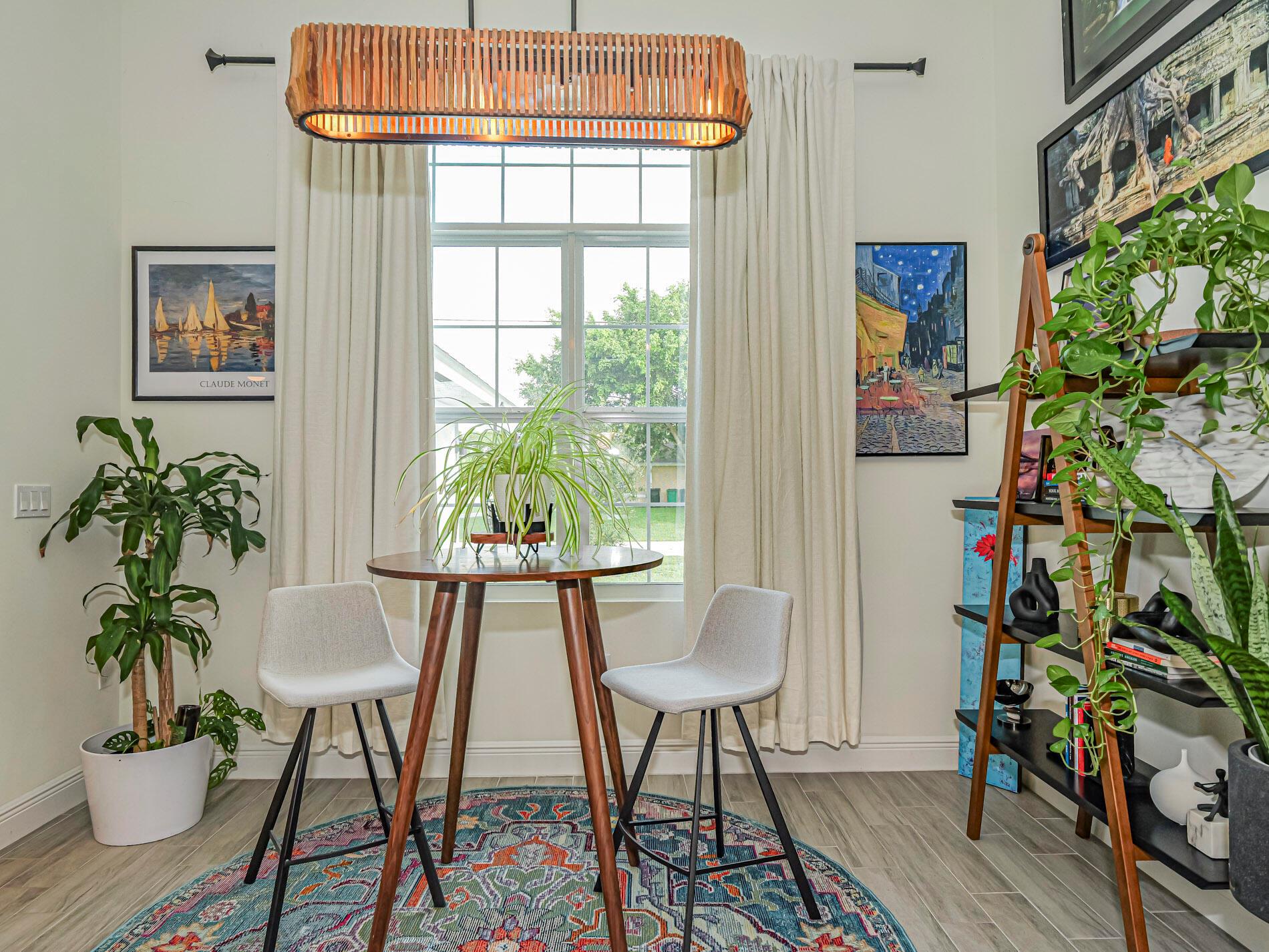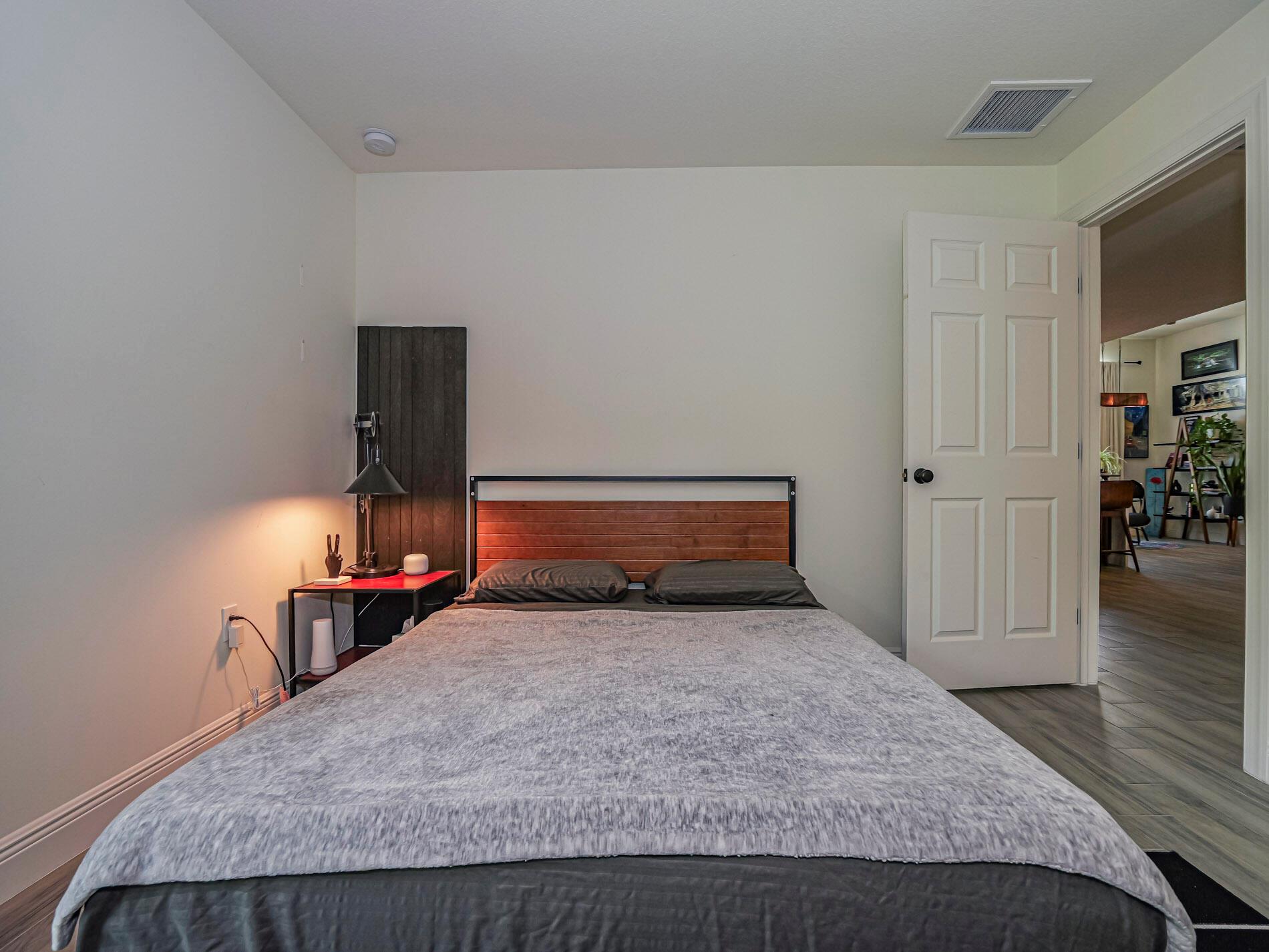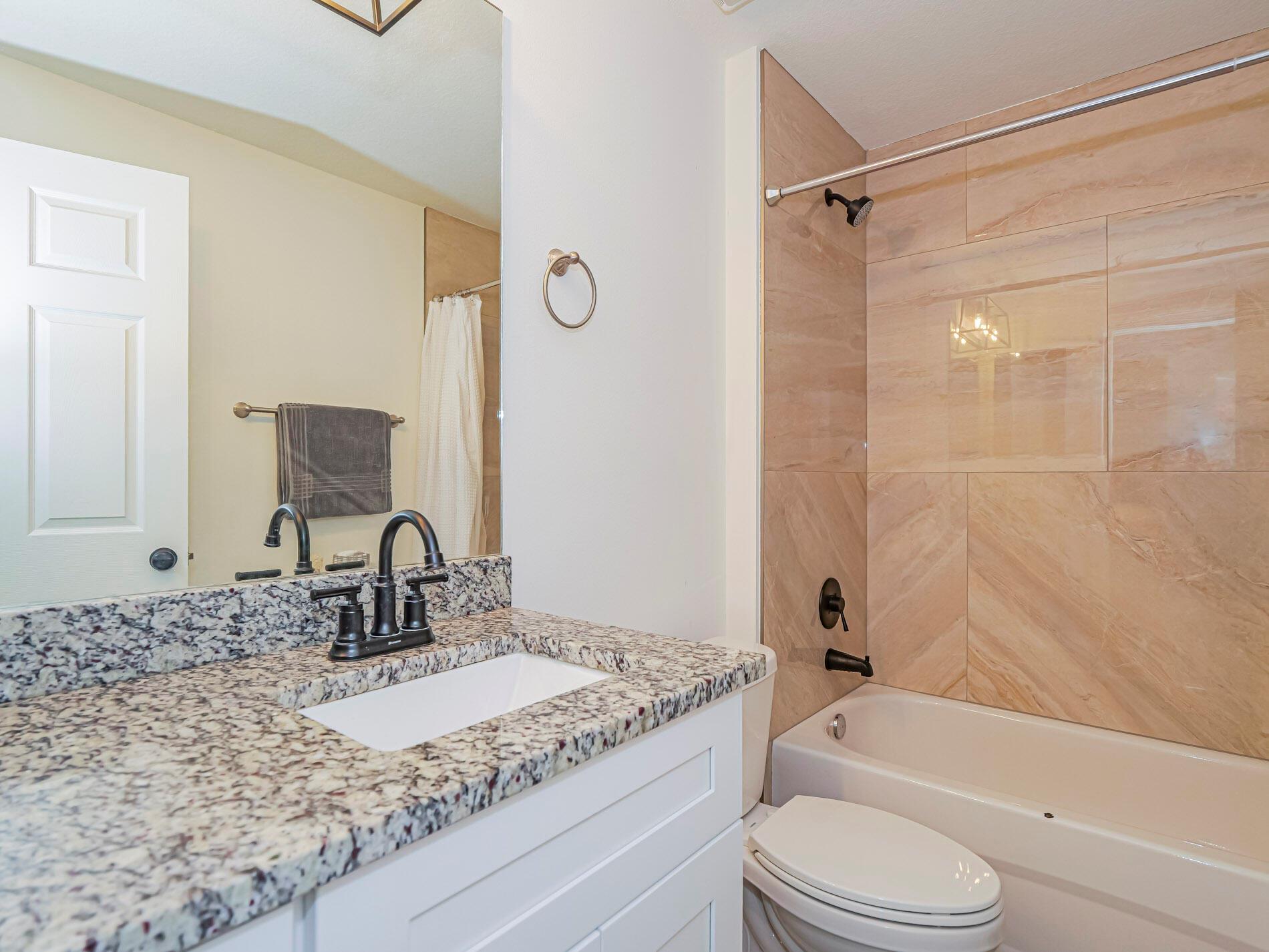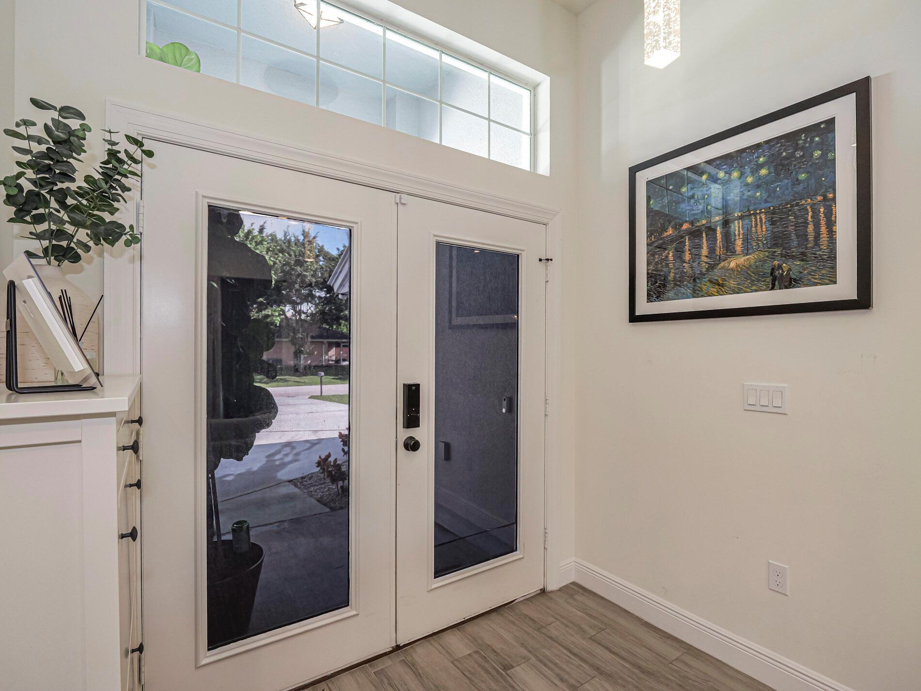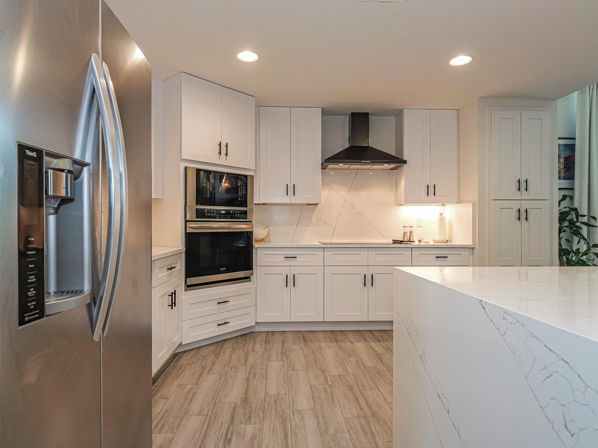 Like new, move-in ready, stunning WATERFRONT home is like an advertisement for HOME & DESIGN! This 3BR/2BA CBS home features a metal roof, impact windows & doors & modern plank wood tile throughout. Enjoy a gorgeous recently renovated chef's kitchen with waterfall quartz countertops, wall oven & microwave plus ample workspace- perfect for entertaining. The open floor plan flows beautifully, offering bright, spacious living areas featuring gorgeous modern light fixtures & accent walls. The split bedroom layout includes guest rooms w walk in closets & beautifully updated bathroom. The owner's suite features a tray ceiling & huge updated en suite w soaking tub. Relax outside on the covered patio w tranquil water & preserve views for ultimate privacy.