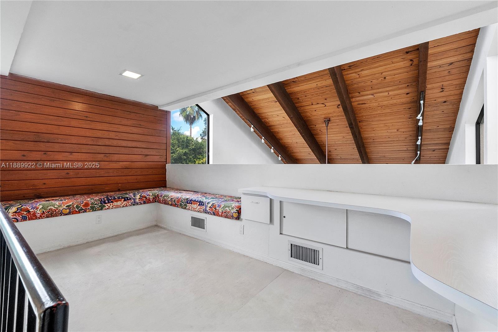 Mid-century modern 4BR/3BA + loft residence in Palmetto Bay, designed by architect Marc Firestone. Encompassing 4,362 total SF, this canal-front gem sits on a quiet cul-de-sac surrounded by majestic oaks and lush landscaping. The home embraces indoor-outdoor living with a central atrium. Vaulted wood-beamed ceilings, walls of glass, and natural light define the open spaces. A spiral staircase leads to a loft overlooking the family room with fireplace and bar. The kitchen opens to a covered screened terrace and patio with heated pool ideal for entertaining. Features include new plank flooring, 2024 metal roof, ample parking, and a private concrete boat launch.